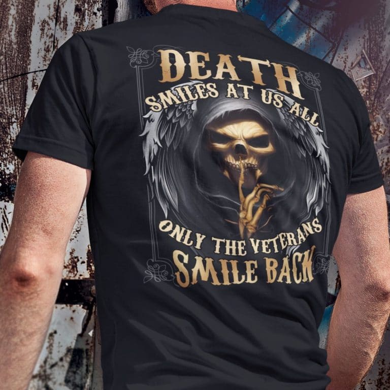 At CubeBik, besides custom apparel, we also offer tees, hoodies, sweaters, raglans, tanks, wall arts, canvases, posters, mugs, blankets, engraved jewelry, personalized necklaces, printed face masks, throw pillows, tote bags, hats, accessories and more on our website, so do not miss our other Death Smiles at Us All Only the Veterans Smile Back, Death Smiles at Us All Only the Veterans Smile Back T-Shirt, Veteran Skull Shirt, Veteran Skull Shirts, Veterans T Shirts for Men, Veterans Shirts for Men, Veteran Shirt for Men, Mens Veterans Shirts related merchandise. Moreover, all the products are made-to-order and one of a kind custom designs you can’t get elsewhere in normal stores. Let’s discover CubeBik.com now and find your favorite personalized items. We can’t wait to surprise and build beautiful memories with you and your loved ones.