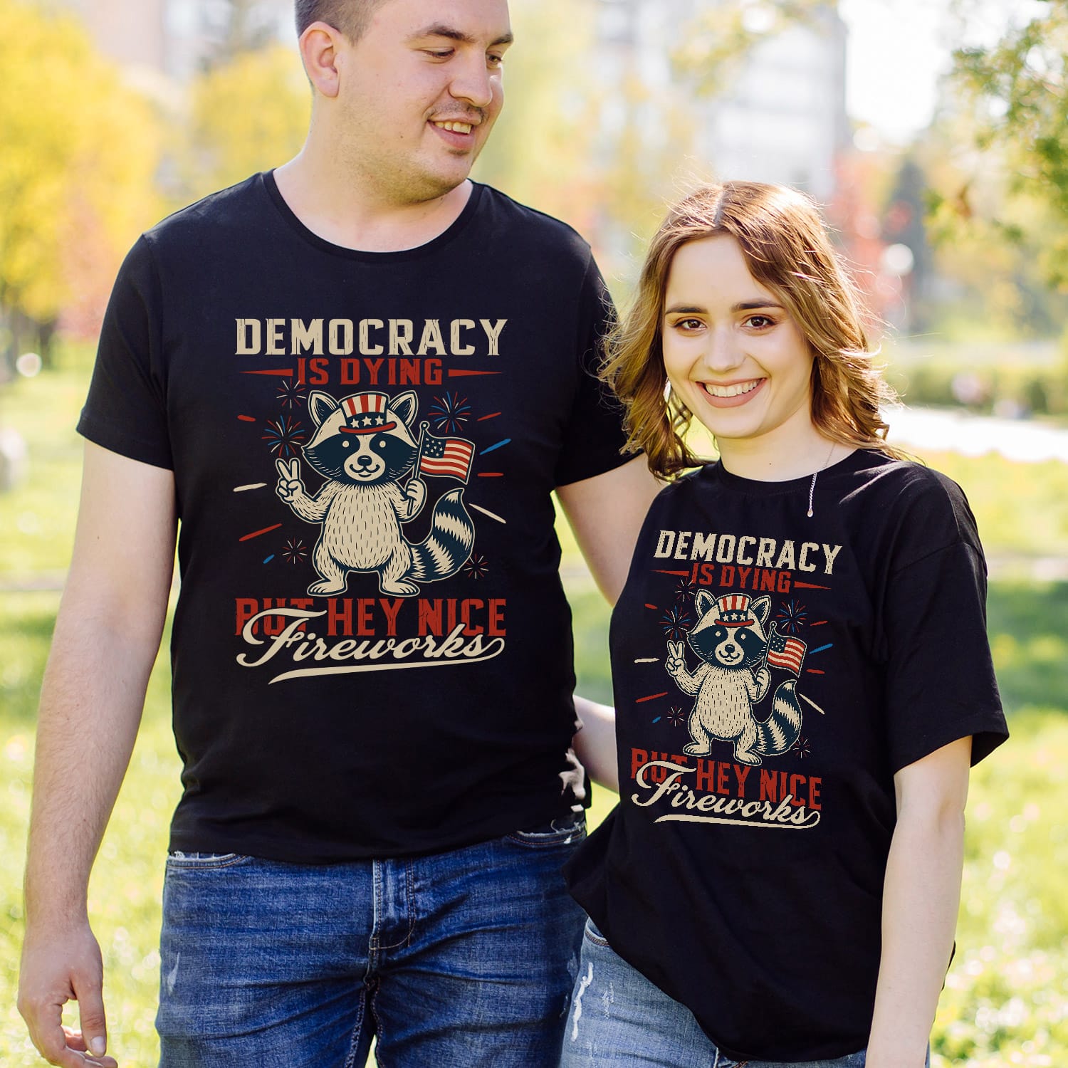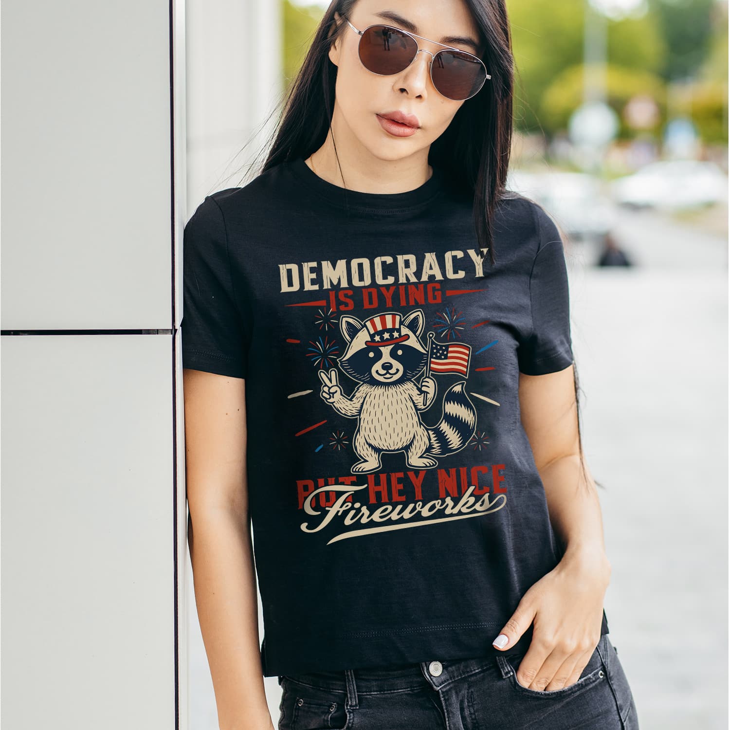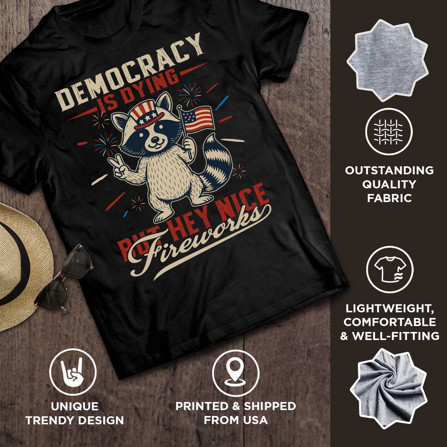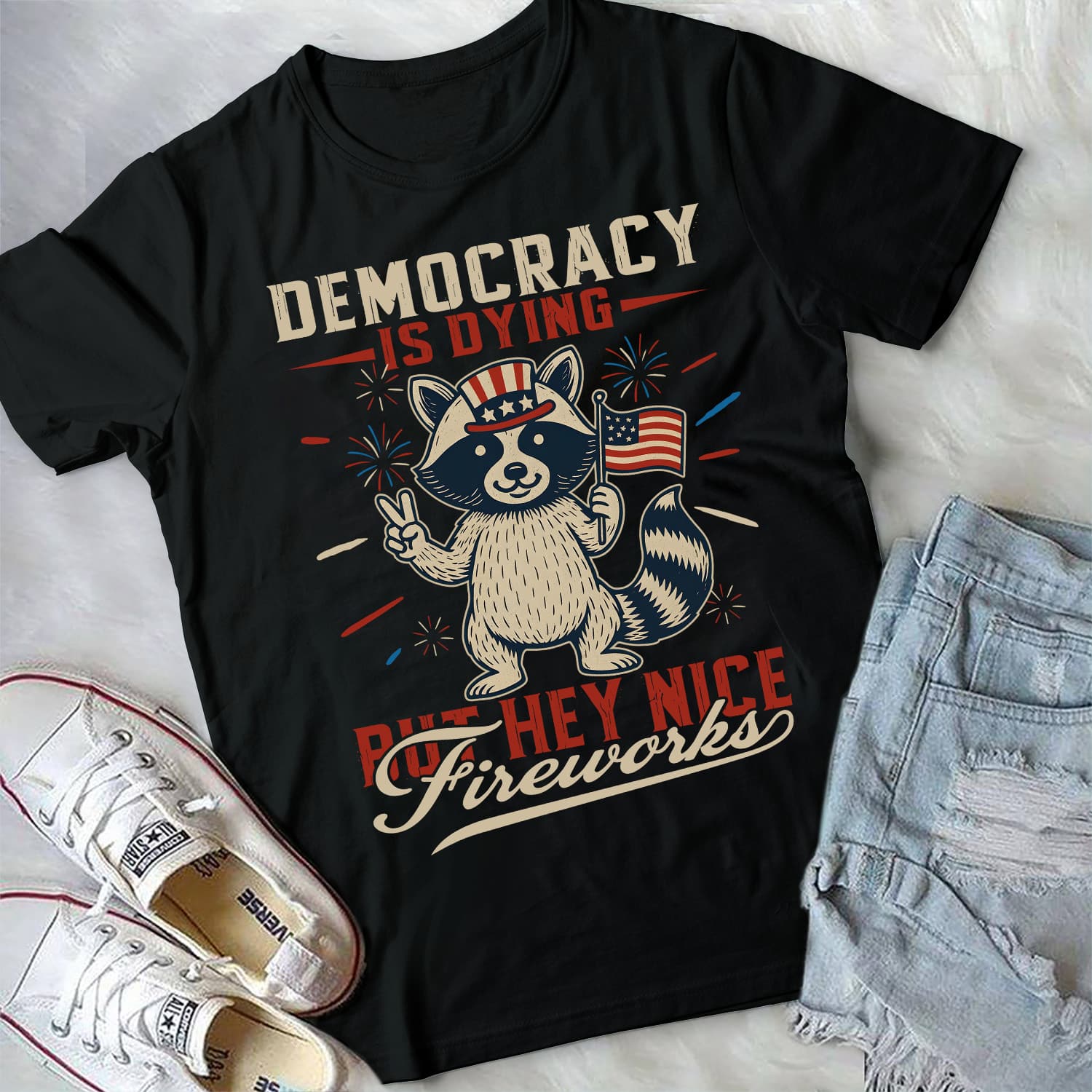 Democracy Is Dying But Hey Nice Fireworks Funny Raccoon 4th Of July T-Shirt – V-Neck Shirt