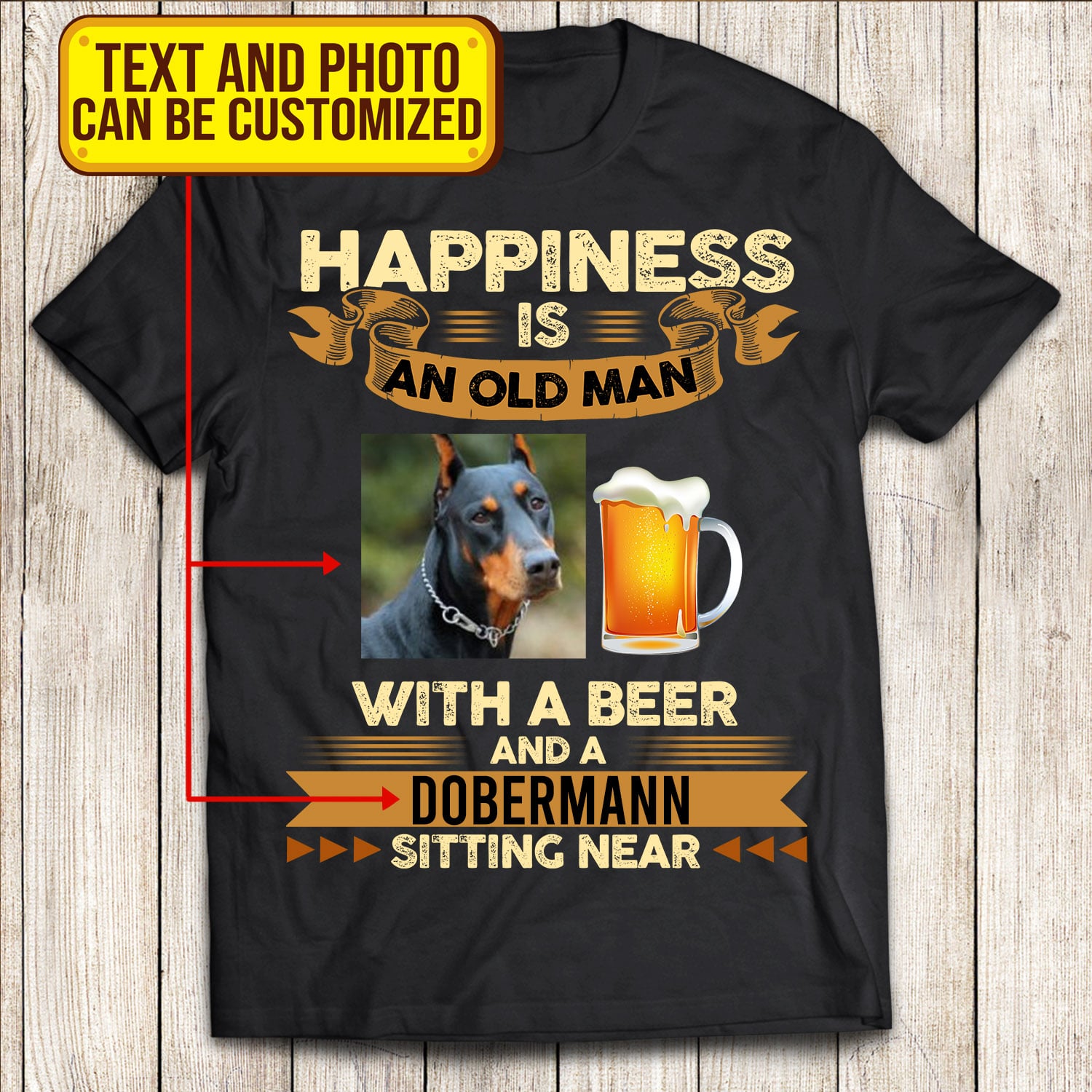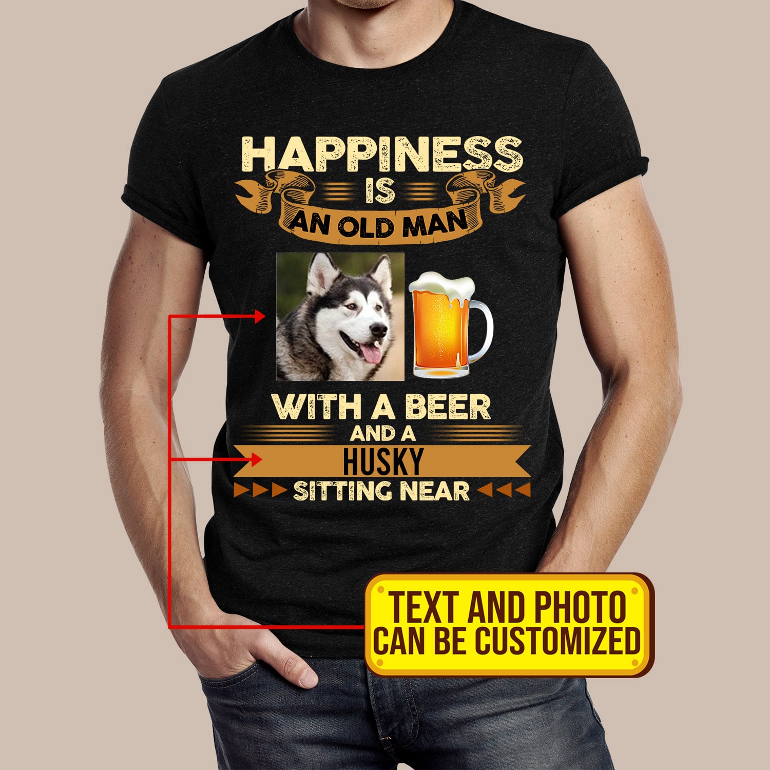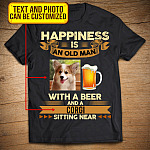 Personalized Photo Happiness Is An Old Man With A Beer And A Dog Sitting Near T-Shirt – Dog And Beer Lover Shirt