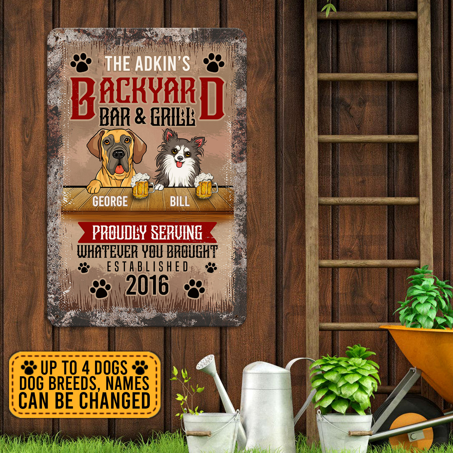 Let’s Shop Personalized Dog Breed Backyard Bar And Grill Proudly Serving Metal Sign – Funny Dog Lover Indoor Outdoor Decor!