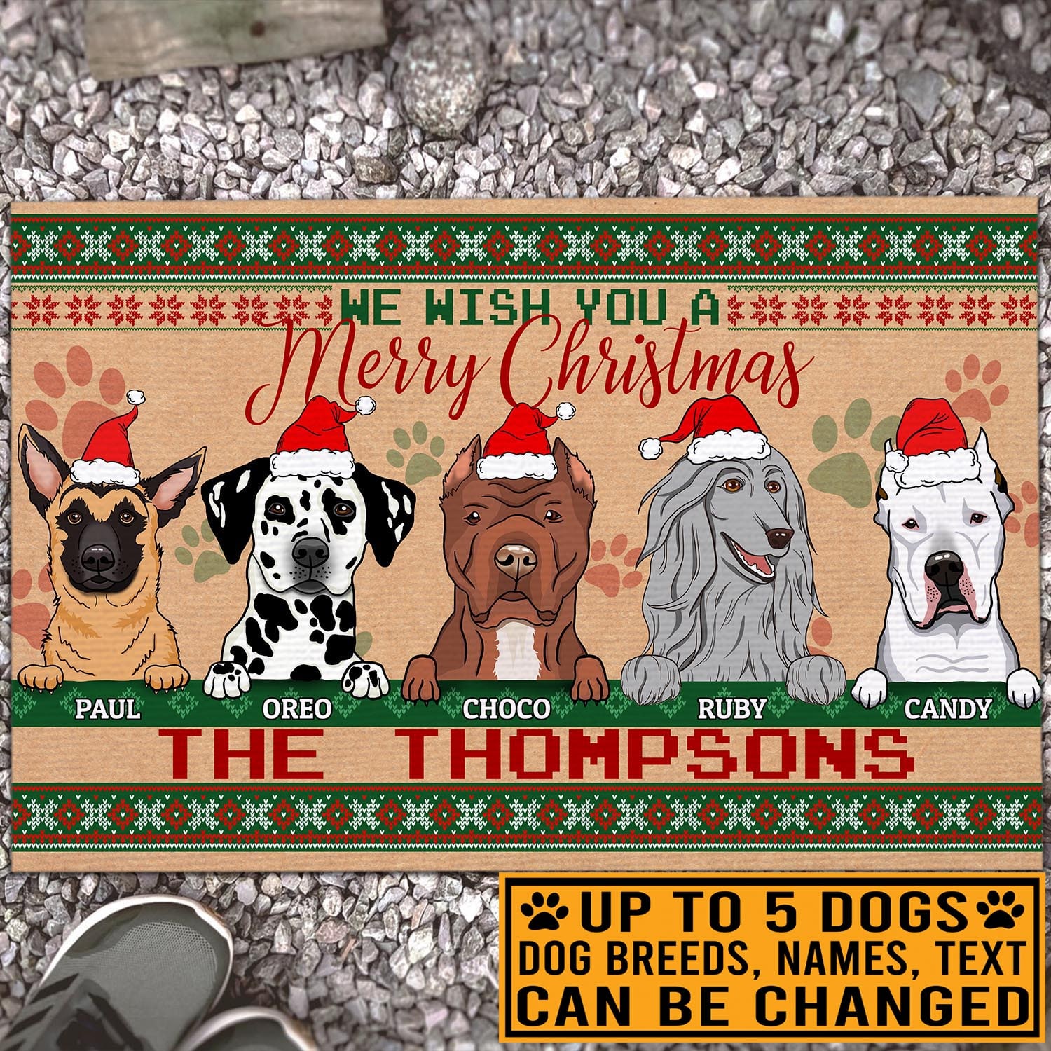 Let’s Shop We Wish You A Merry Christmas Personalized Dog Christmas Indoor Doormat – Custom Dog Breed Christmas Outdoor Doormat!