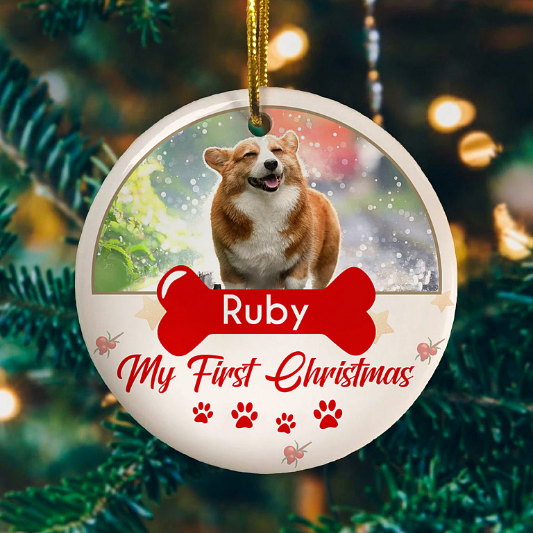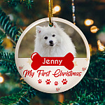 Let’s Shop Personalized Photo My First Christmas Dog Decorative Flat Circle Ornament Keepsake – Holiday Decoration Gift!
