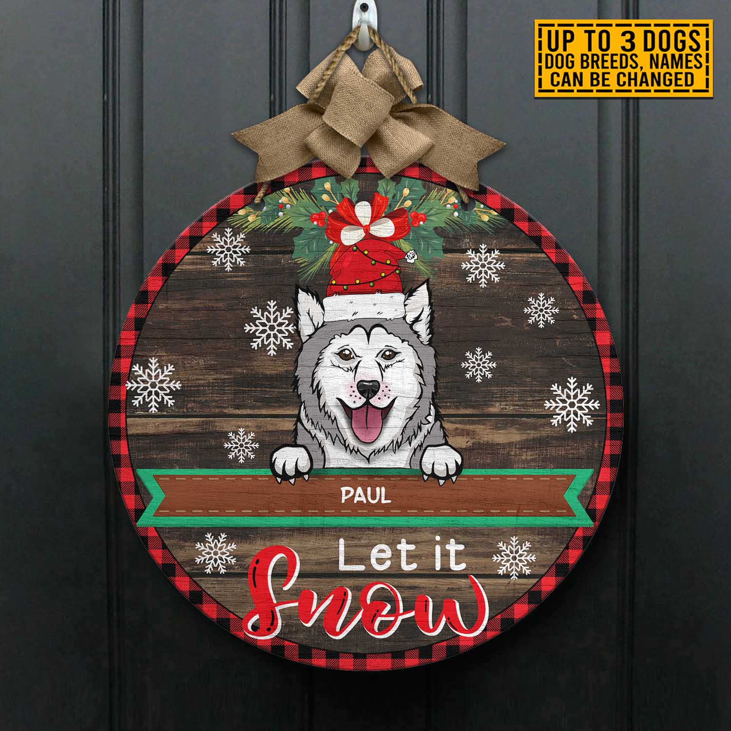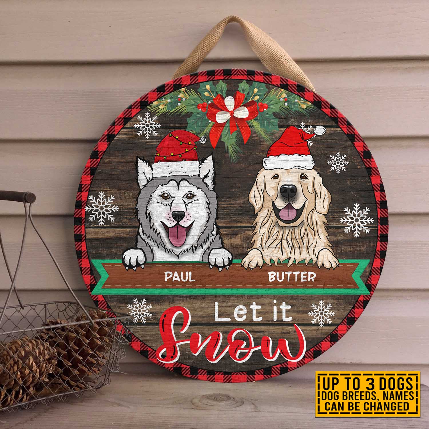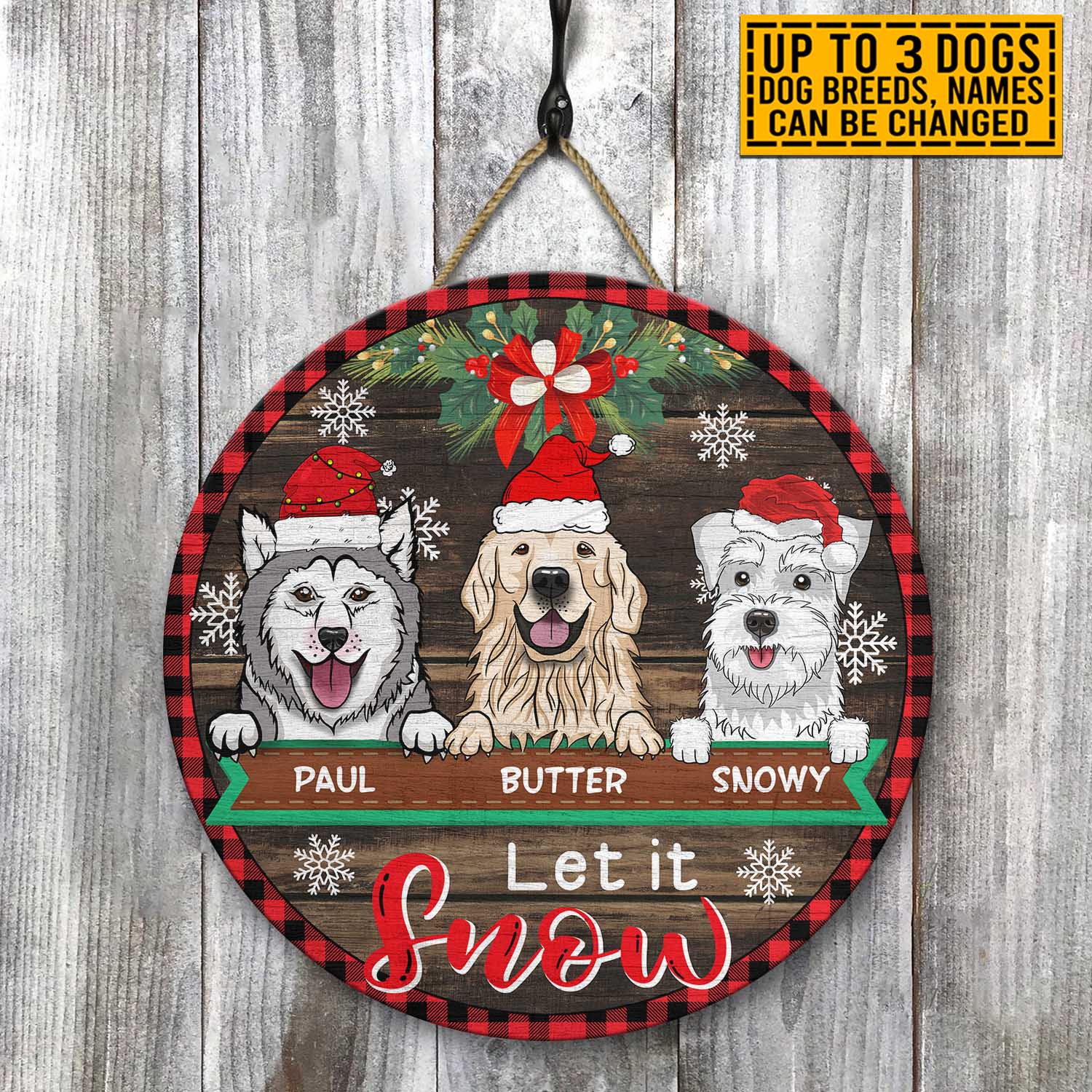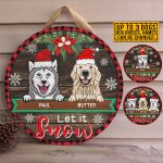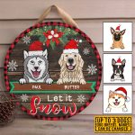Let’s Shop Personalized Dog Breeds Let It Snow Circle Wooden Door Sign – Custom Dog Christmas Front Porch Sign Outdoor Decor!