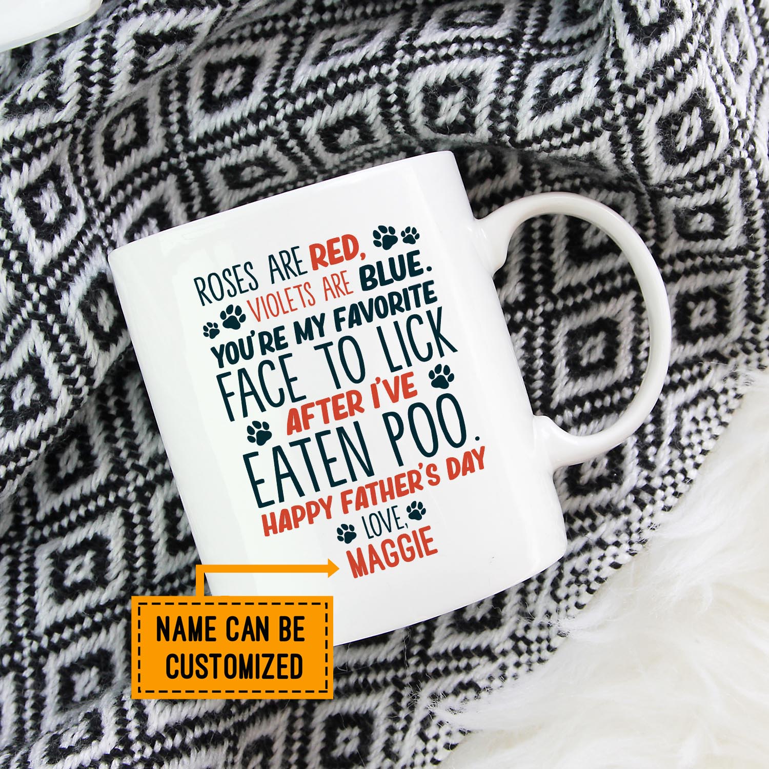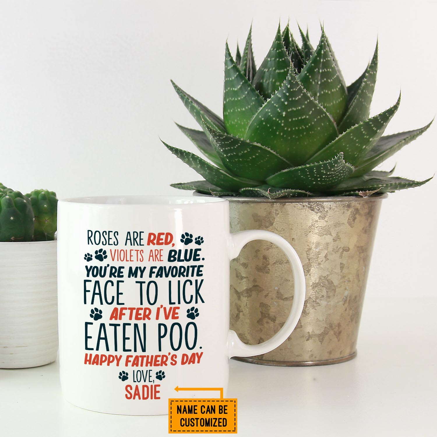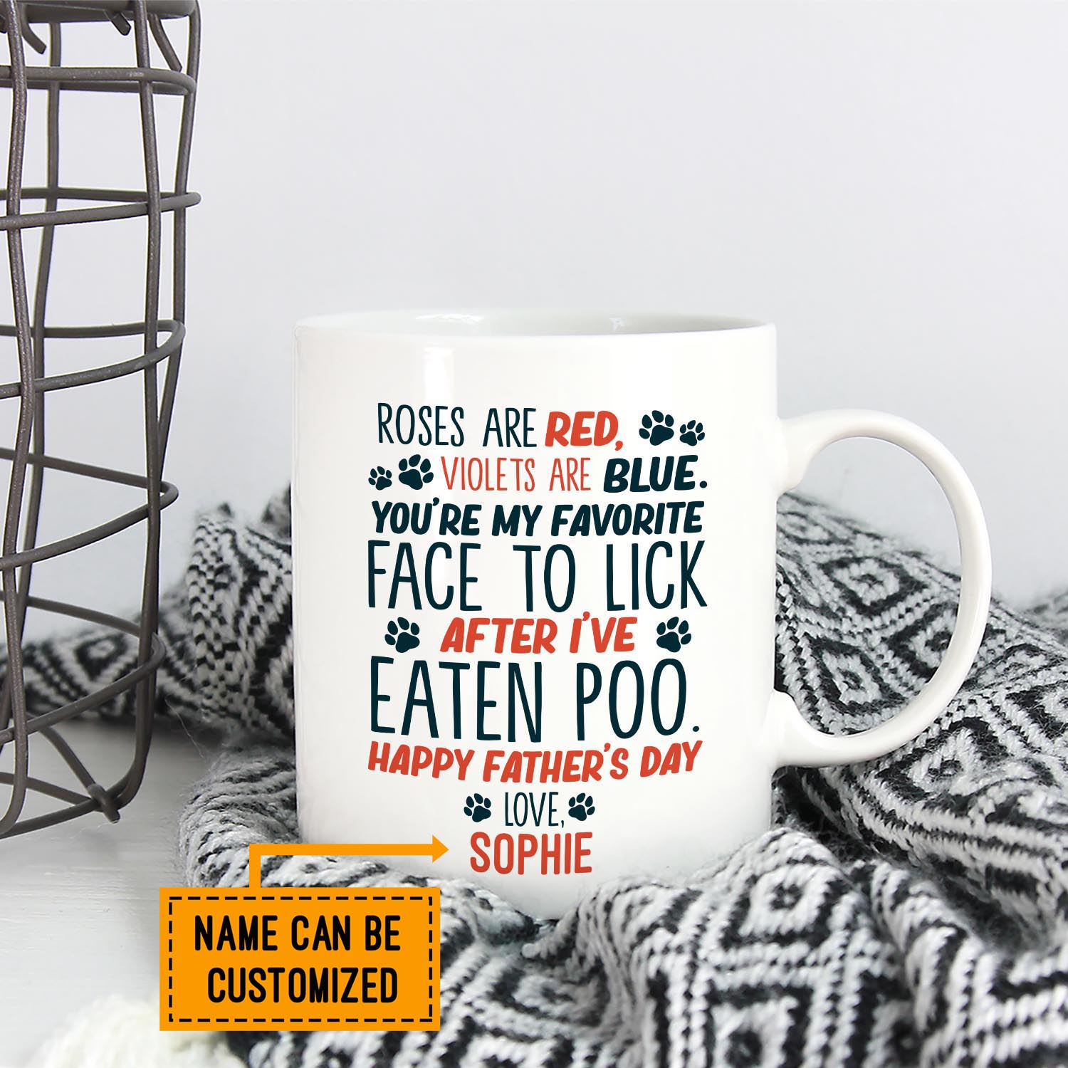Let’s Shop Personalized Roses Are Red Violets Are Blue You’re My Favorite Face To Lick Dog Dad Father’s Day Coffee Mug!
