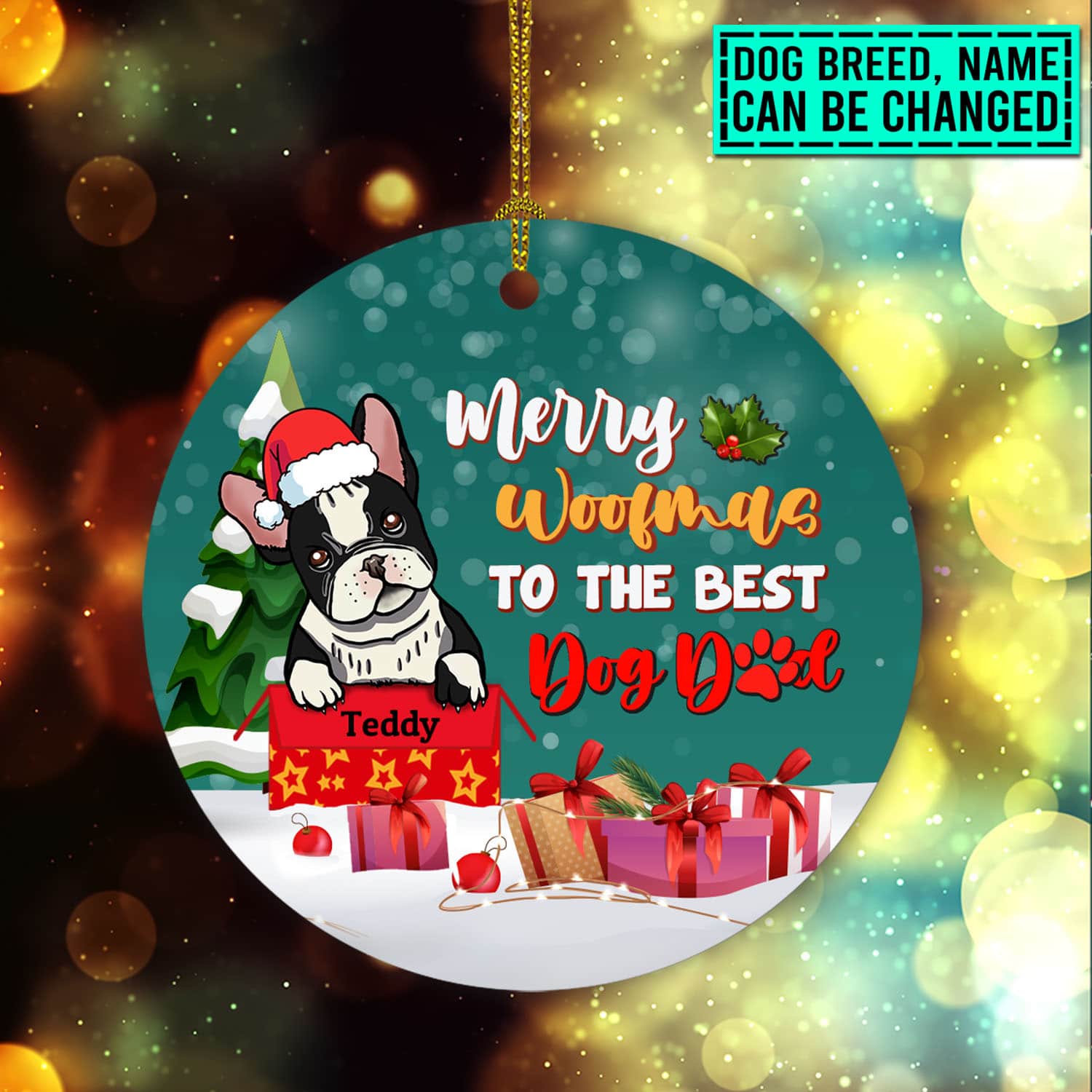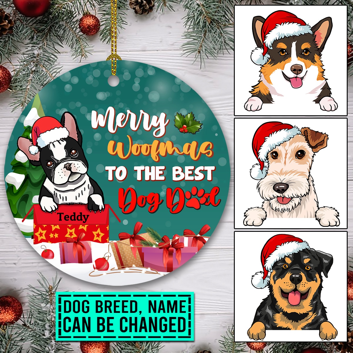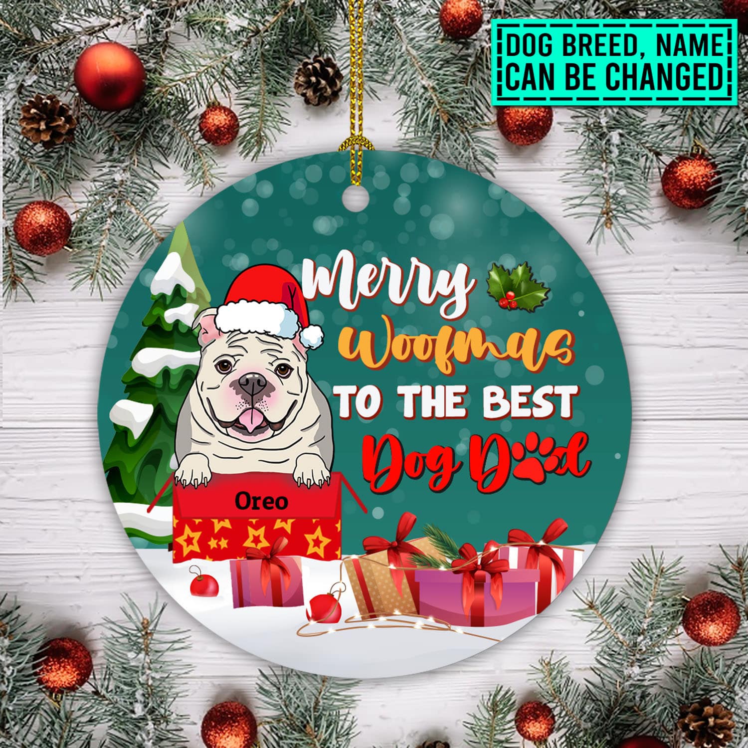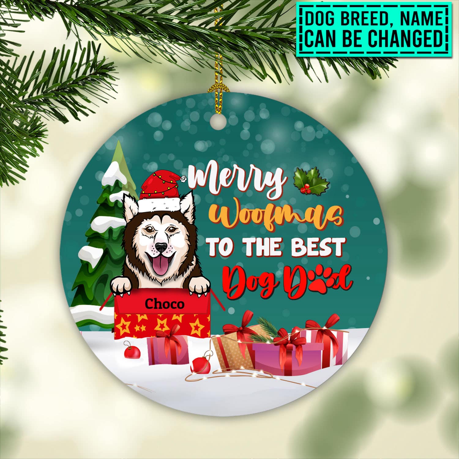 Let’s Shop Personalized Dog Breeds Merry Woofmas To The Best Dog Dad Circle Christmas Ornament Keepsake – Dog Dad Christmas Gifts!