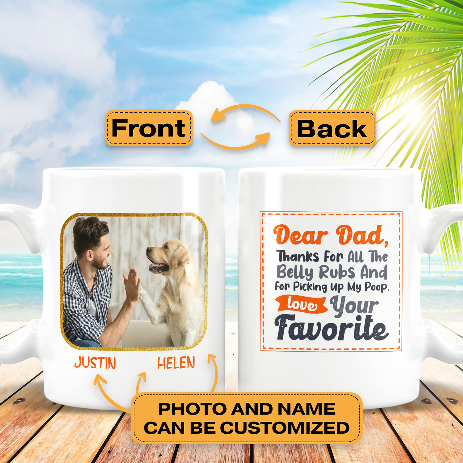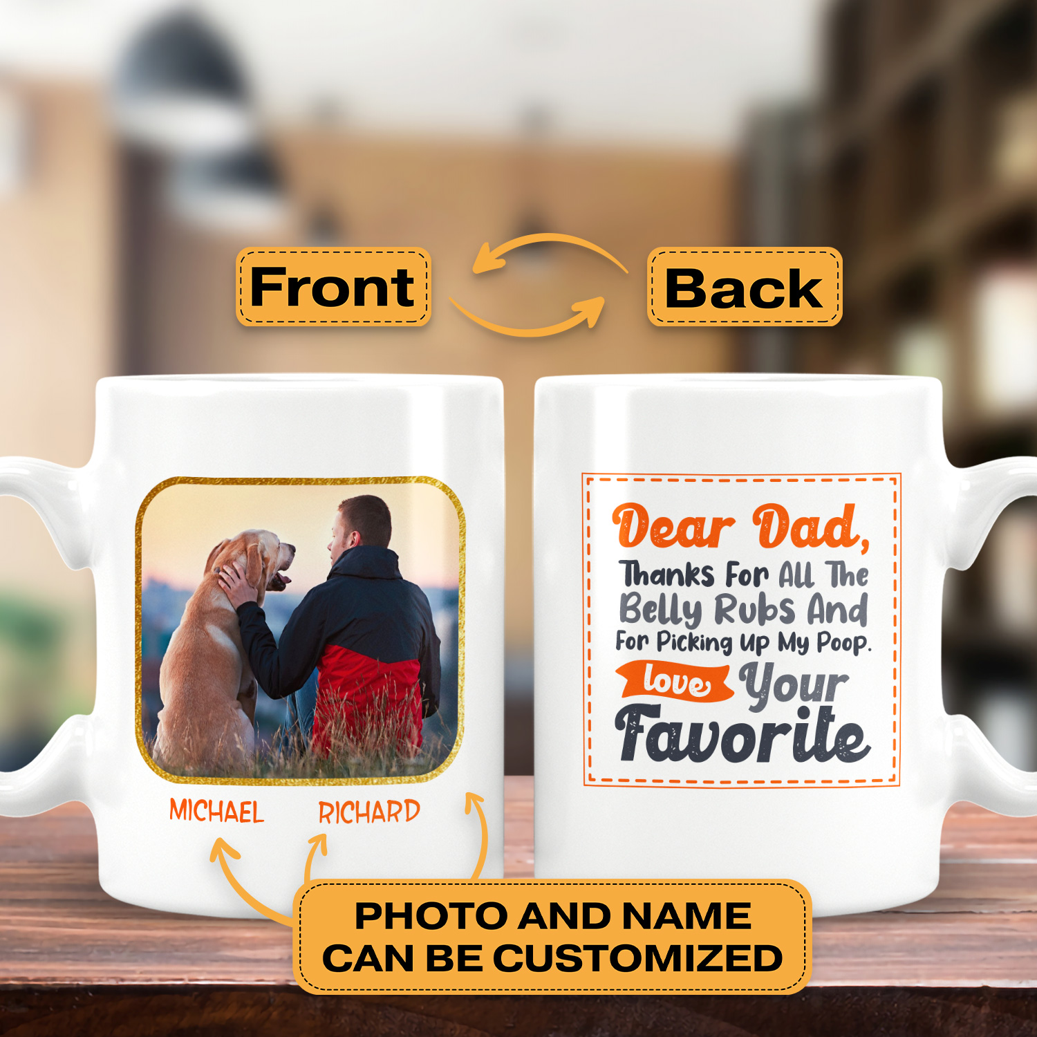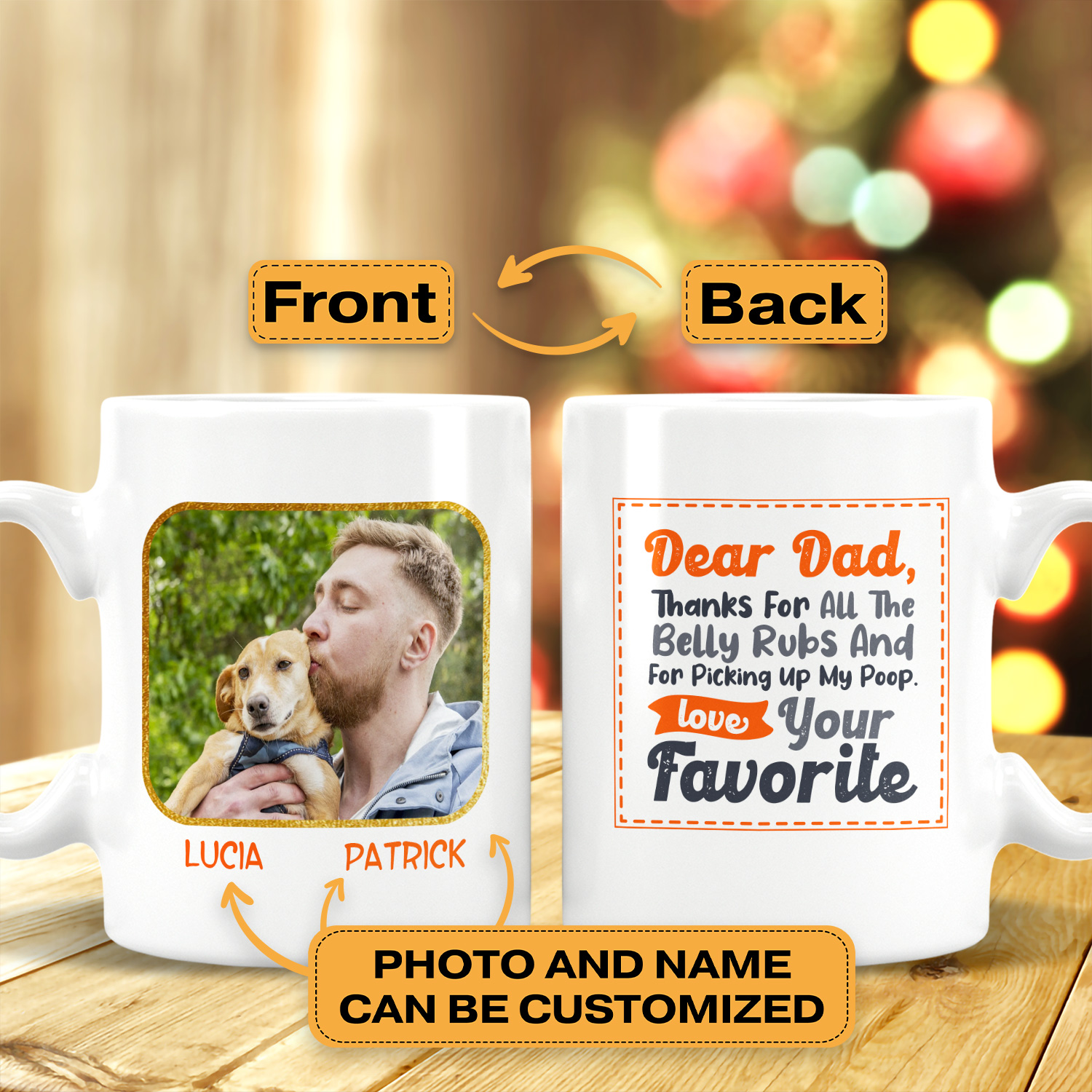 Let’s Shop Personalized Photo Dear Dad Thanks for All the Belly Rubs and For Picking up My Poop Ceramic Coffee Mug!