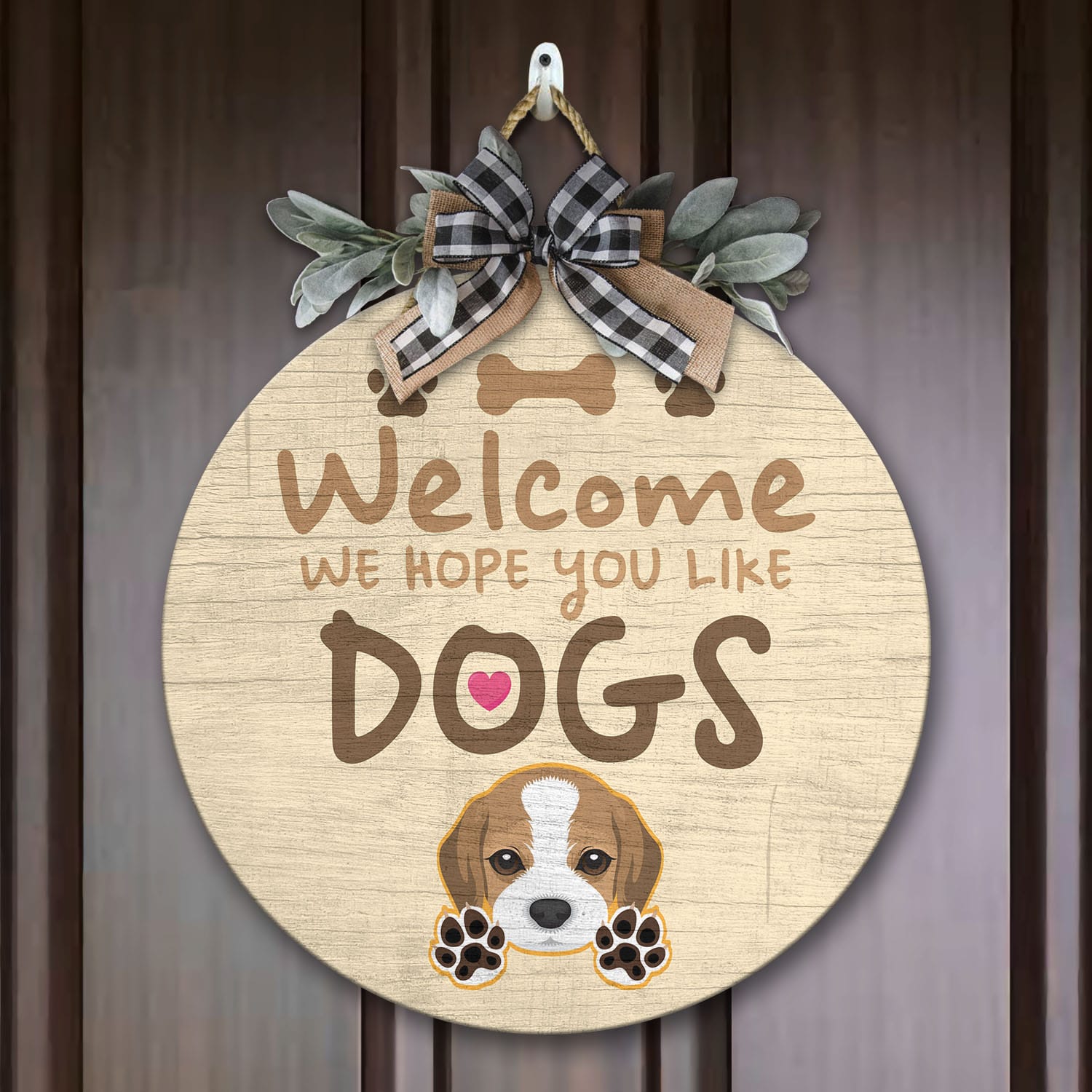 Let’s Shop Welcome We Hope You Like Dogs Wooden Door Sign – Front Porch Sign Indoor Outdoor Decor Farmhouse!