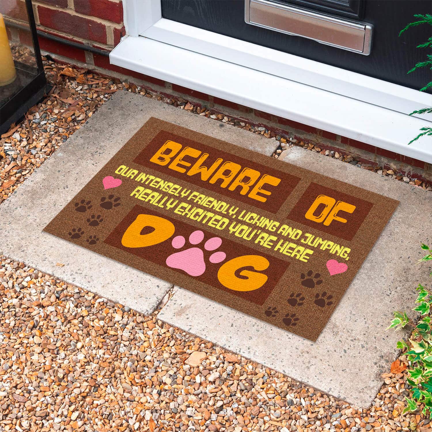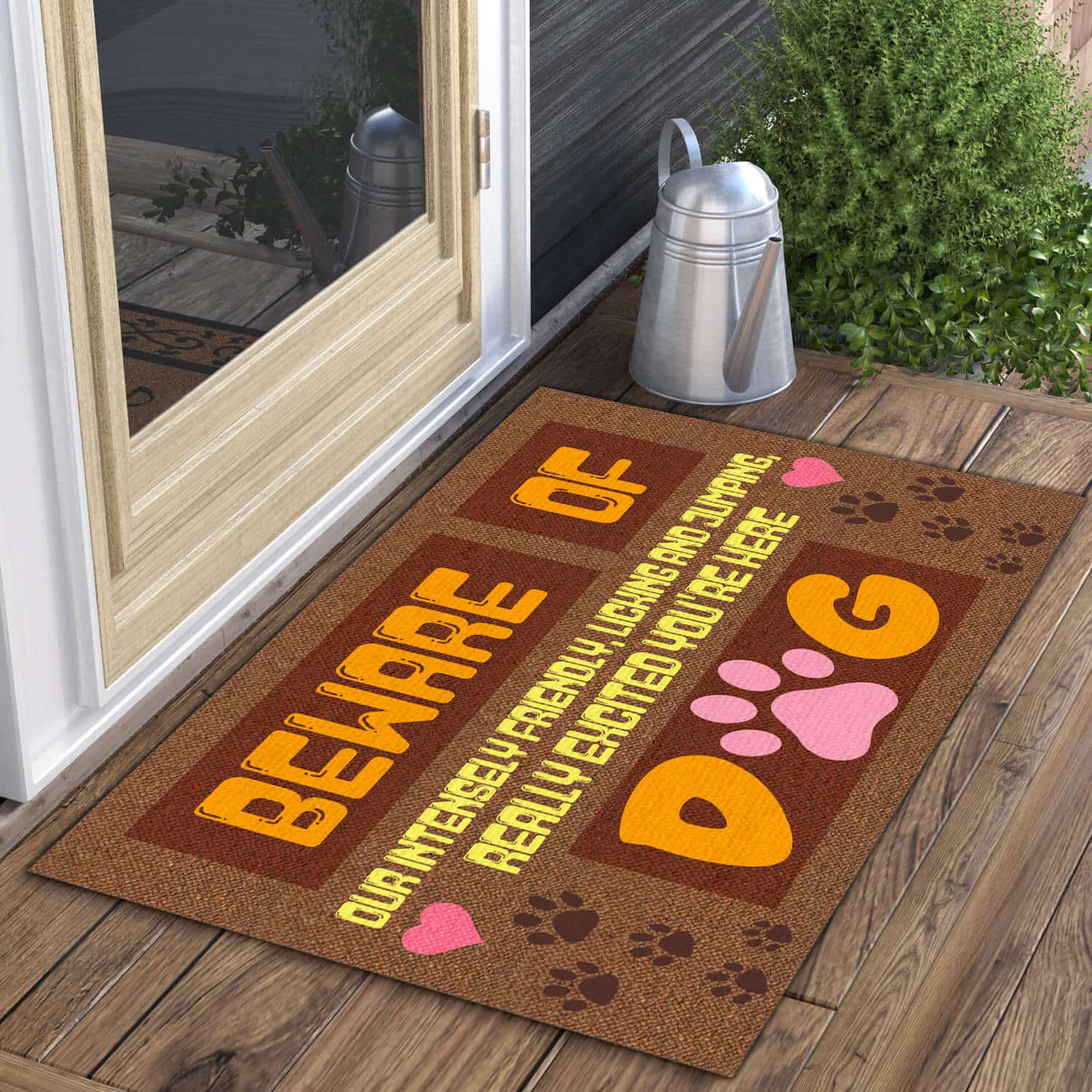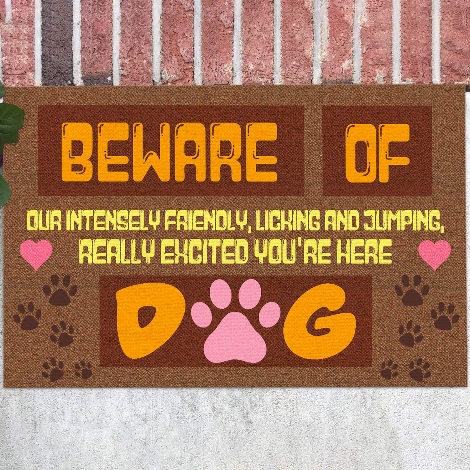 Let’s Shop Beware Of Dog Our Intensely Friendly Licking And Jumping Doormat – Dog Lover Indoor Outdoor Doormat!