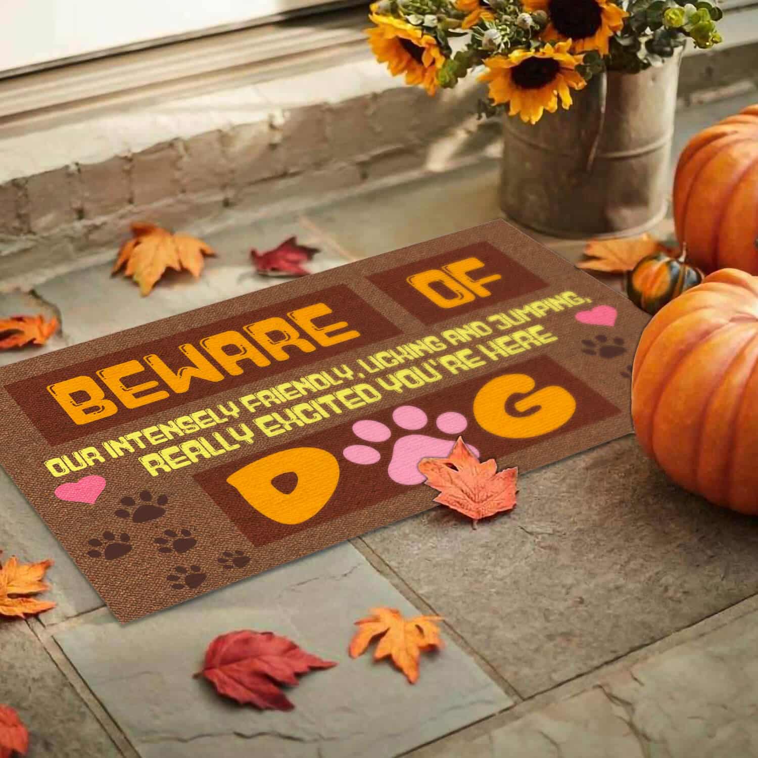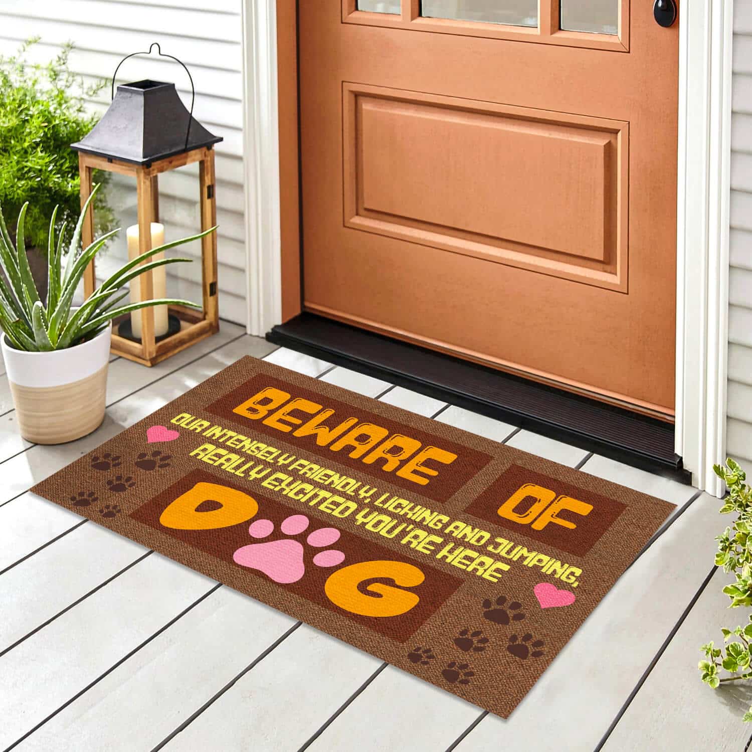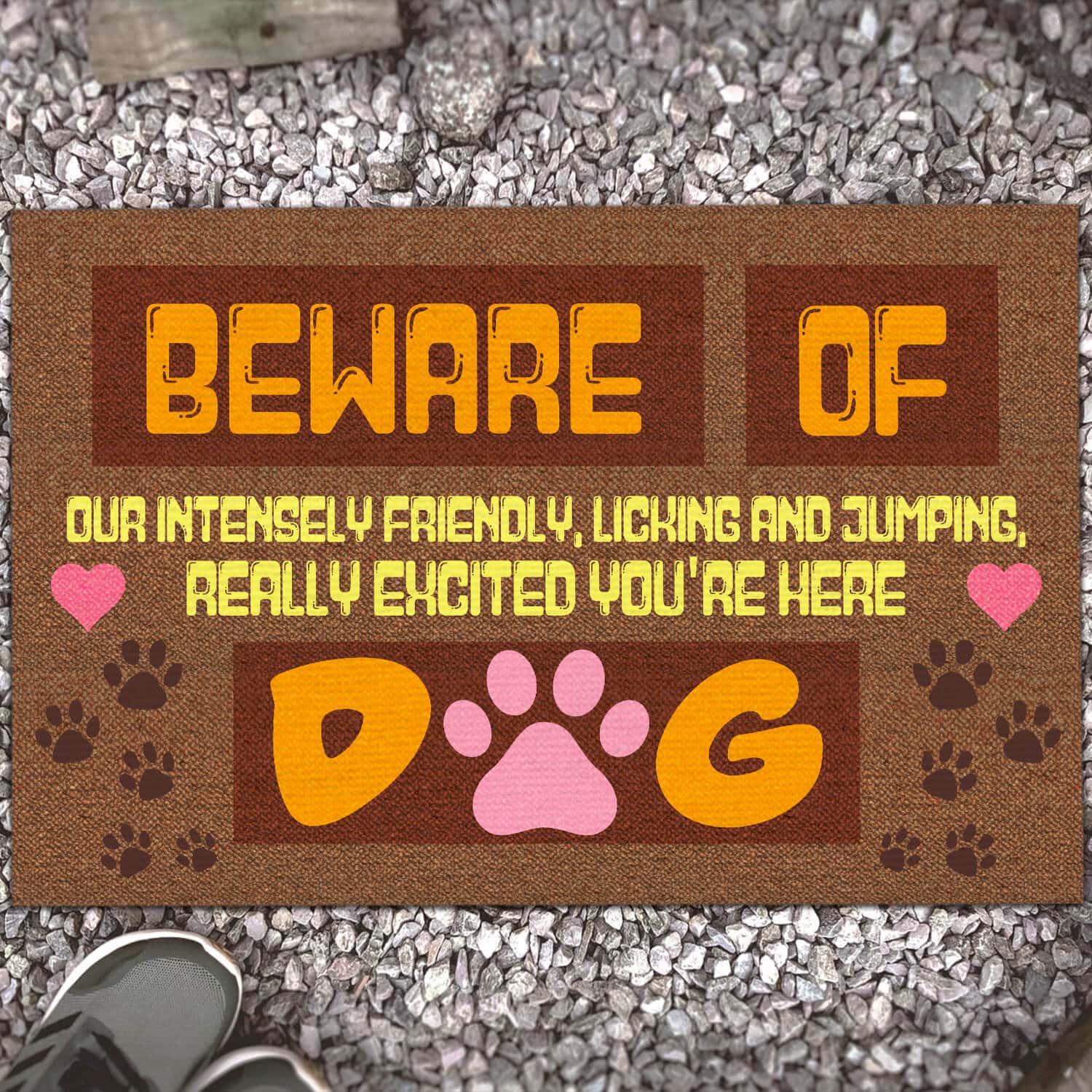 Let’s Shop Beware Of Dog Our Intensely Friendly Licking And Jumping Doormat – Dog Lover Indoor Outdoor Doormat!