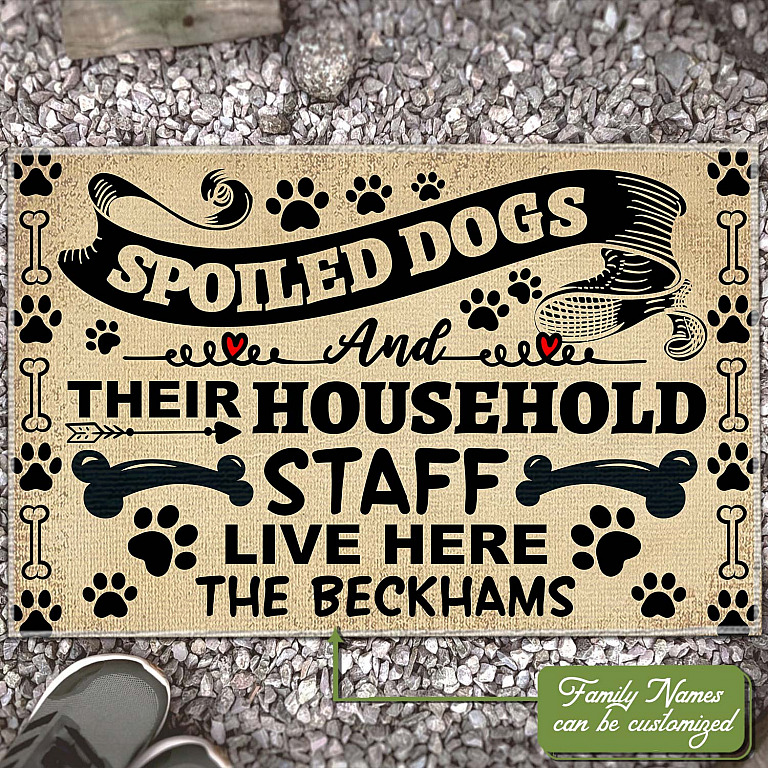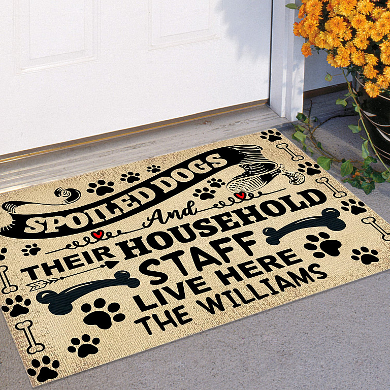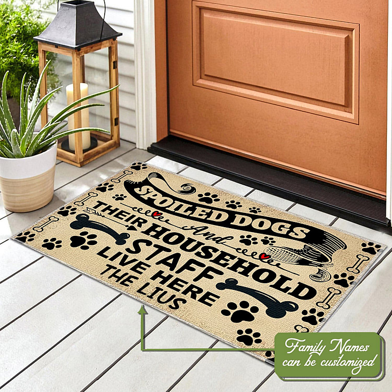 Let’s Shop Personalized Spoiled Dogs And Their Household Staff Live Here Indoor Outdoor Doormat!