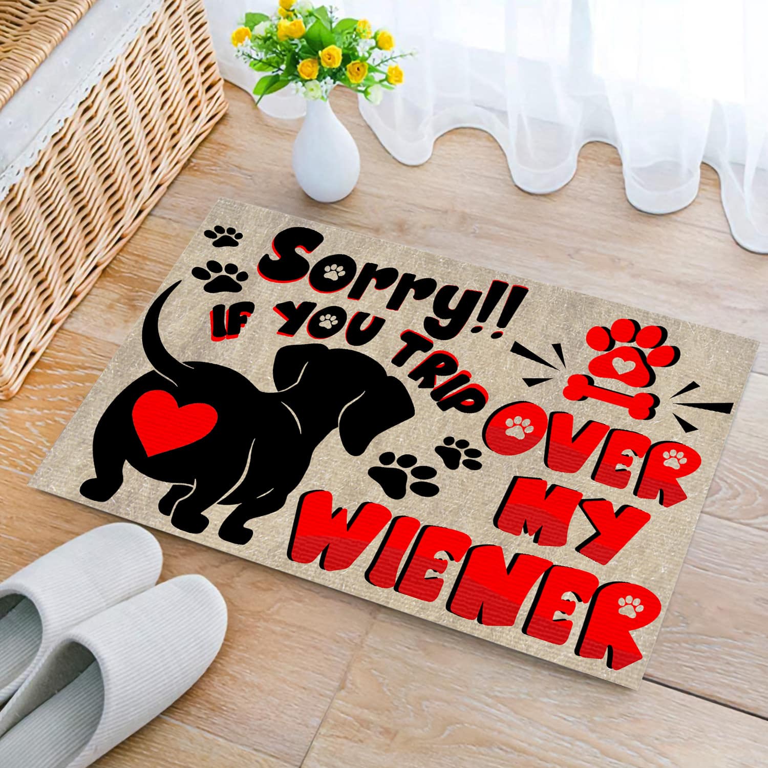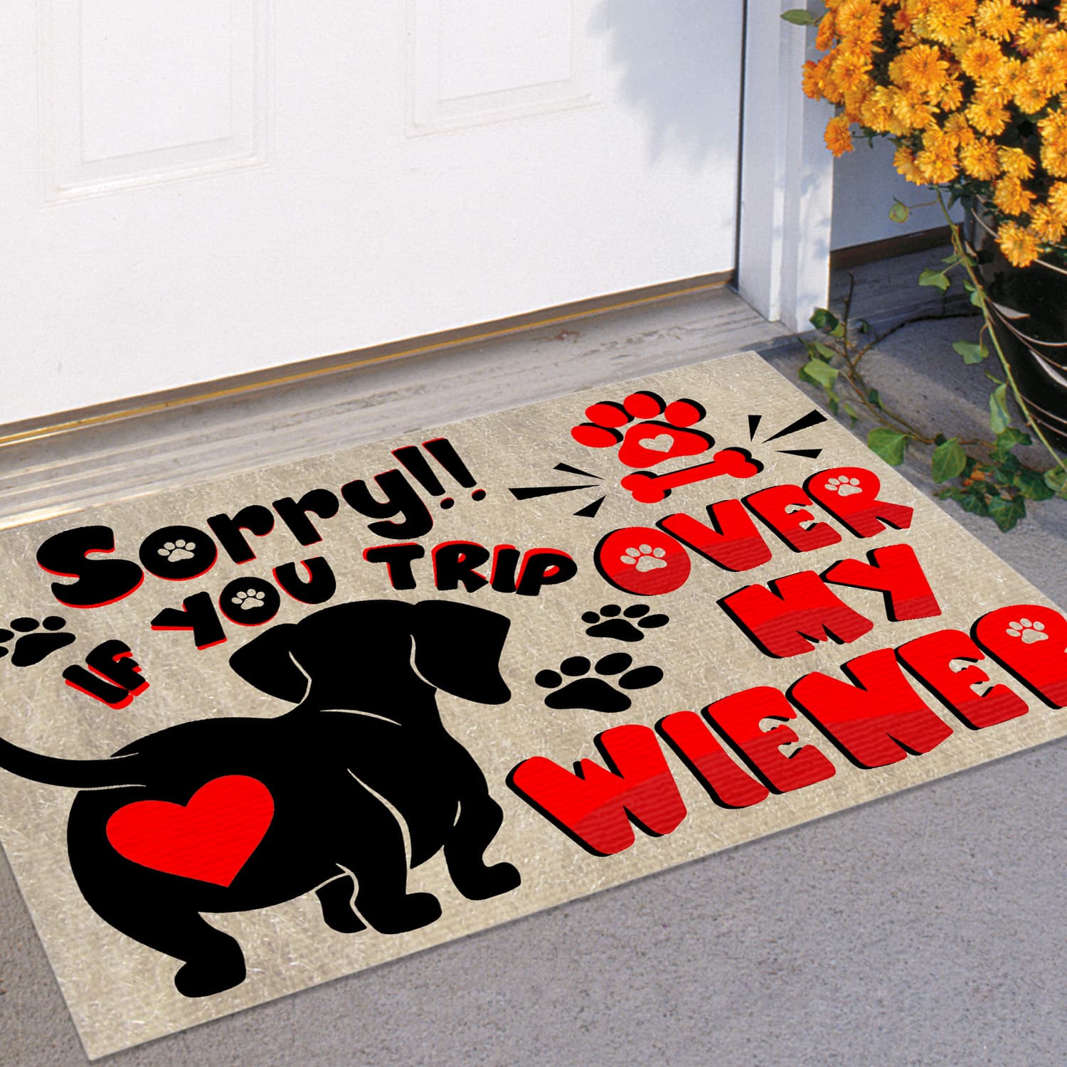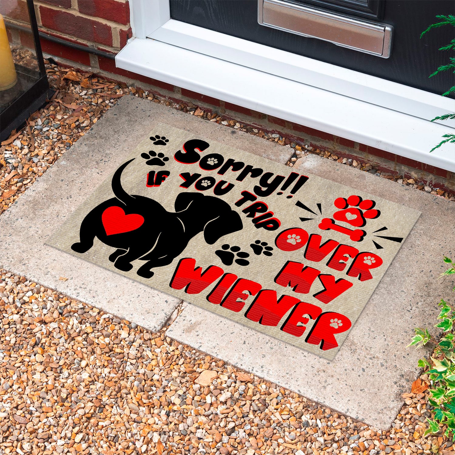Let’s Shop Sorry If You Trip Over My Wiener Indoor Outdoor Doormat – Dog Doormat – Dachshund Doormat!