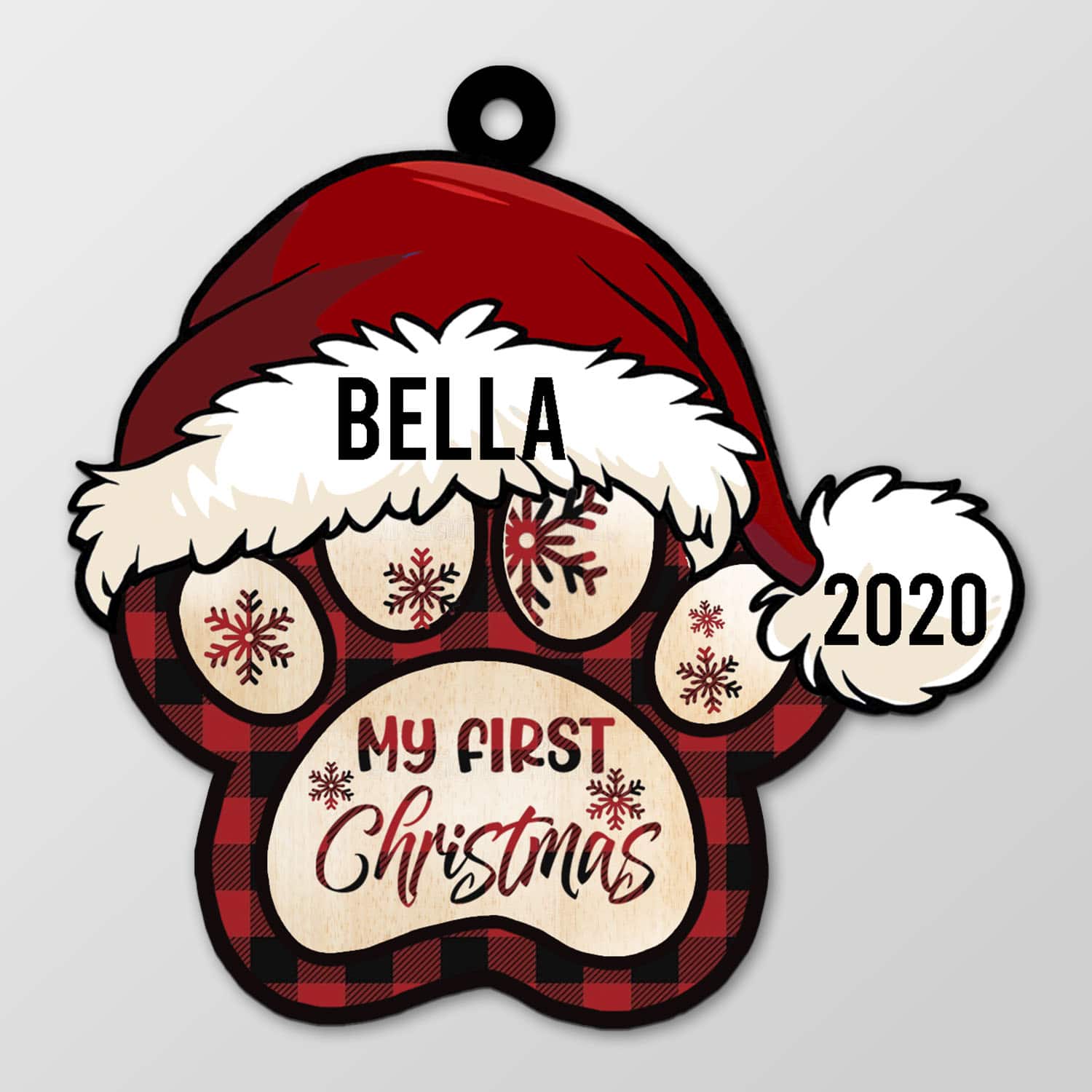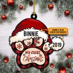 Let’s Shop Personalized My First Christmas Dog Paw Print Ornament – Personalized Dog Wooden Ornament!