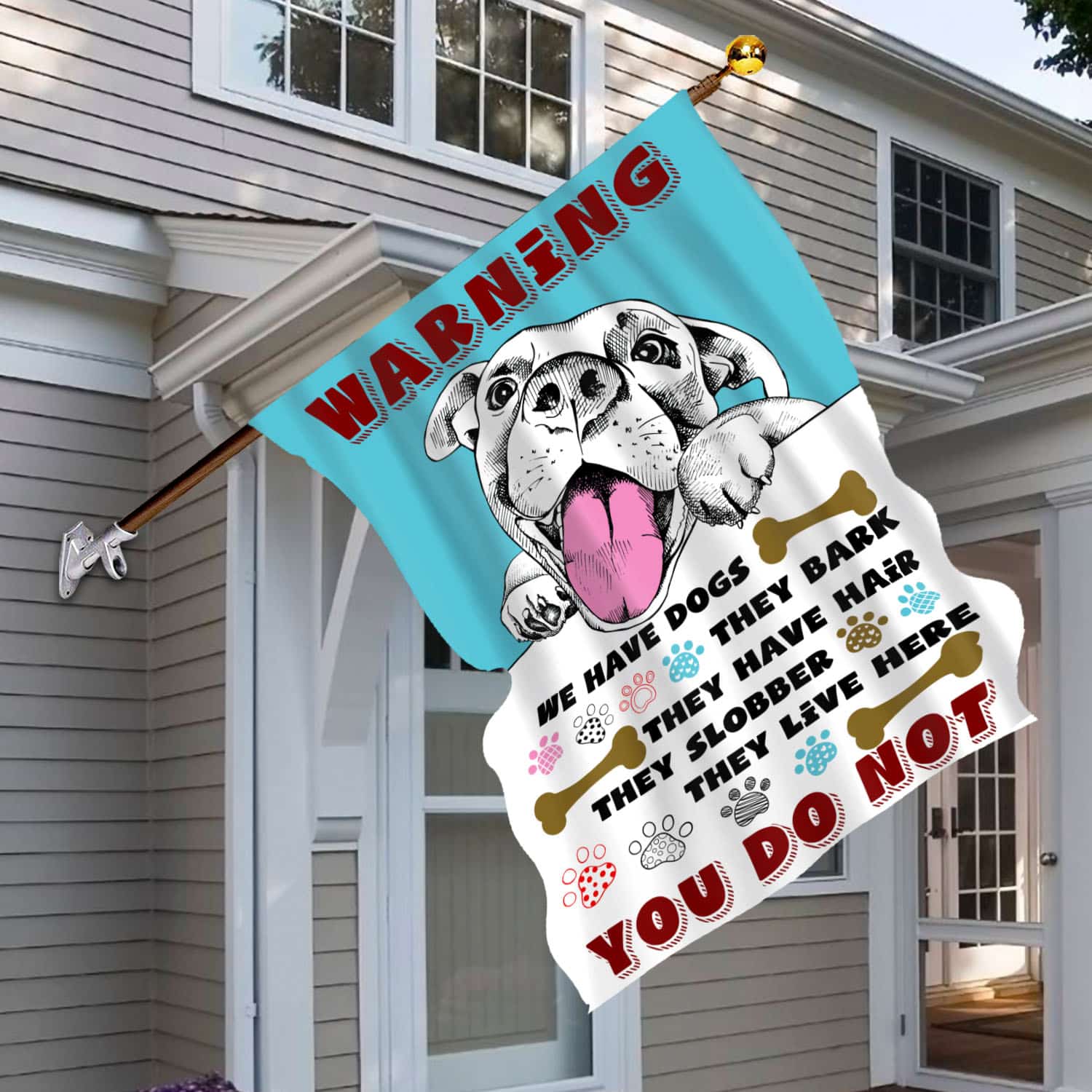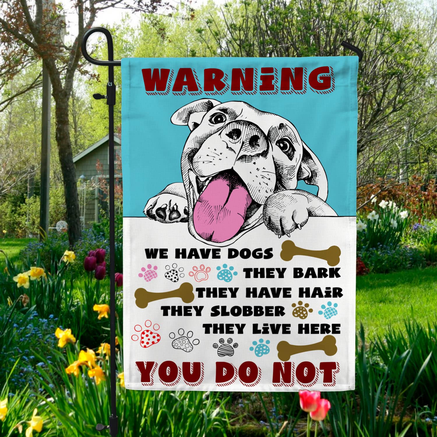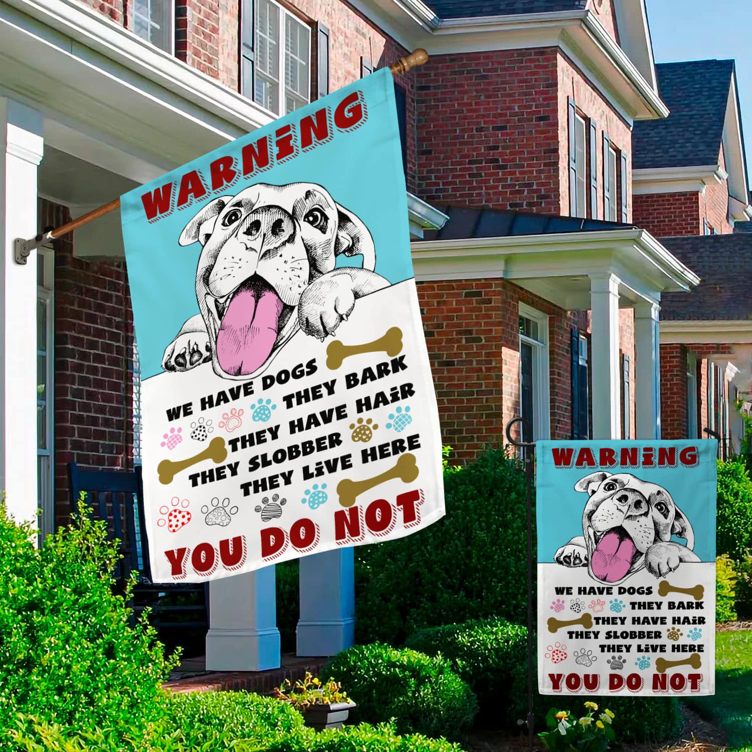 Let’s Shop Warning We Have Dogs They Bark They Live Here Outdoor Indoor Decorative Garden Flag – House Flag – Wall Flag!