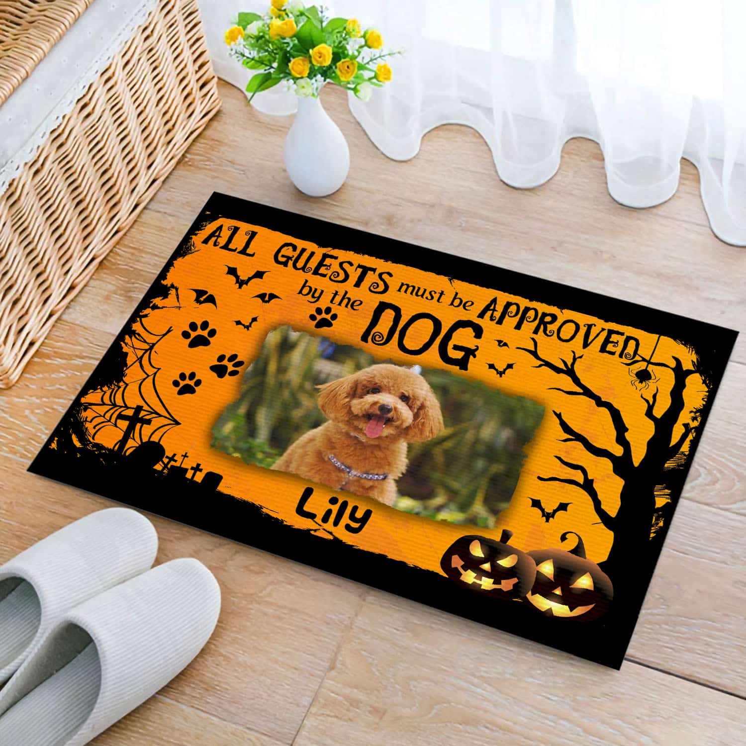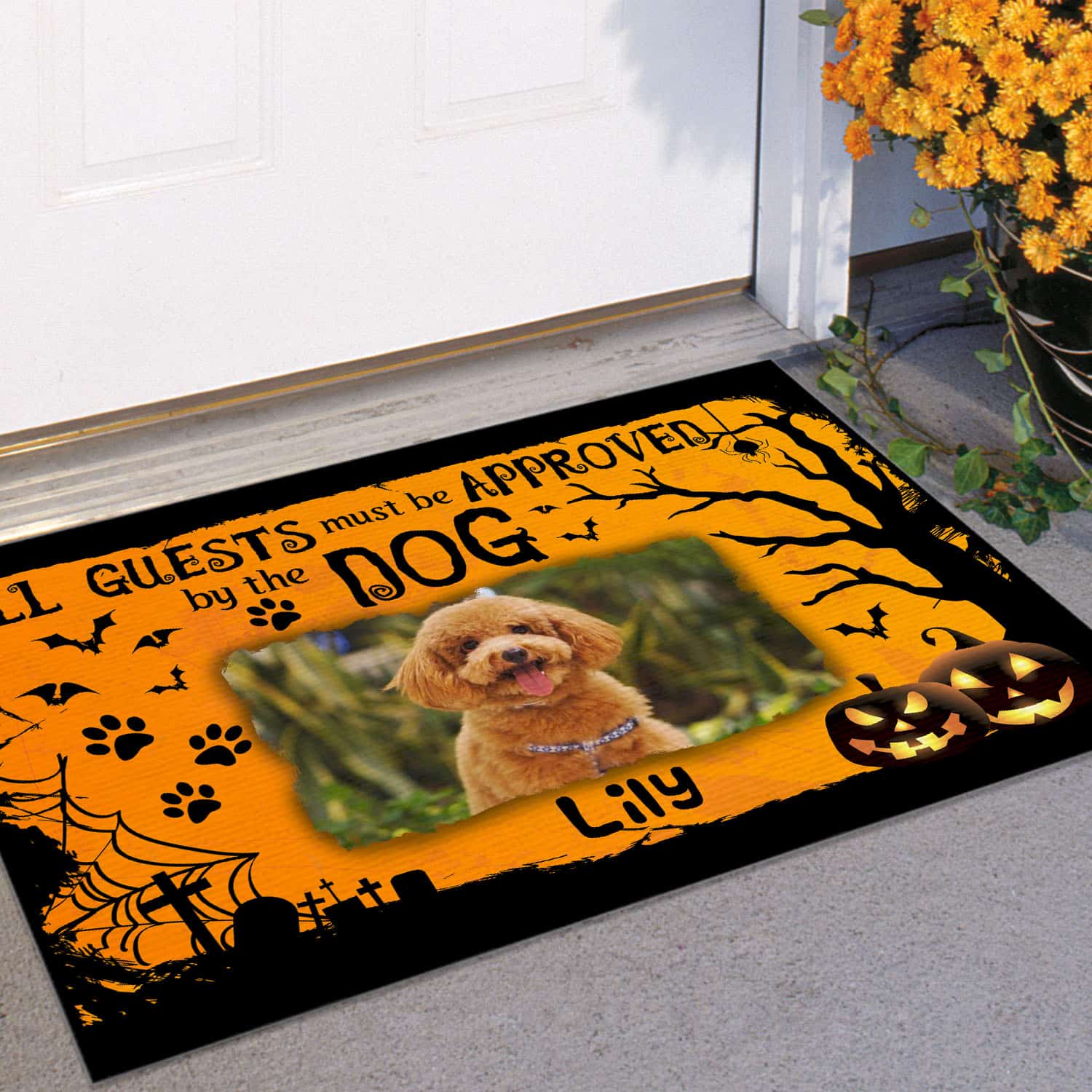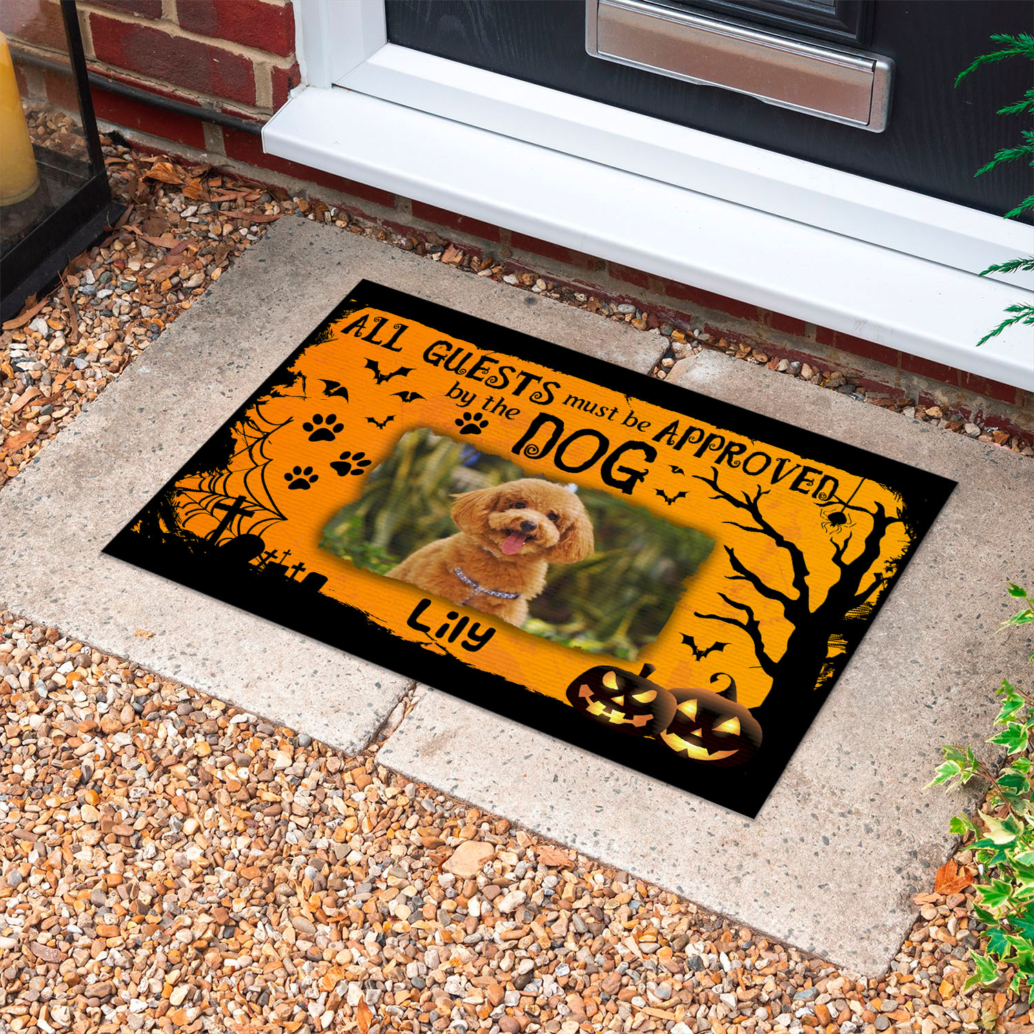 Let’s Shop Custom Photo All Guests Must Be Approved By The Dog Personalized Dog Halloween Indoor Outdoor Door Mat!