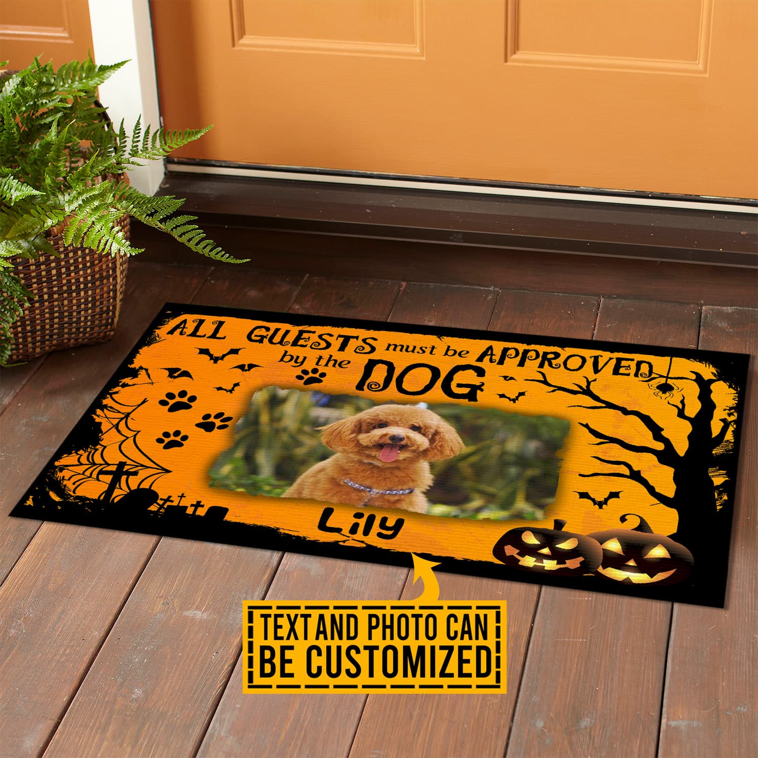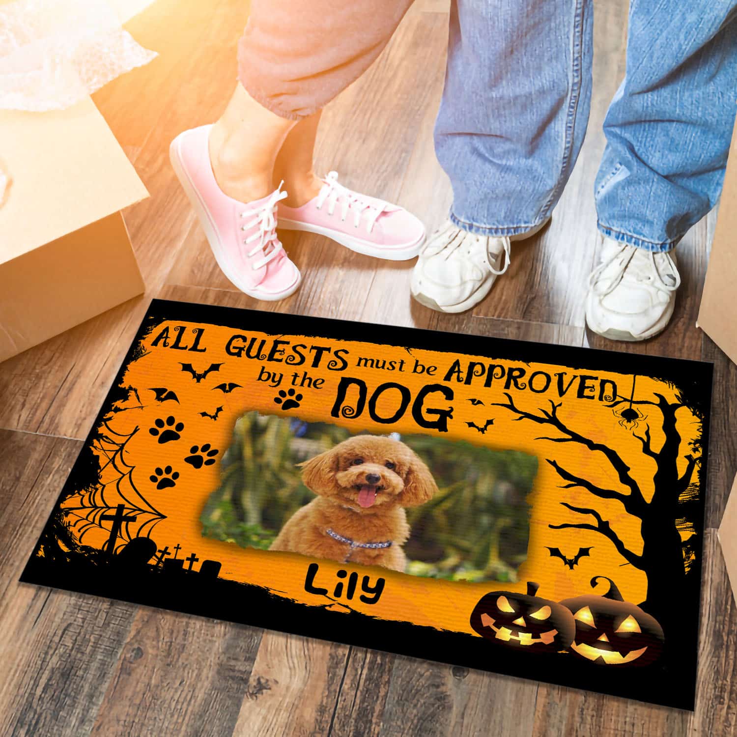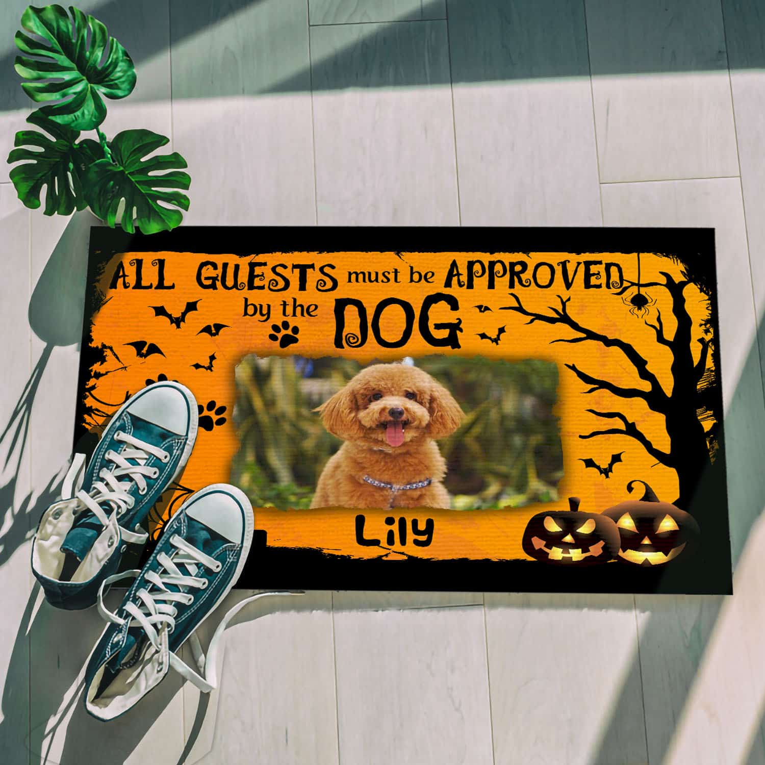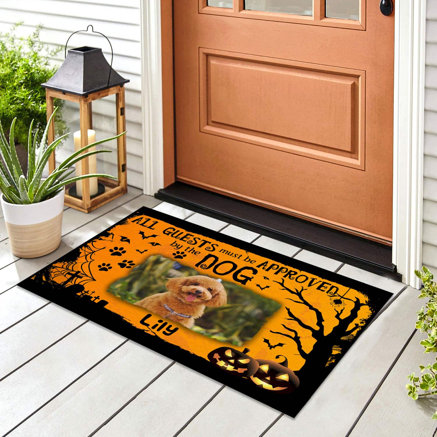 Let’s Shop Custom Photo All Guests Must Be Approved By The Dog Personalized Dog Halloween Indoor Outdoor Door Mat!