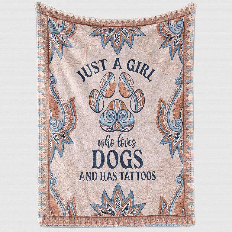 Let’s Shop Just A Girl Who Loves Dogs And Has Tattoos Fleece Blanket – Premium Sherpa Blanket – Woven Blanket!