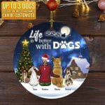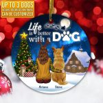Let’s Shop Life Is Better With Dogs Personalized Dog Christmas Circle Ornament Keepsake – Christmas Gifts For Dog Lovers!