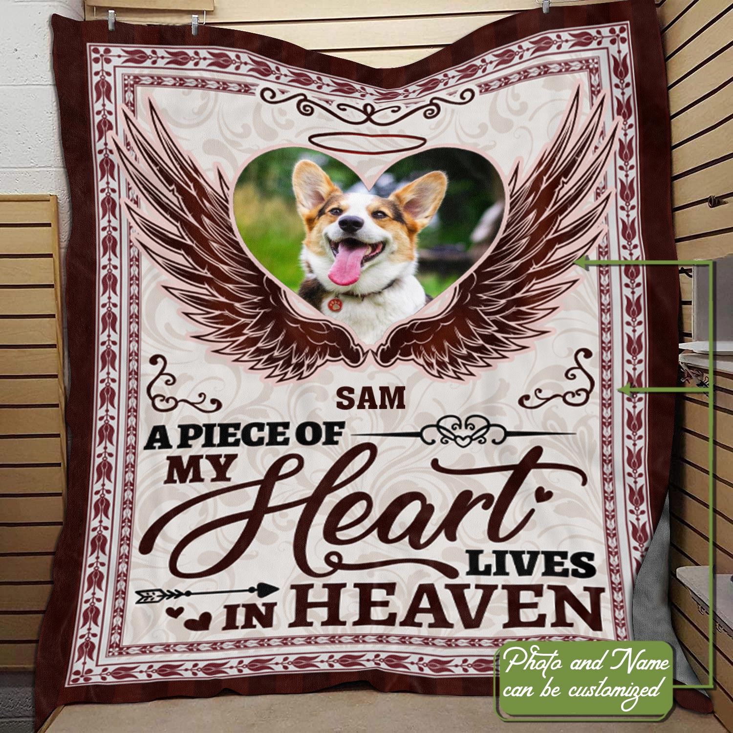 Let’s Shop Custom Photo A Piece Of My Heart Lives In Heaven Dog Memorial Fleece Blanket – Mink Sherpa Blanket – Woven Blanket!
