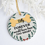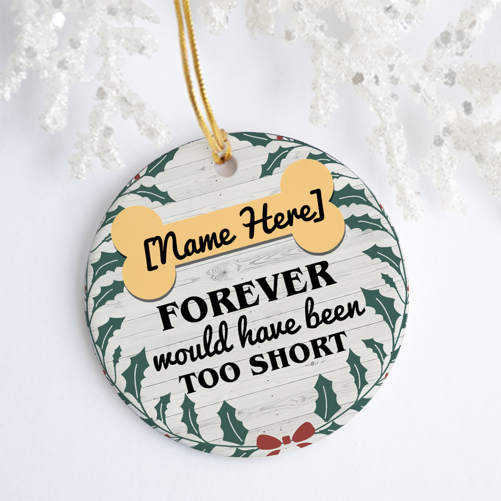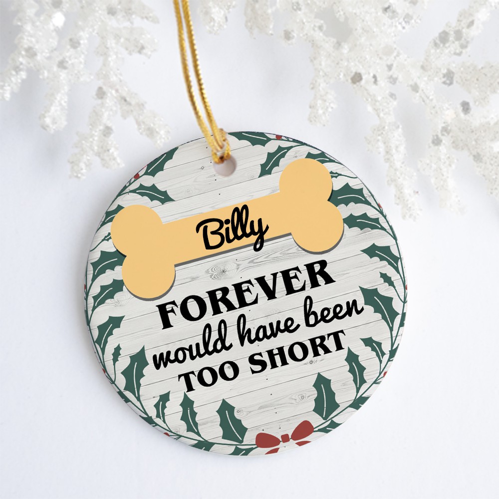 Shop Forever Would Have Been Too Short Dog Memorial Christmas Ornament Keepsake – Circle Porcelain Ceramic Ornament.