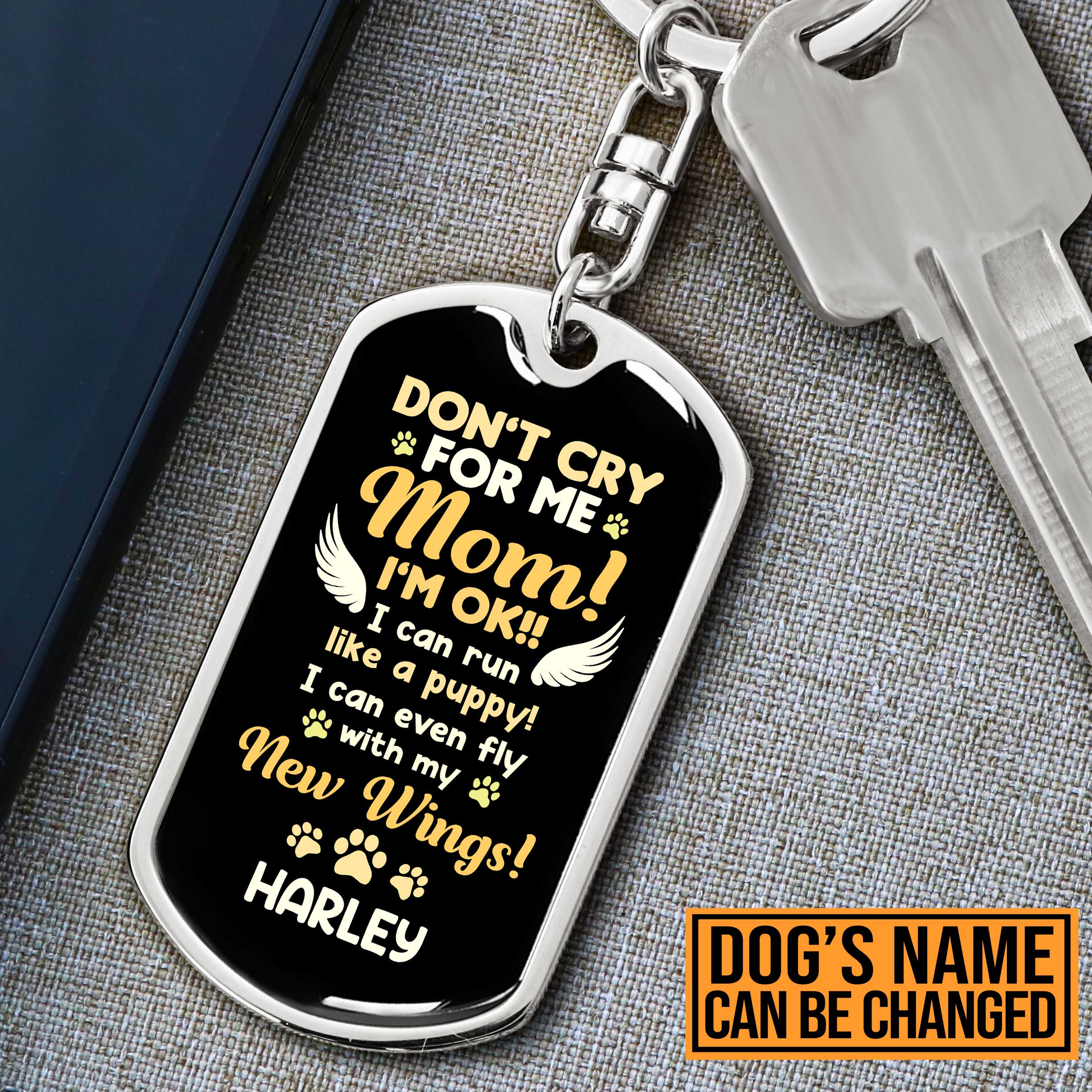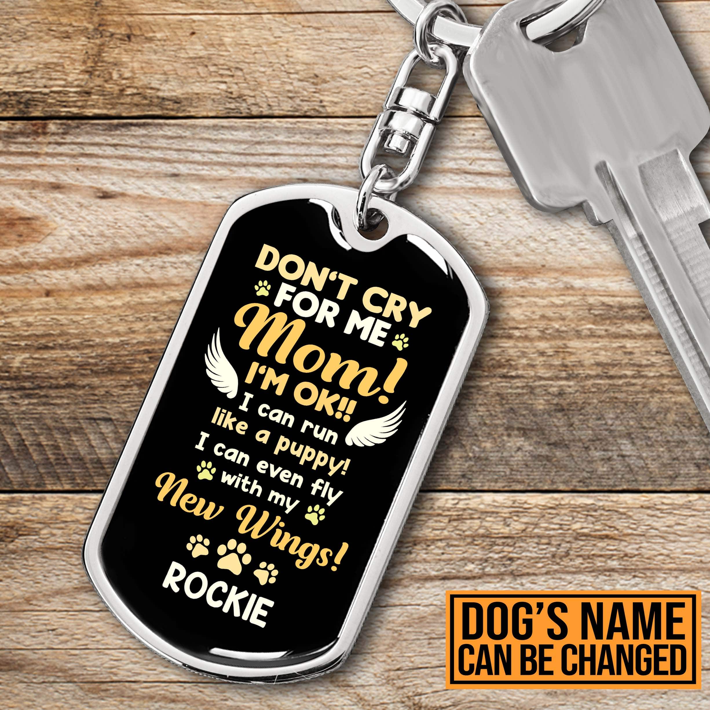 Let’s Shop Personalized Don’t Cry For Me Mom I Can Run Like A Puppy I Can Even Fly With My New Wings Dog Tag Keychain!