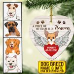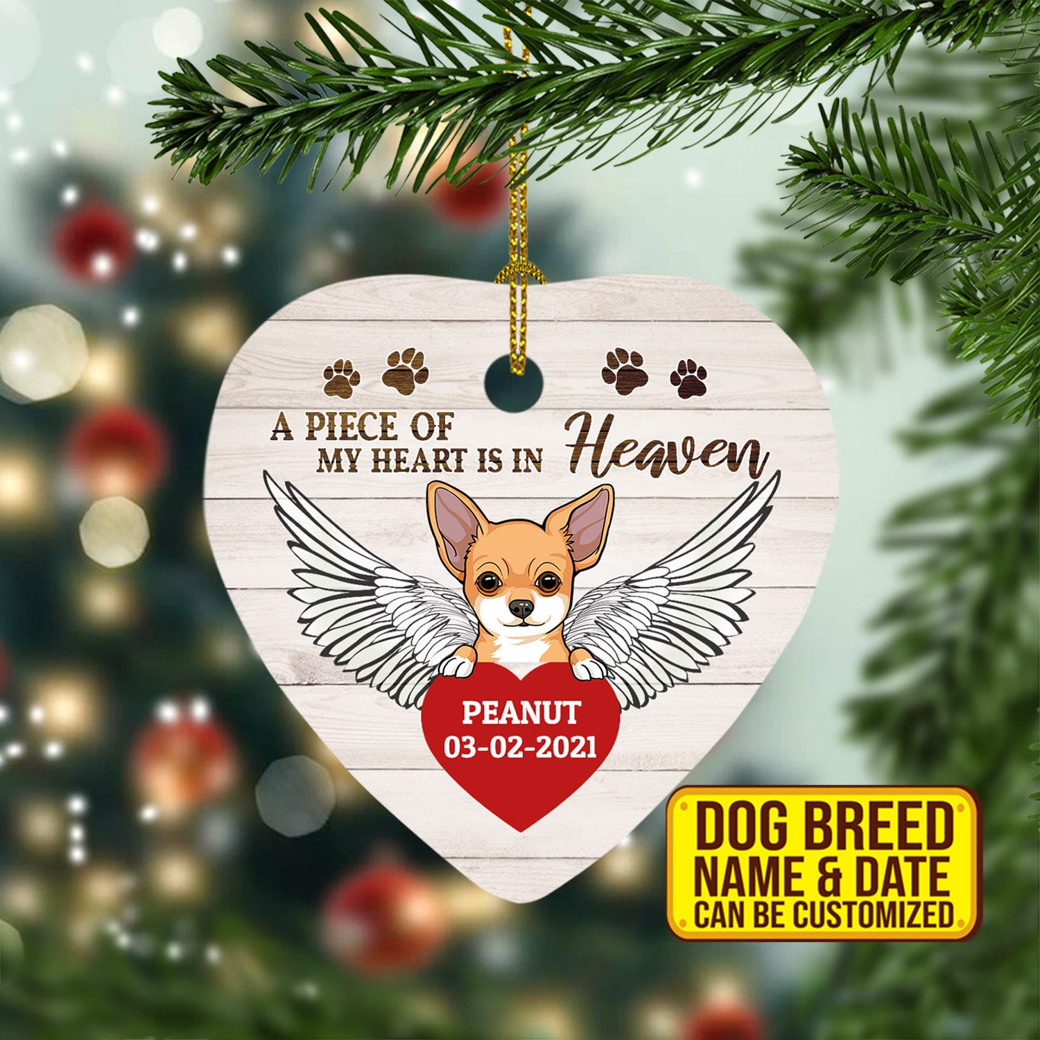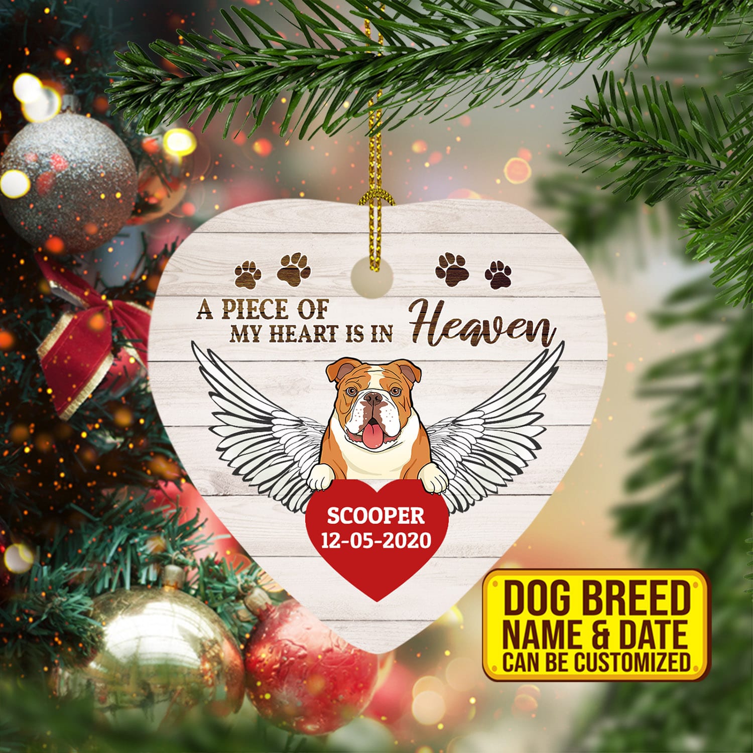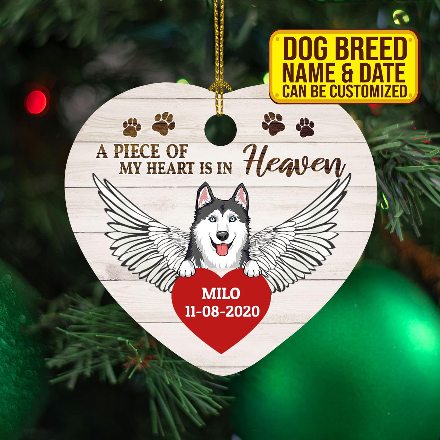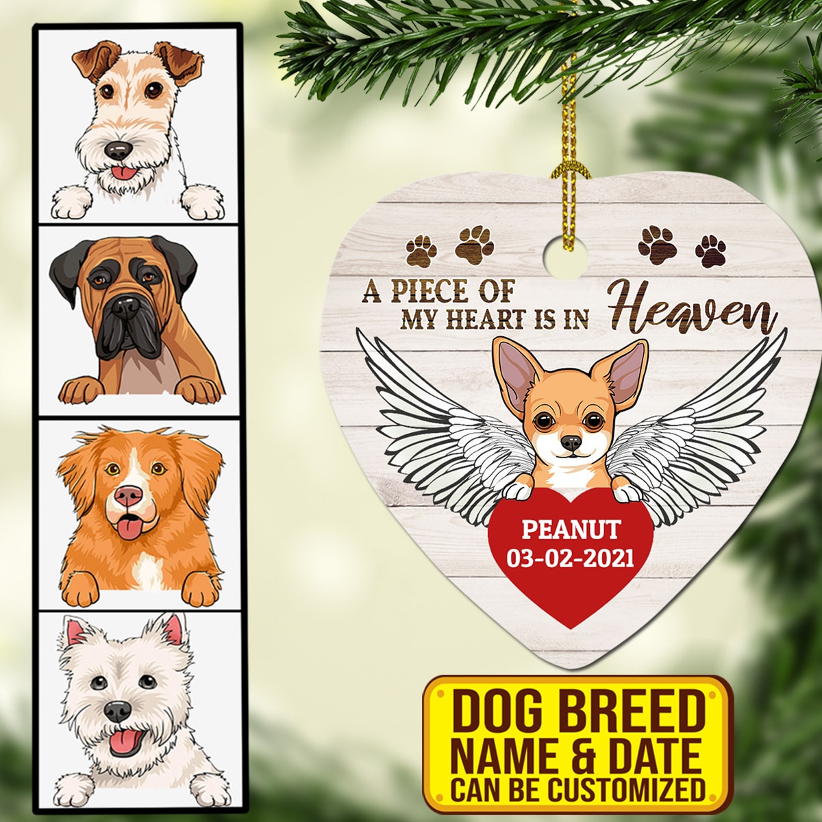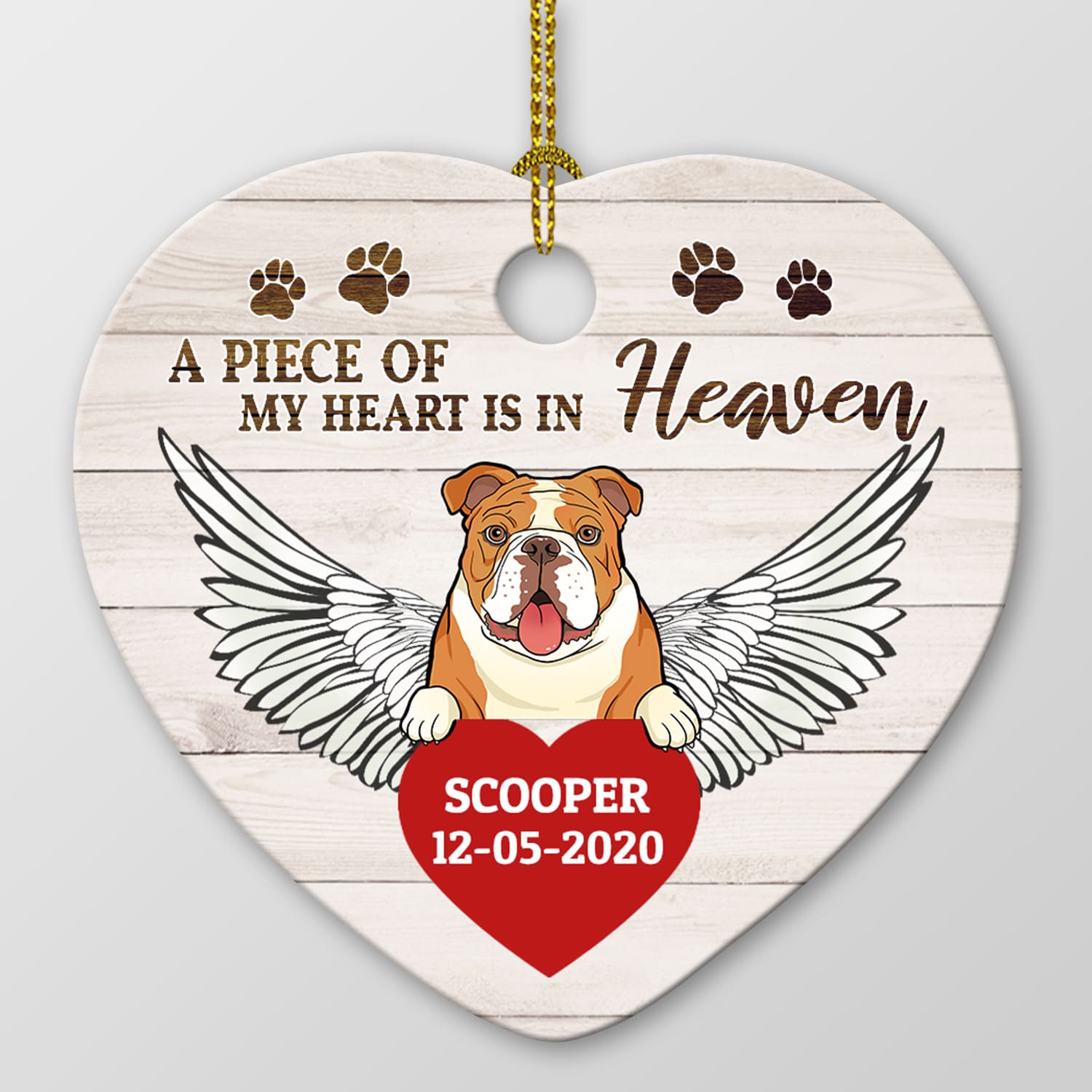 Let’s Shop A Piece Of My Heart Is In Heaven Personalized Dog Memorial Heart Wooden Christmas Ornament!