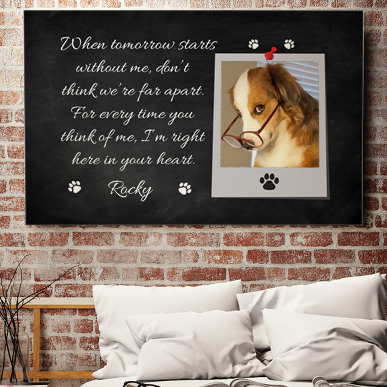 Let’s Shop Custom Photo Pet Memorial Framed Canvas – Tomorrow Starts Without Me Don’t Think We Far Apart Unframed Poster!