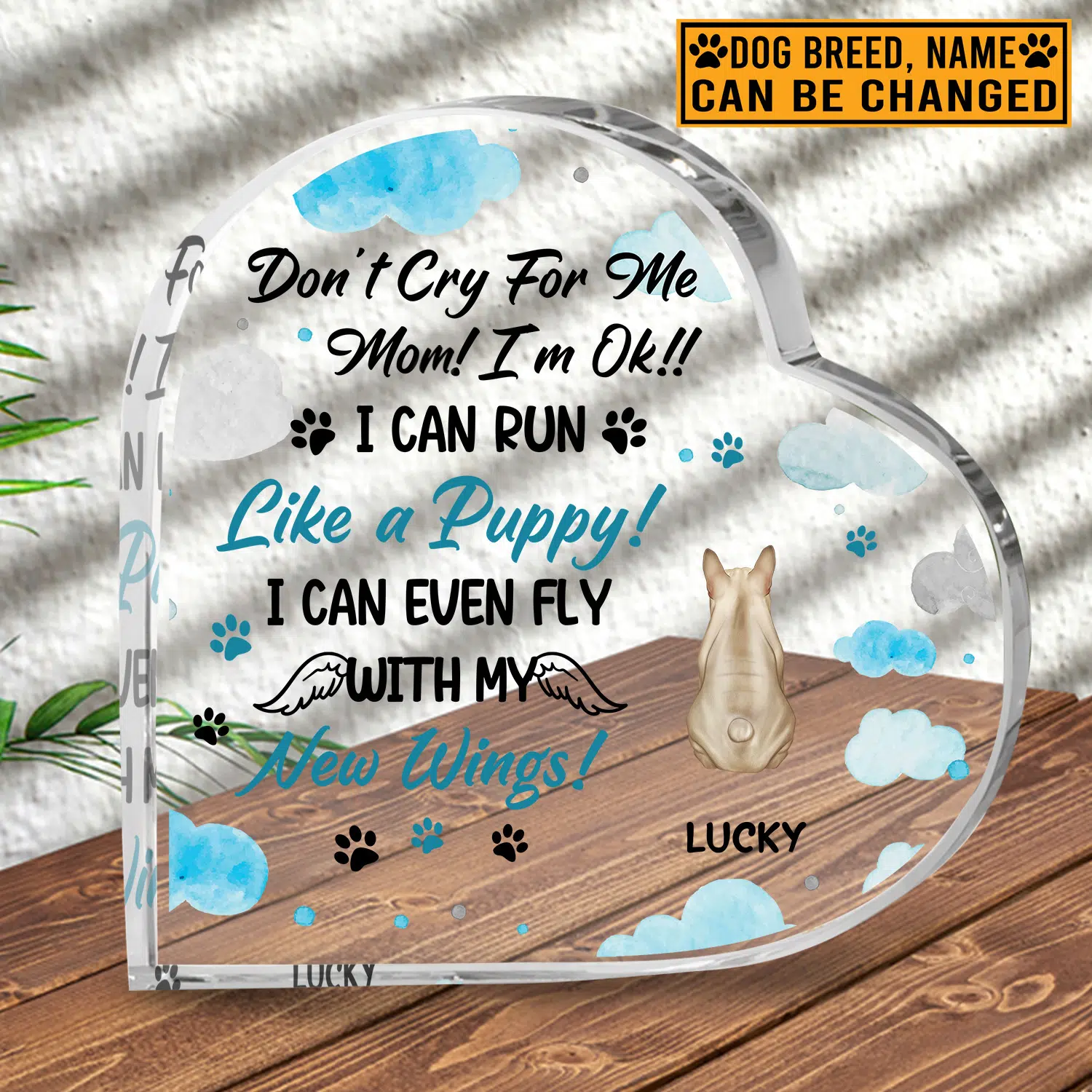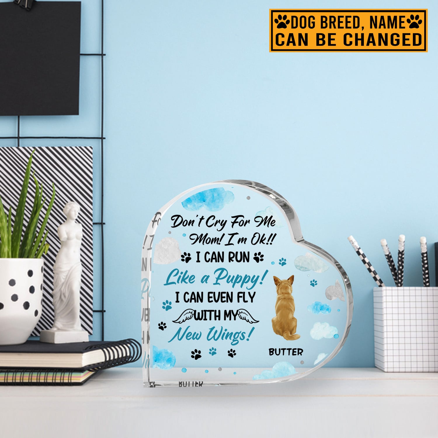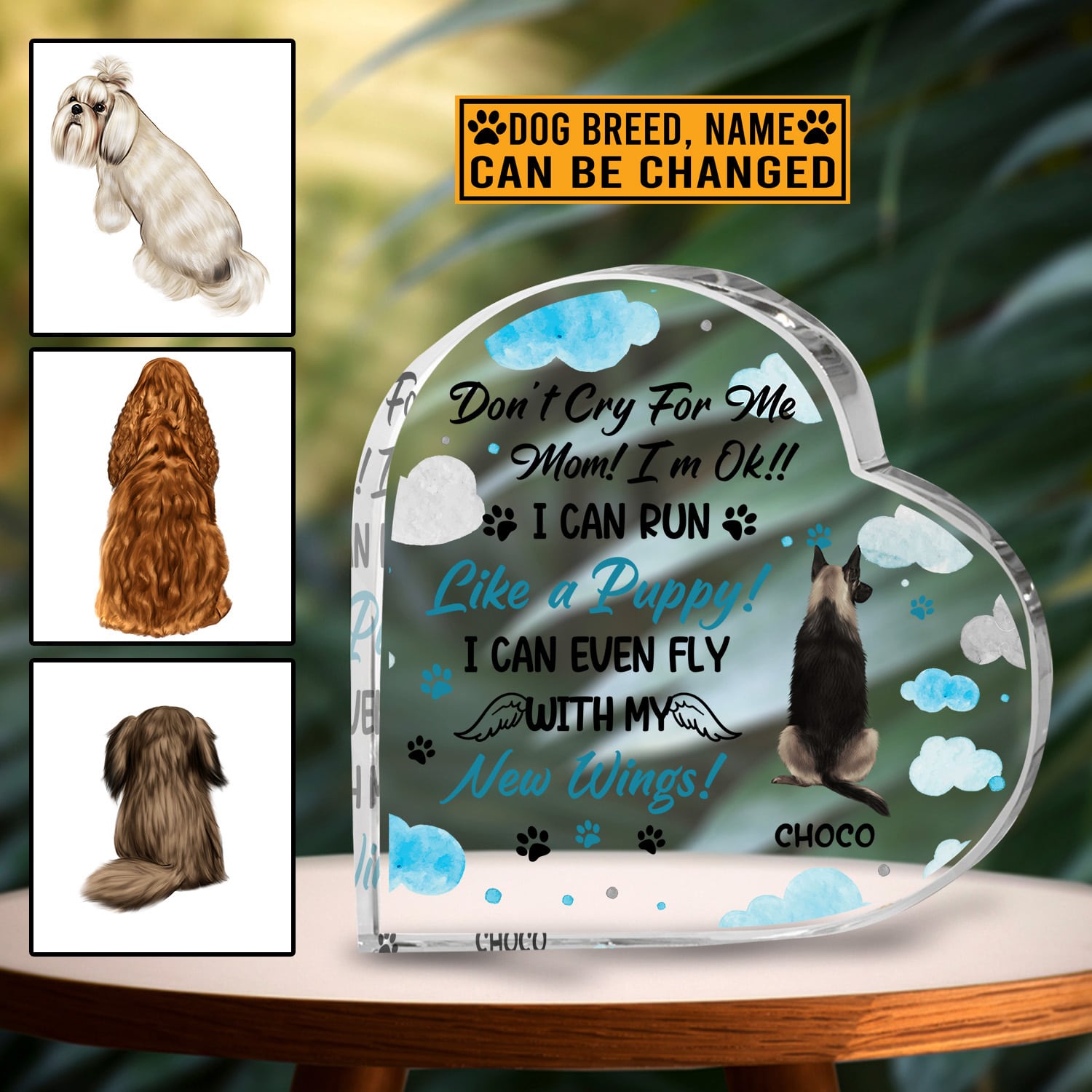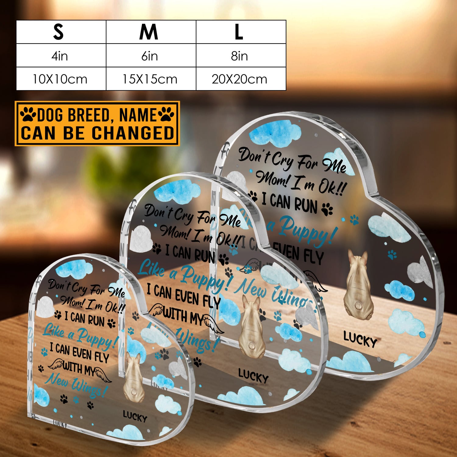 Let’s Shop Personalized Clipart Dog Memorial Gifts Don’t Cry For Me Mow I’m Ok Heart Shaped Acrylic Plaque Custom Dog Breeds Gifts!