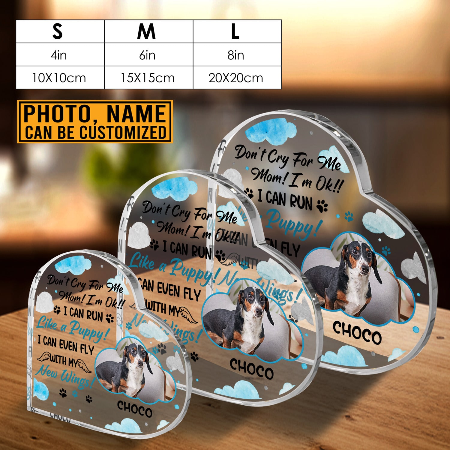 Let’s Shop Personalized Photo Dog Memorial Gifts Don’t Cry For Me Mow I’m Ok Heart Shaped Acrylic Plaque Custom Dog Breeds Gifts!