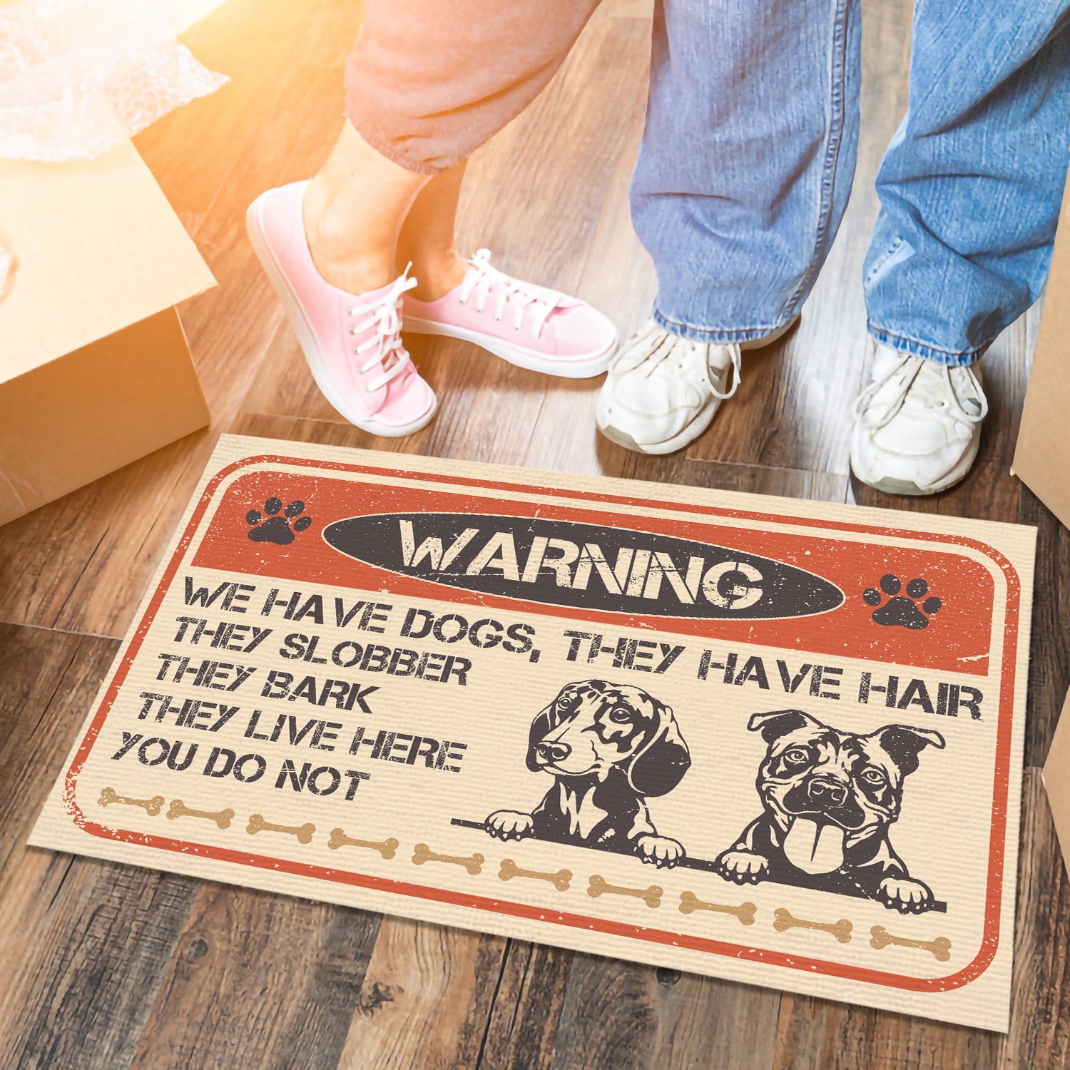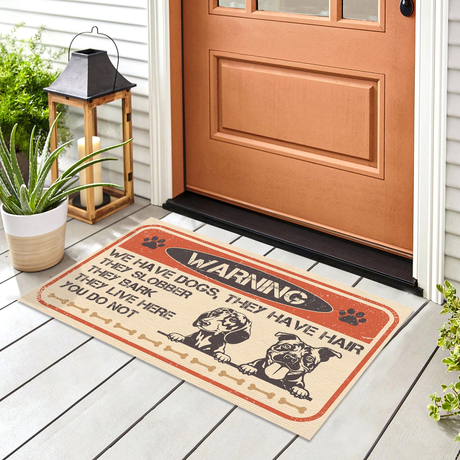 Let’s Shop Warning We Have Dogs They Have Hair They Slobber They Bark Decorative Doormat – Indoor Outdoor Welcome Mat!