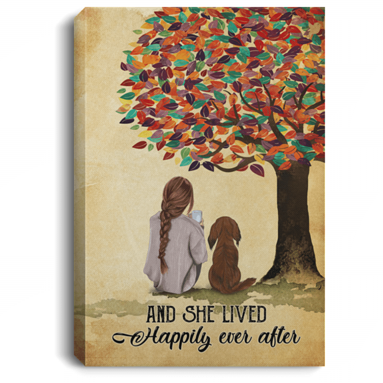 And She Lived with the Dog Happily Ever After Colorful Tree Framed Canvas – Unframed Poster