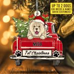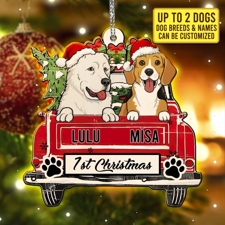 Let’s Shop Personalized Dog Breed First Christmas Red Truck Custom Shaped Wooden Christmas Ornament Keepsake!
