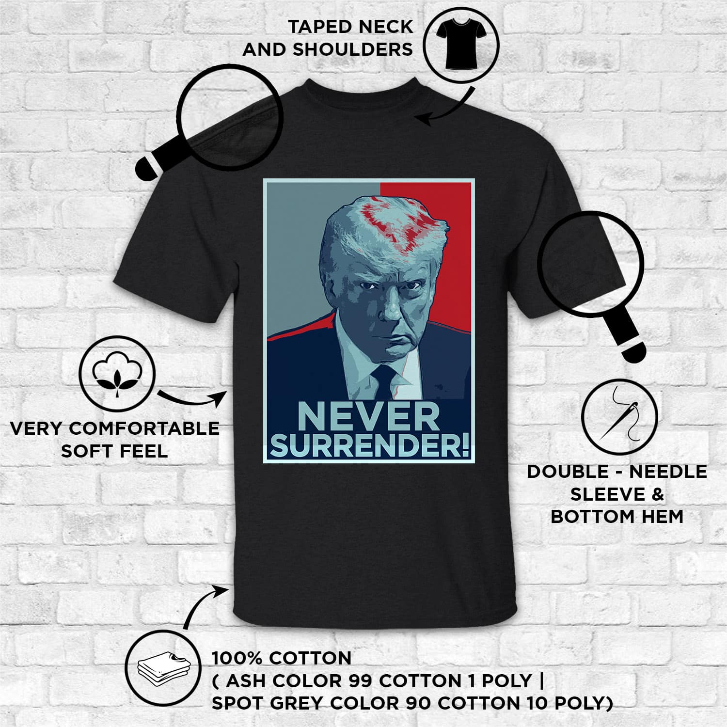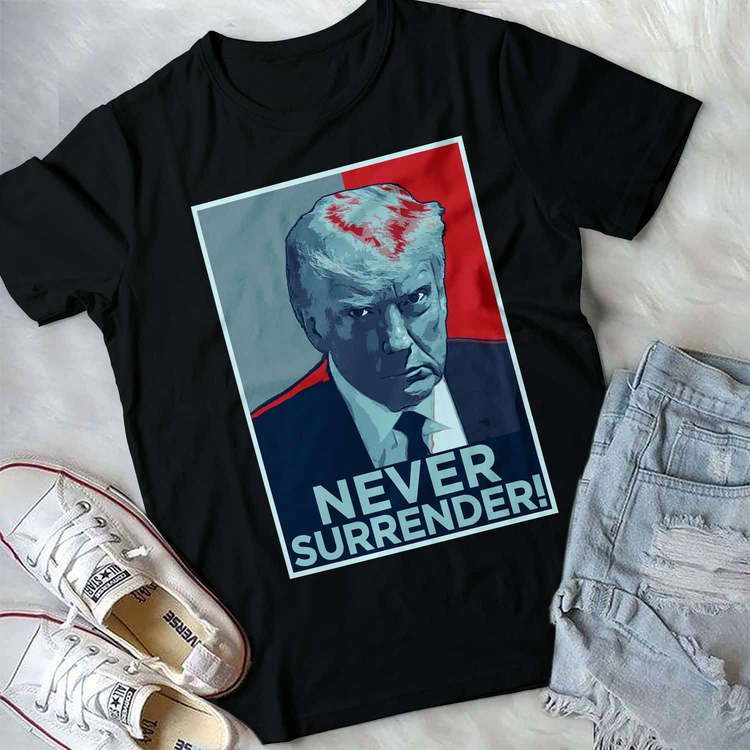 Donald Trump Mug Shot Never Surrender President Vote 2024 T-Shirt