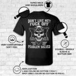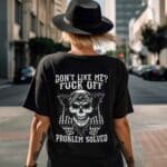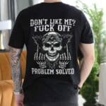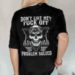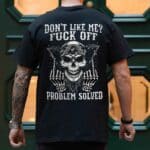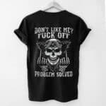 Don’t Like Me Fuck Off Problem Solved Funny Skull Printed On Back T-Shirt Only – Plain Front Shirt