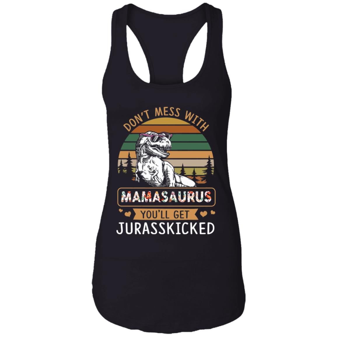 Don’t Mess with Mamasaurus You’ll Get Jurasskicked Funny Mama Tank Top – Racerback Tank Shirt – Trendy Floral