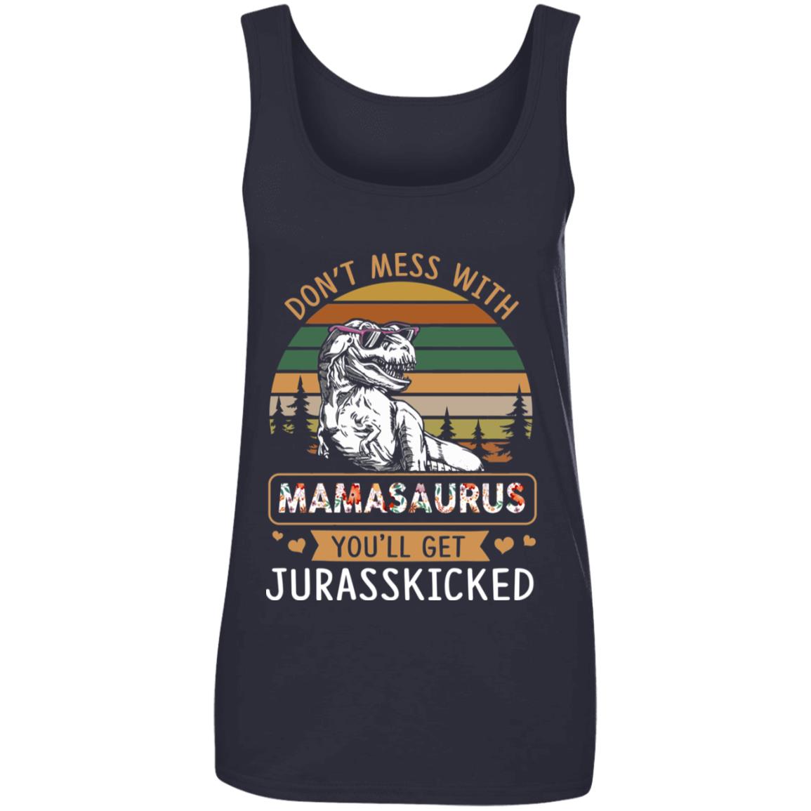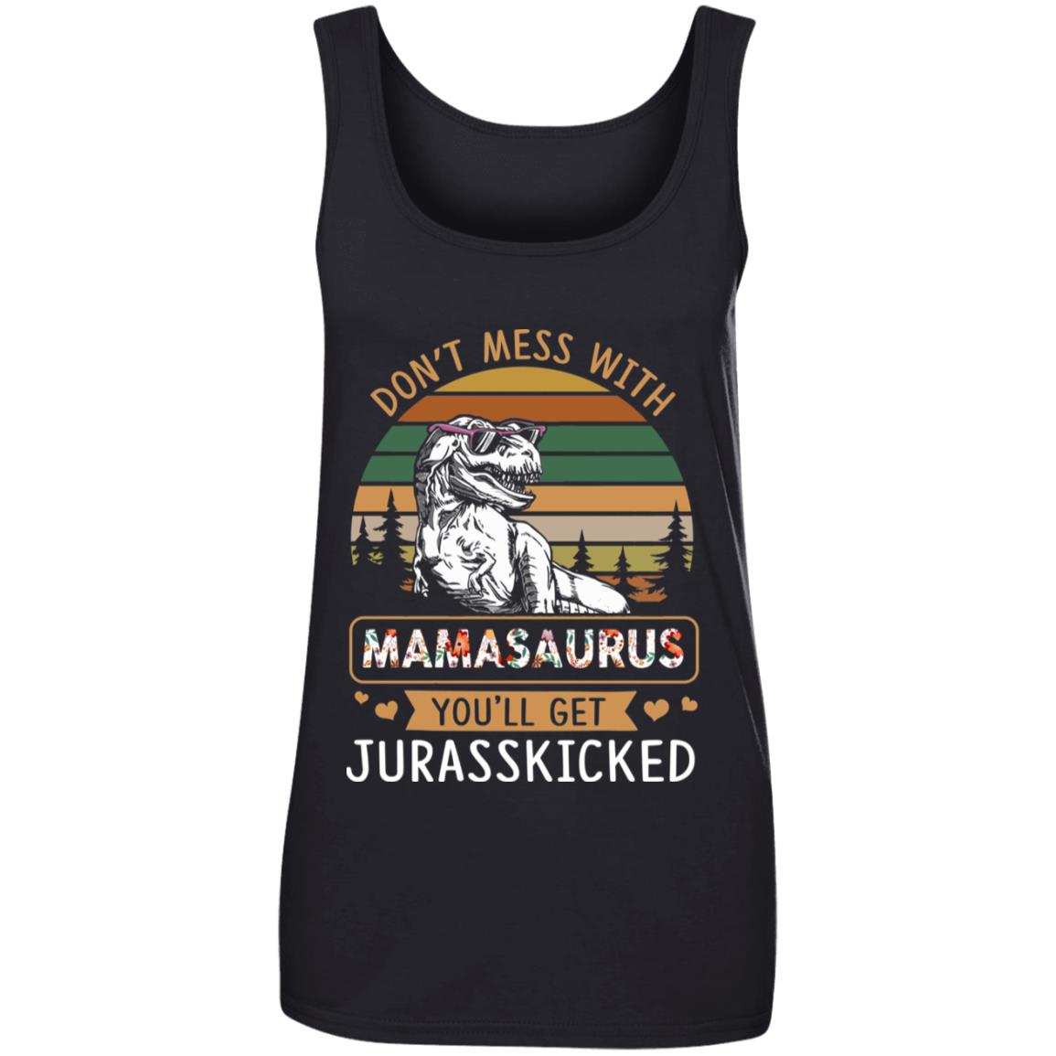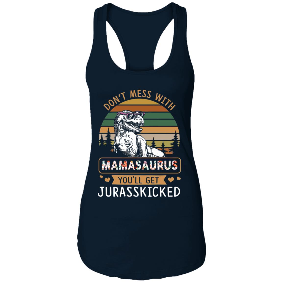 Don't Mess with Mamasaurus You'll Get Jurasskicked Funny Mama Tank Top - Racerback Tank Shirt - Trendy Floral