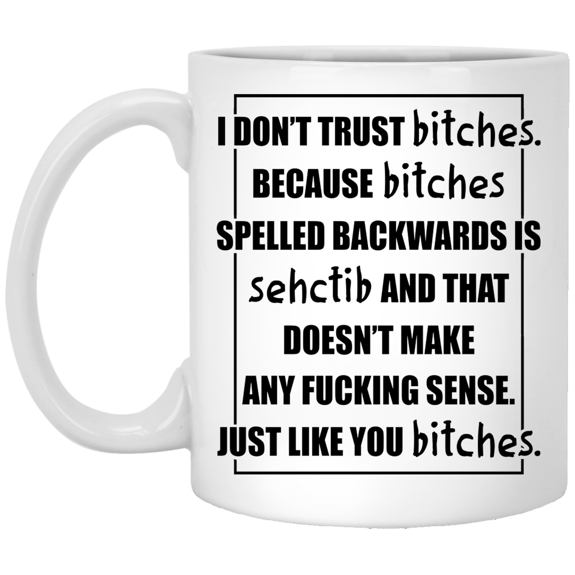 Don’t Trust Bitches Because Bitches Spelled Backwards Sehctib Ceramic Coffee Mug – Beer Stein -Water Bottle