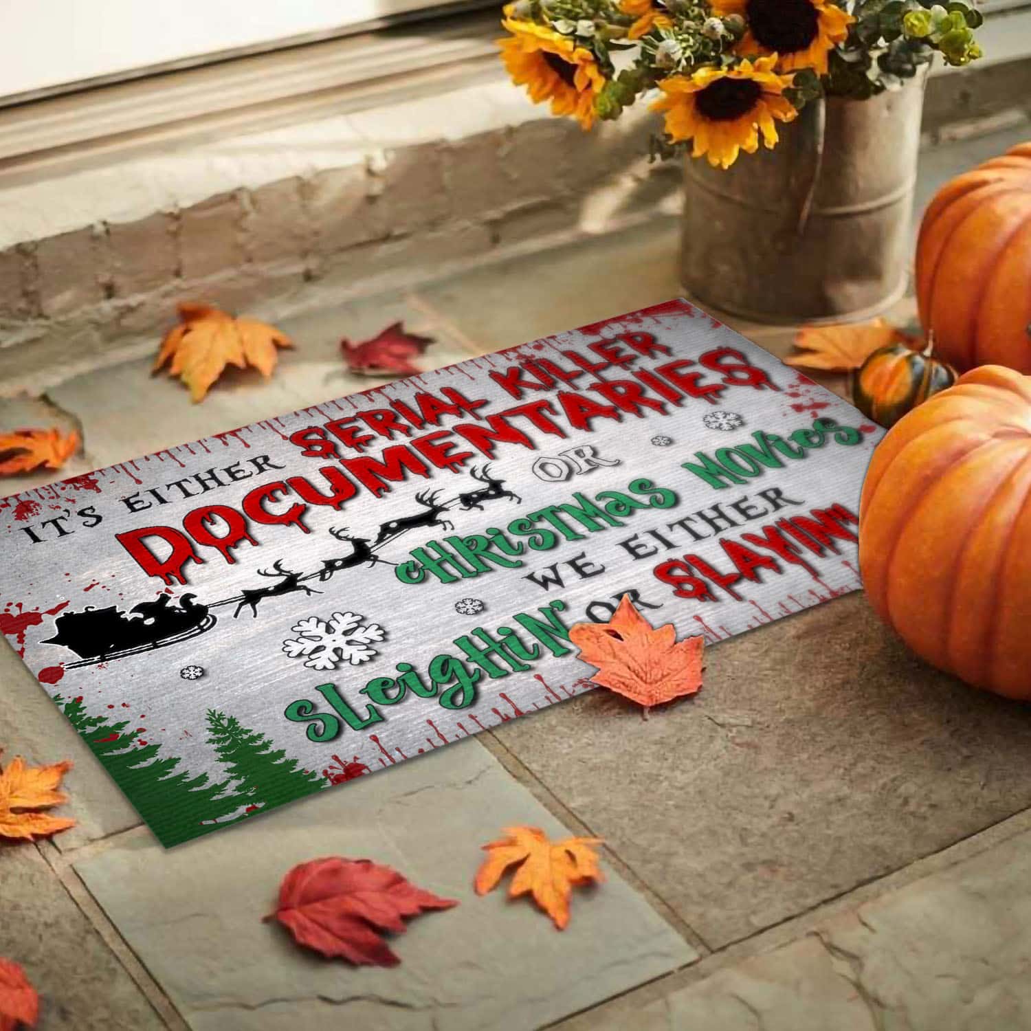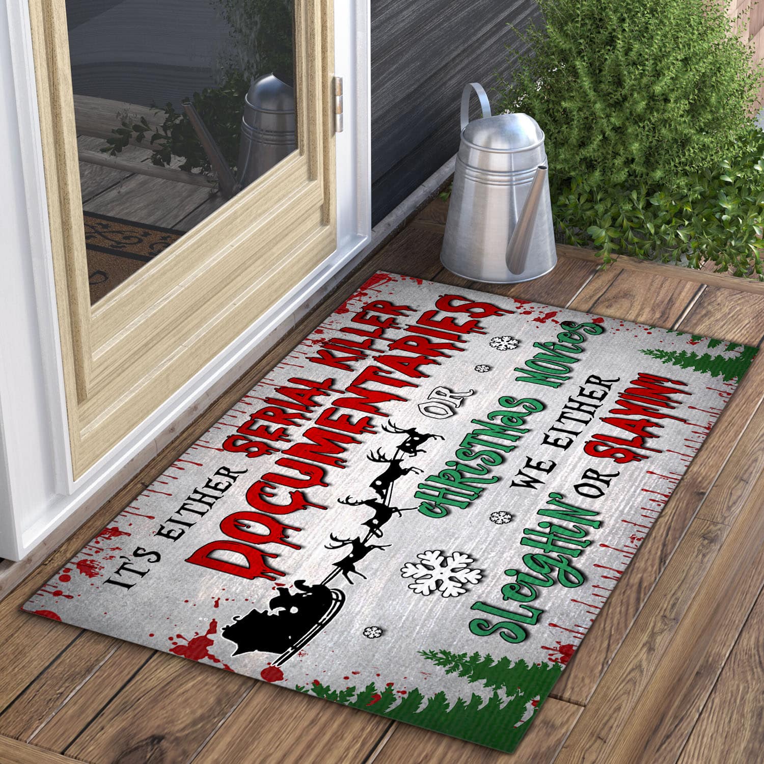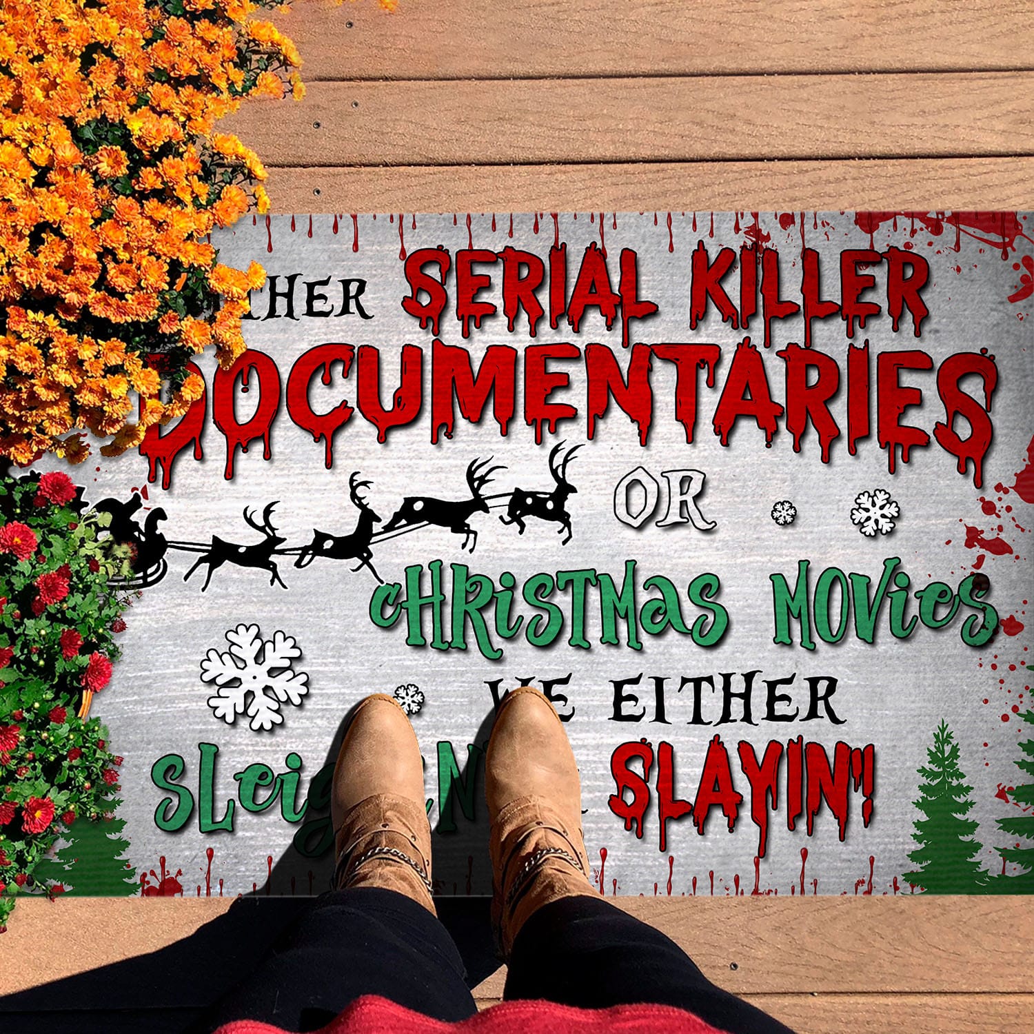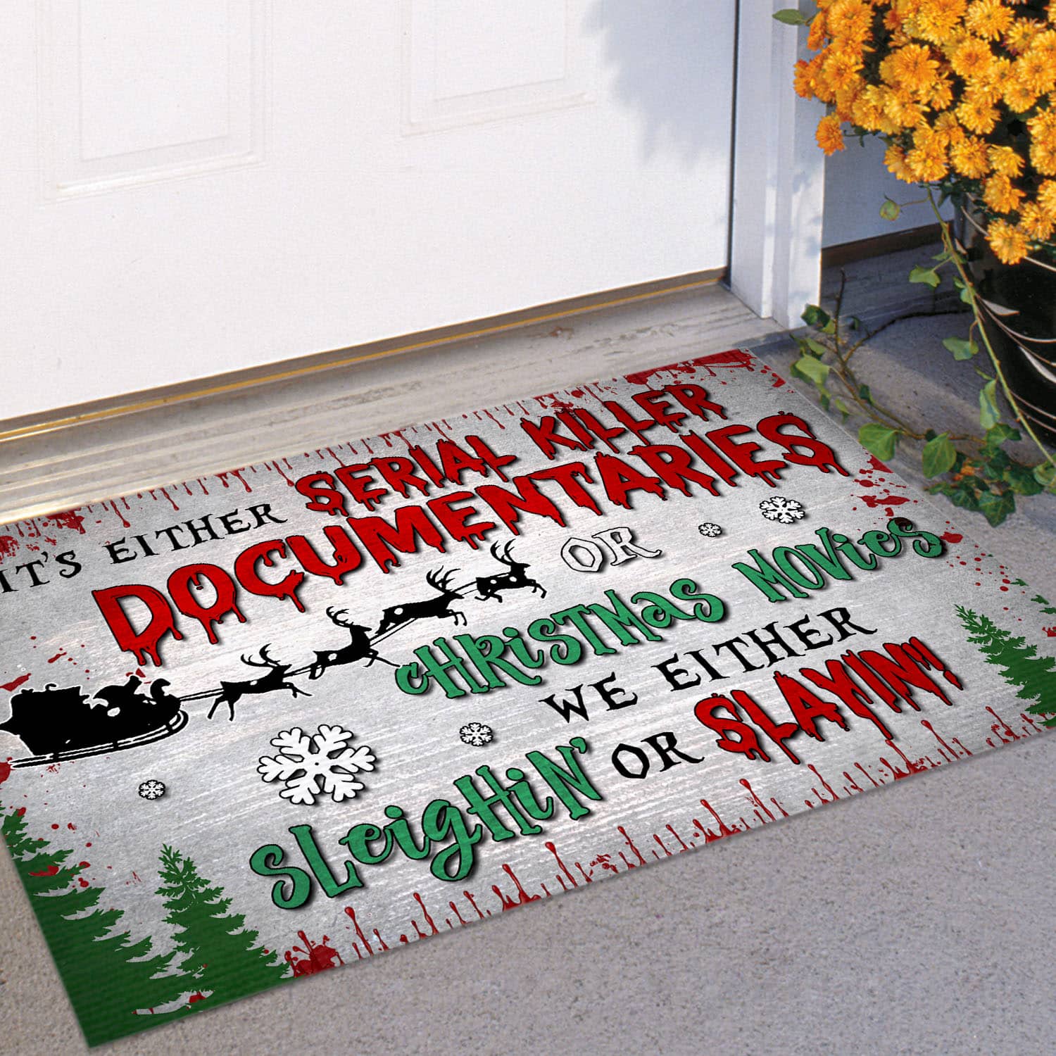 Let’s Shop It’s Either Serial Killer Documentaries Or Christmas Movie We Either Sleighin’ Or Slayin’ House Outdoor Doormat!