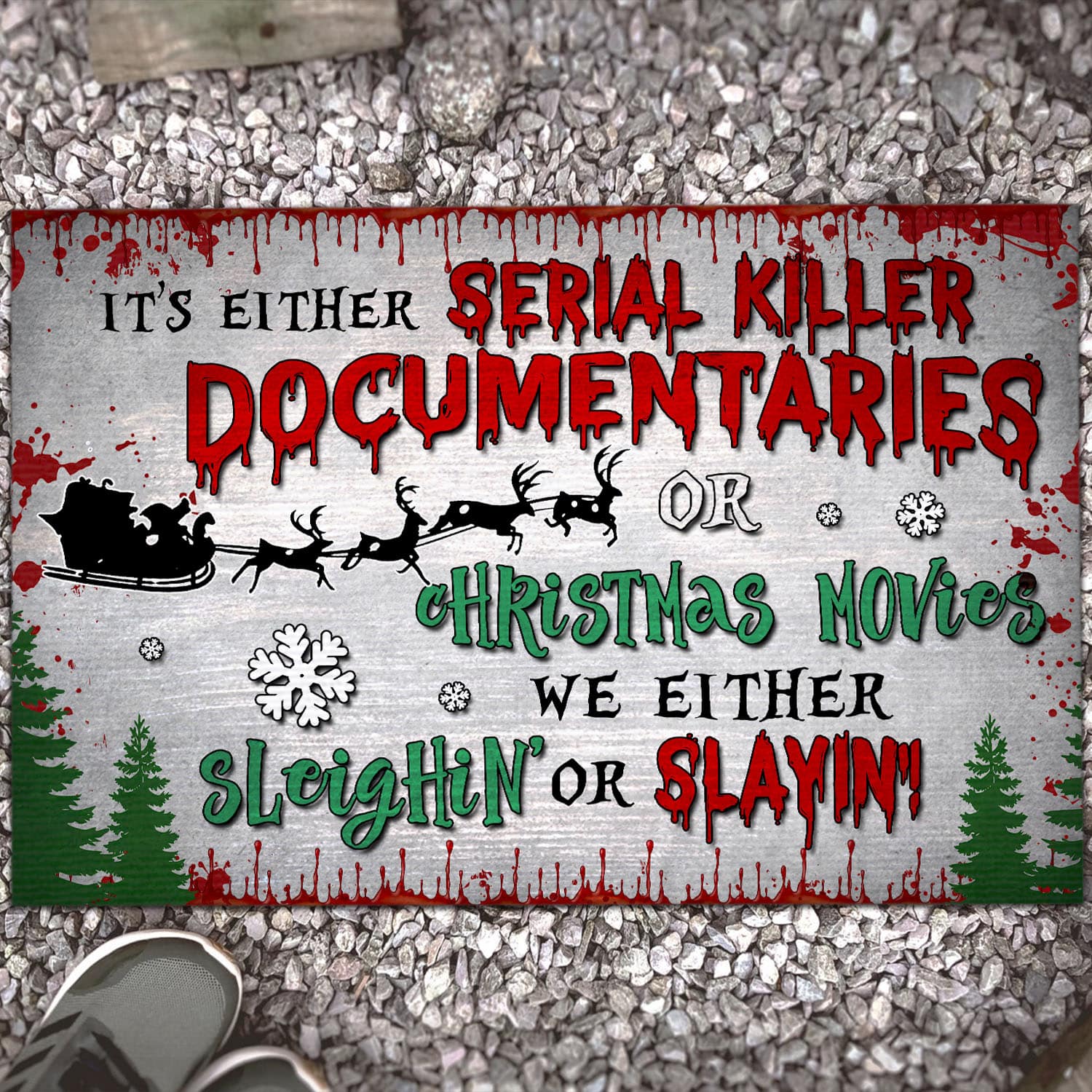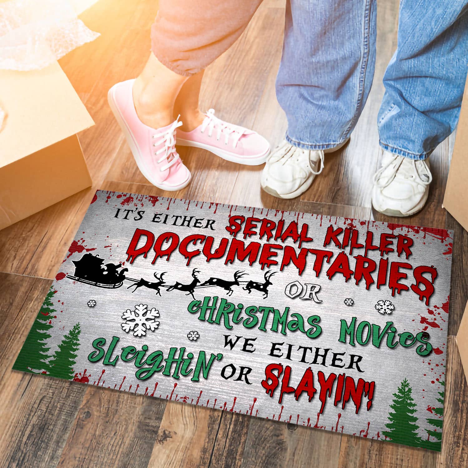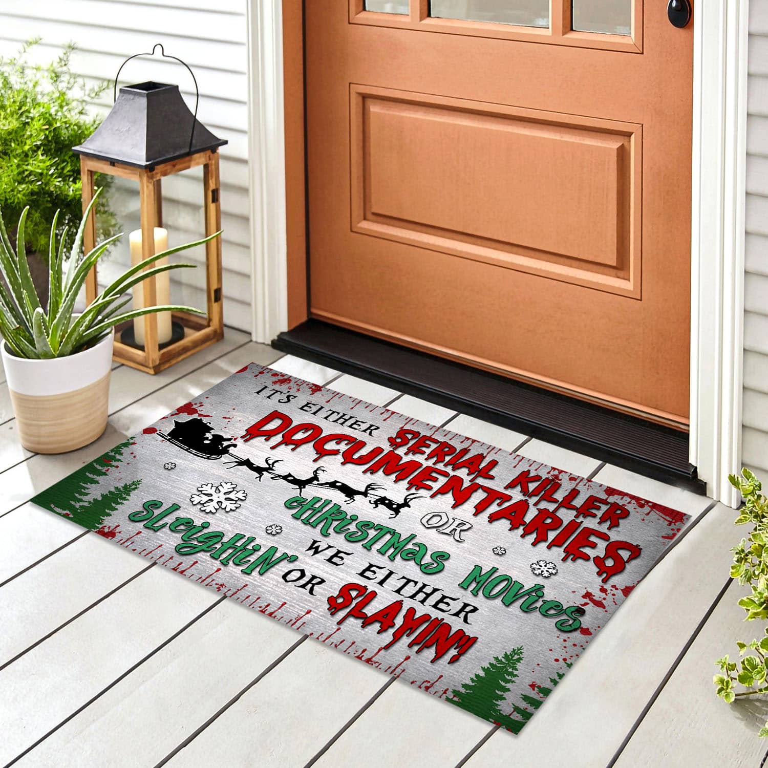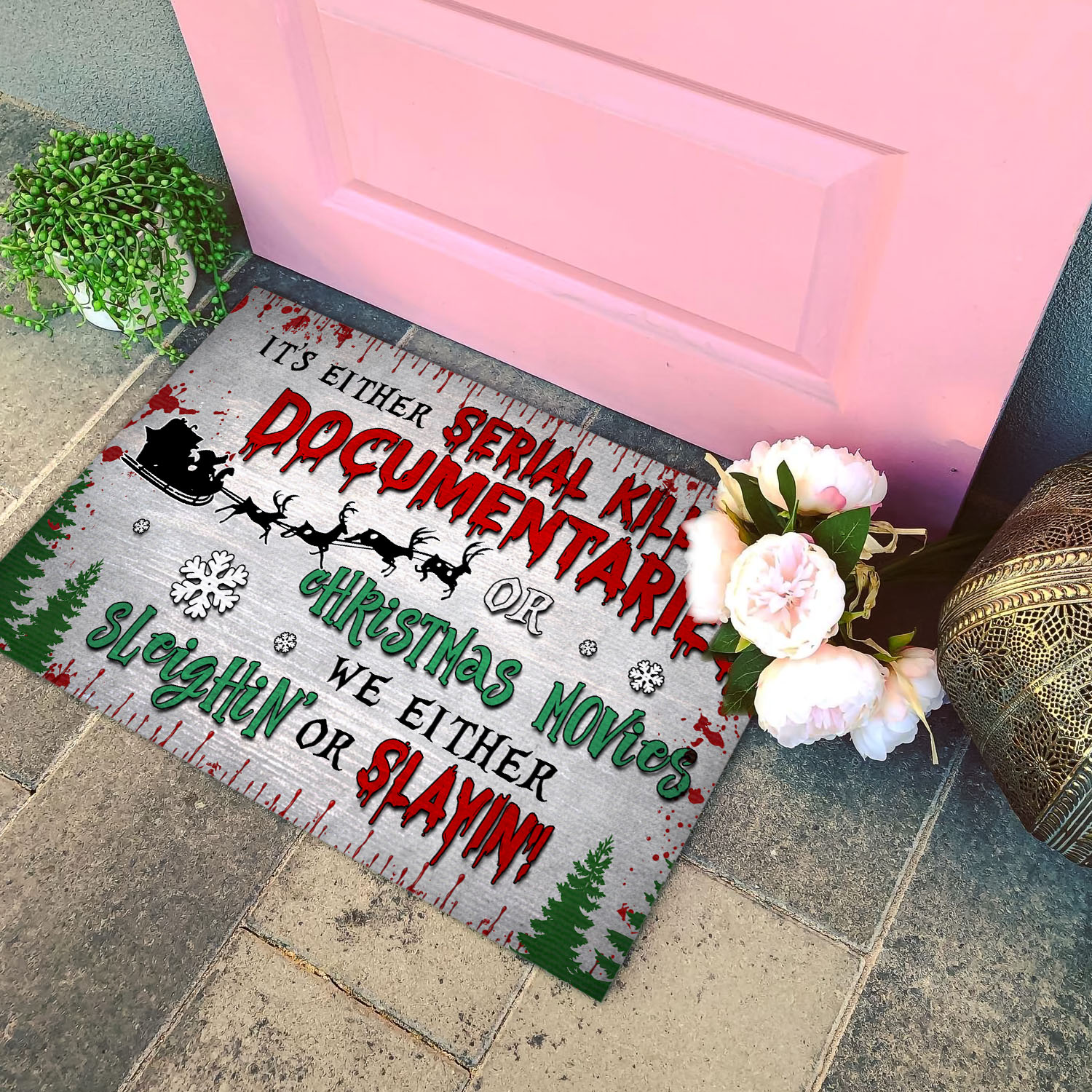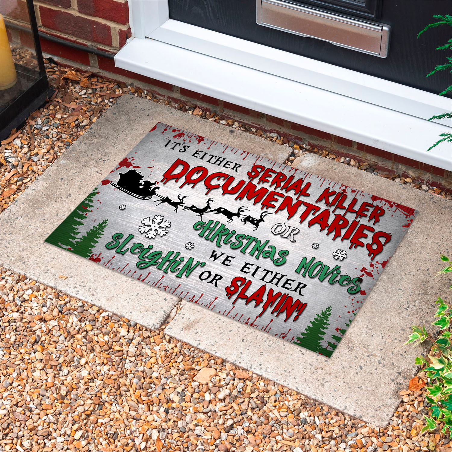 Let’s Shop It’s Either Serial Killer Documentaries Or Christmas Movie We Either Sleighin’ Or Slayin’ House Outdoor Doormat!