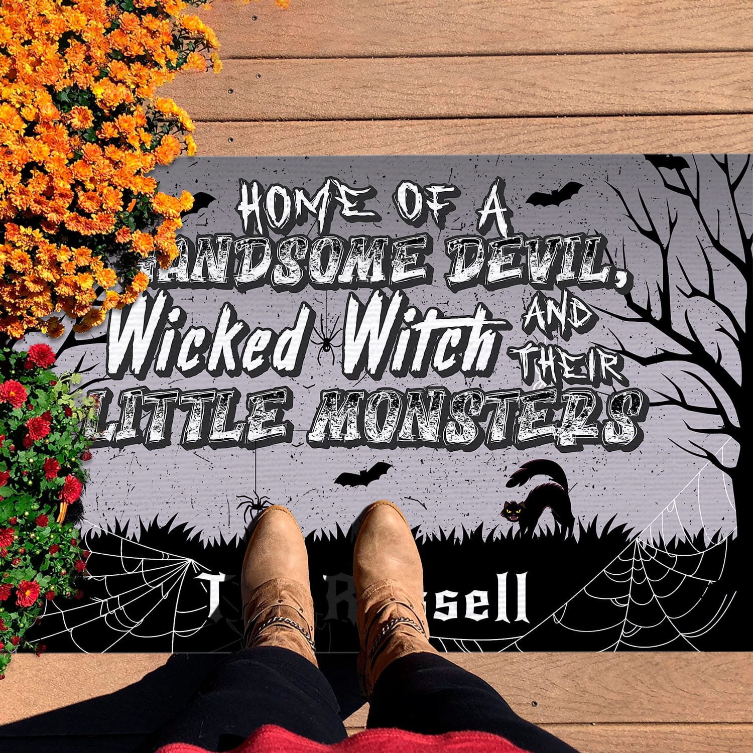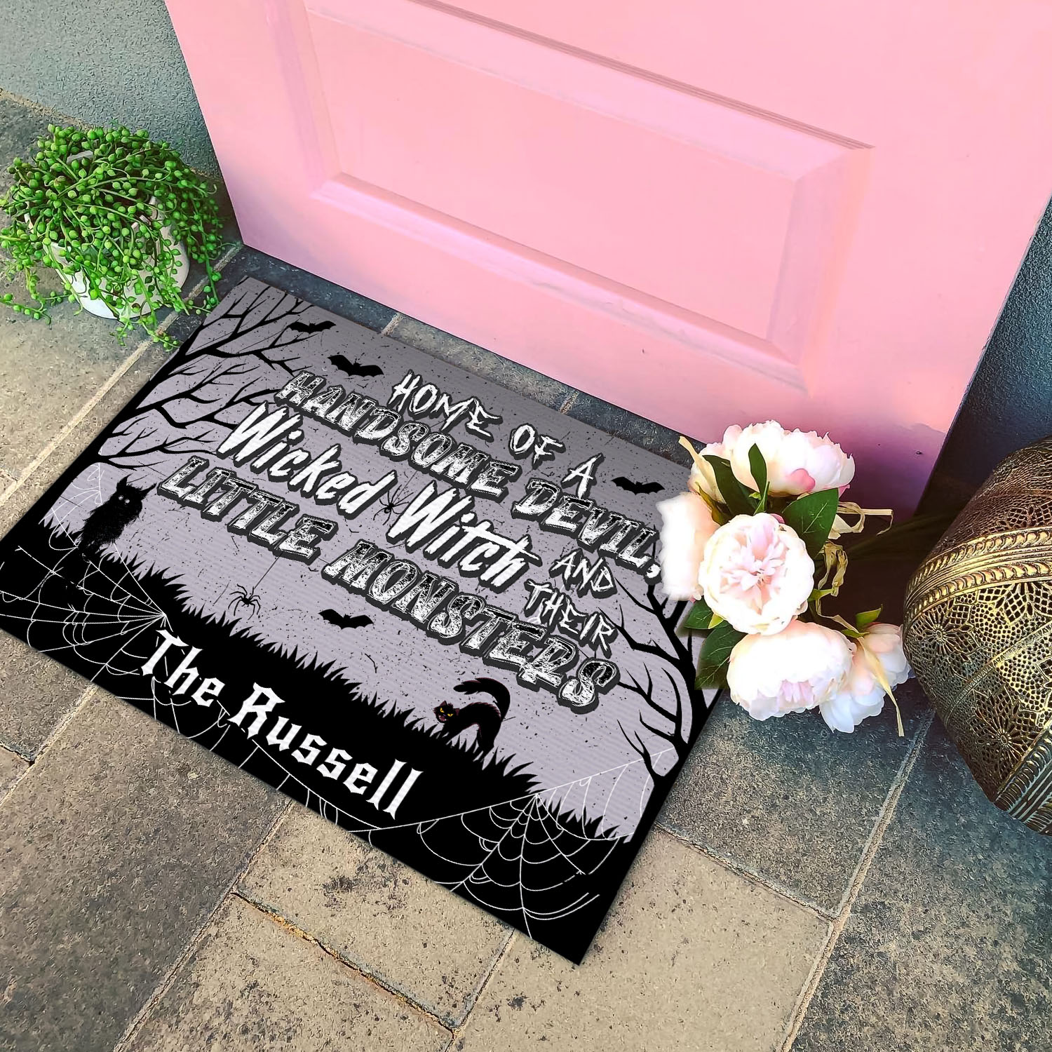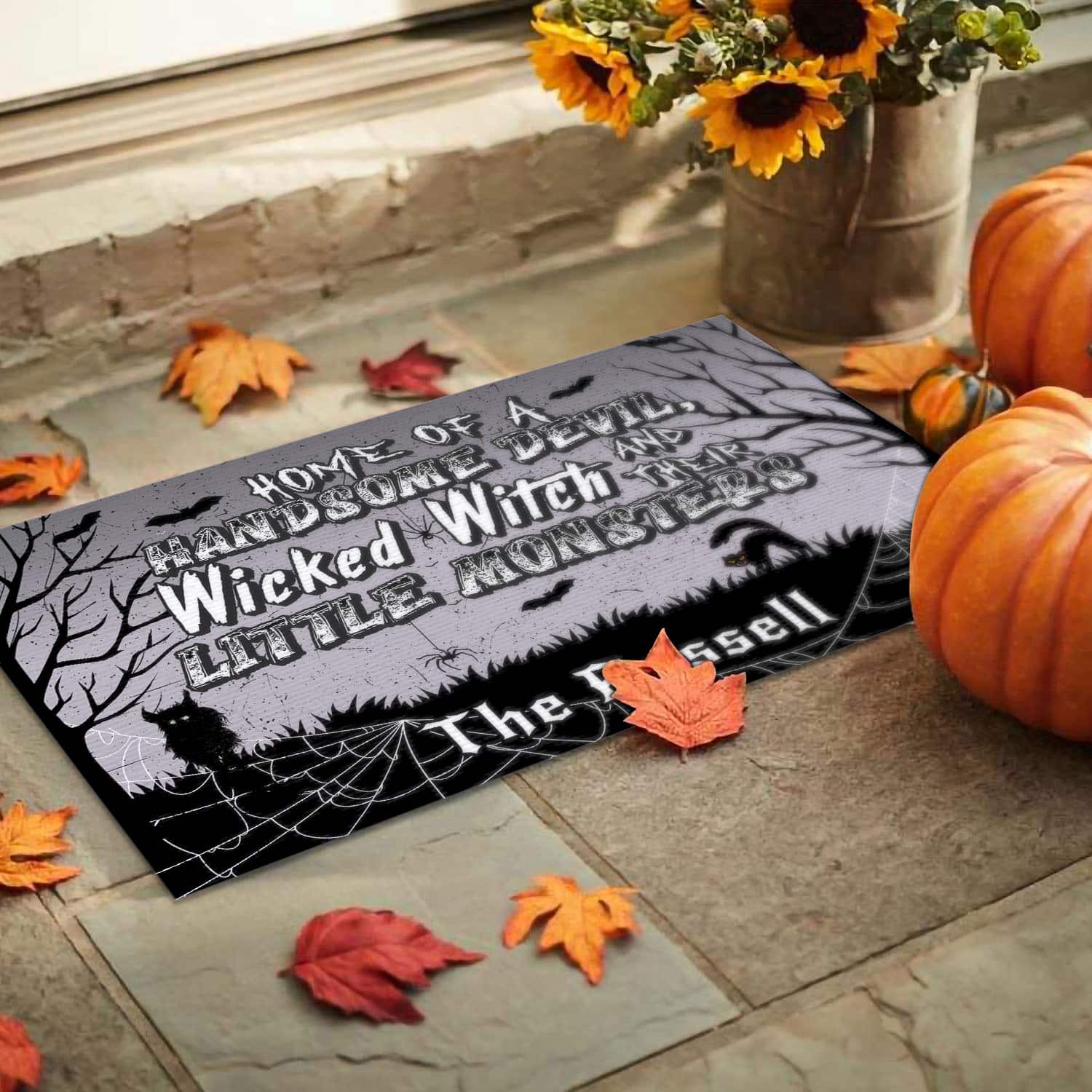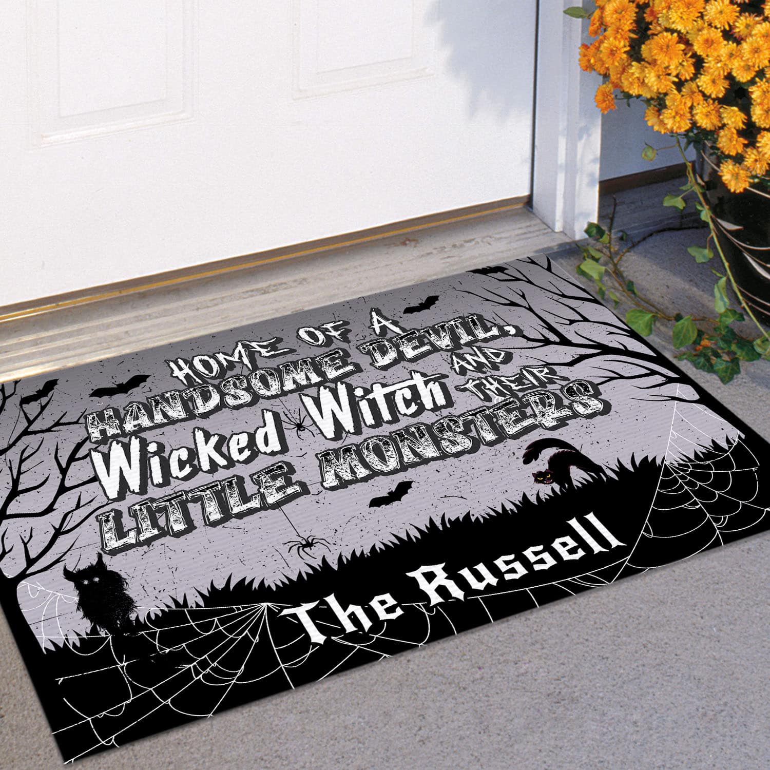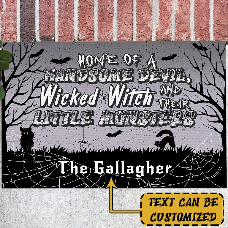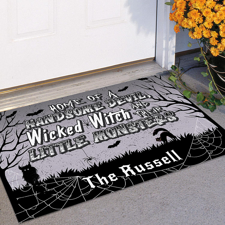Let’s Shop Personalized Home Of A Handsome Devil Wicked Witch And Their Little Monsters House Doormat – Outdoor Indoor Doormat!