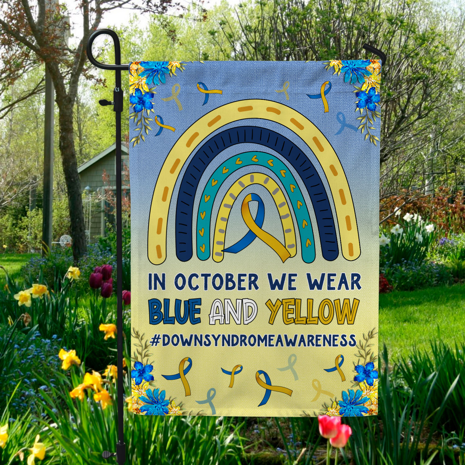 Are you spending too much time to find creative merchandise for you or suitable & special gifts for your mommy, your daddy, your son, your daughter, your children, your friends or someone you love? The struggle is over because we have various In October We Wear Blue And Yellow Down Syndrome Awareness Outdoor Indoor Garden Flag – House Flag – Wall Flag, Down Syndrome Awareness Flag, Down Syndrome Flag, Down Syndrome House Flag, Down Syndrome Awareness Outdoor Flag, Down Syndrome Garden Flag, Down Syndrome Awareness Garden Flag which will make perfect presents for your beloveds. In order to make your present stand out, we have created lots of unique and awesome customized photo gifts & personalized designs.