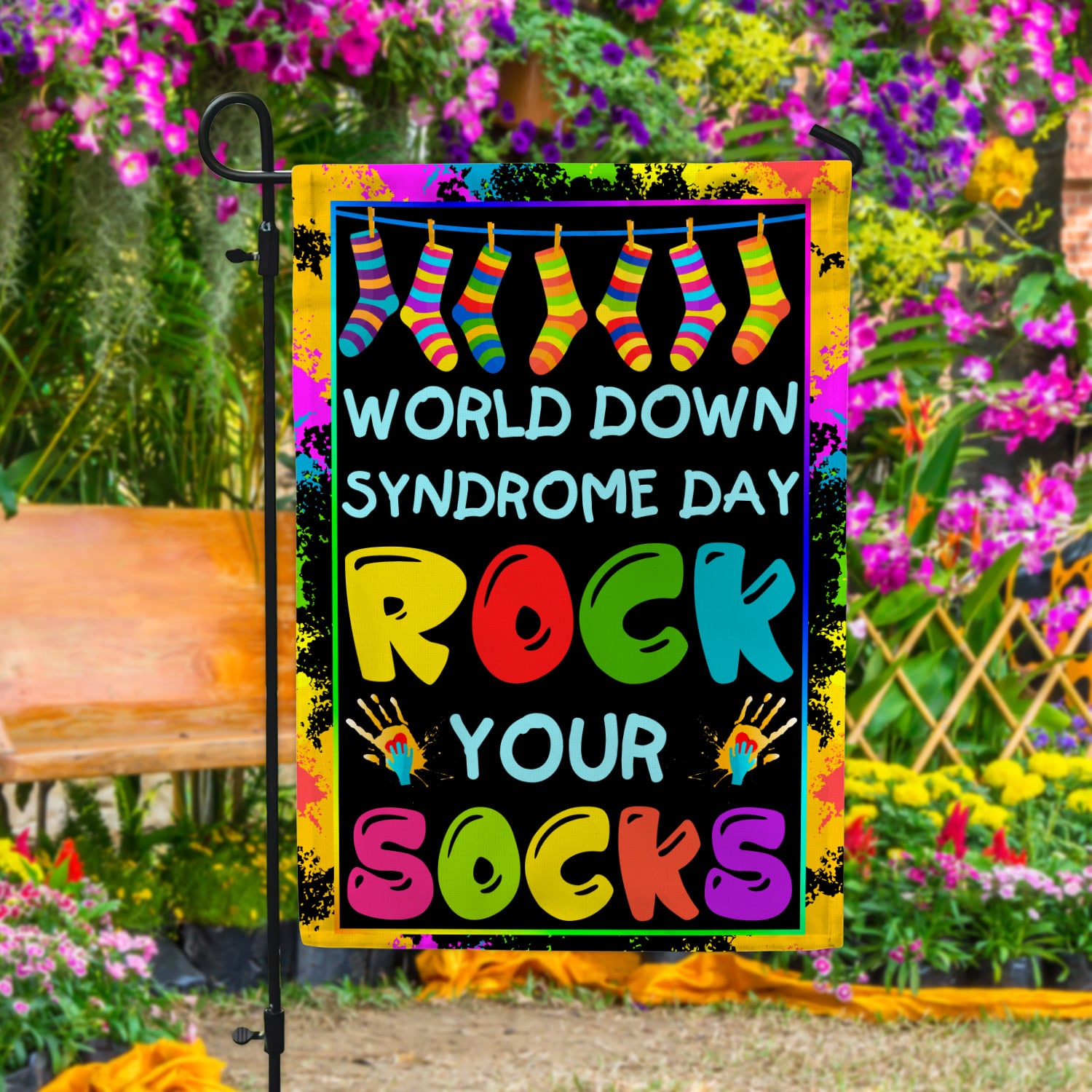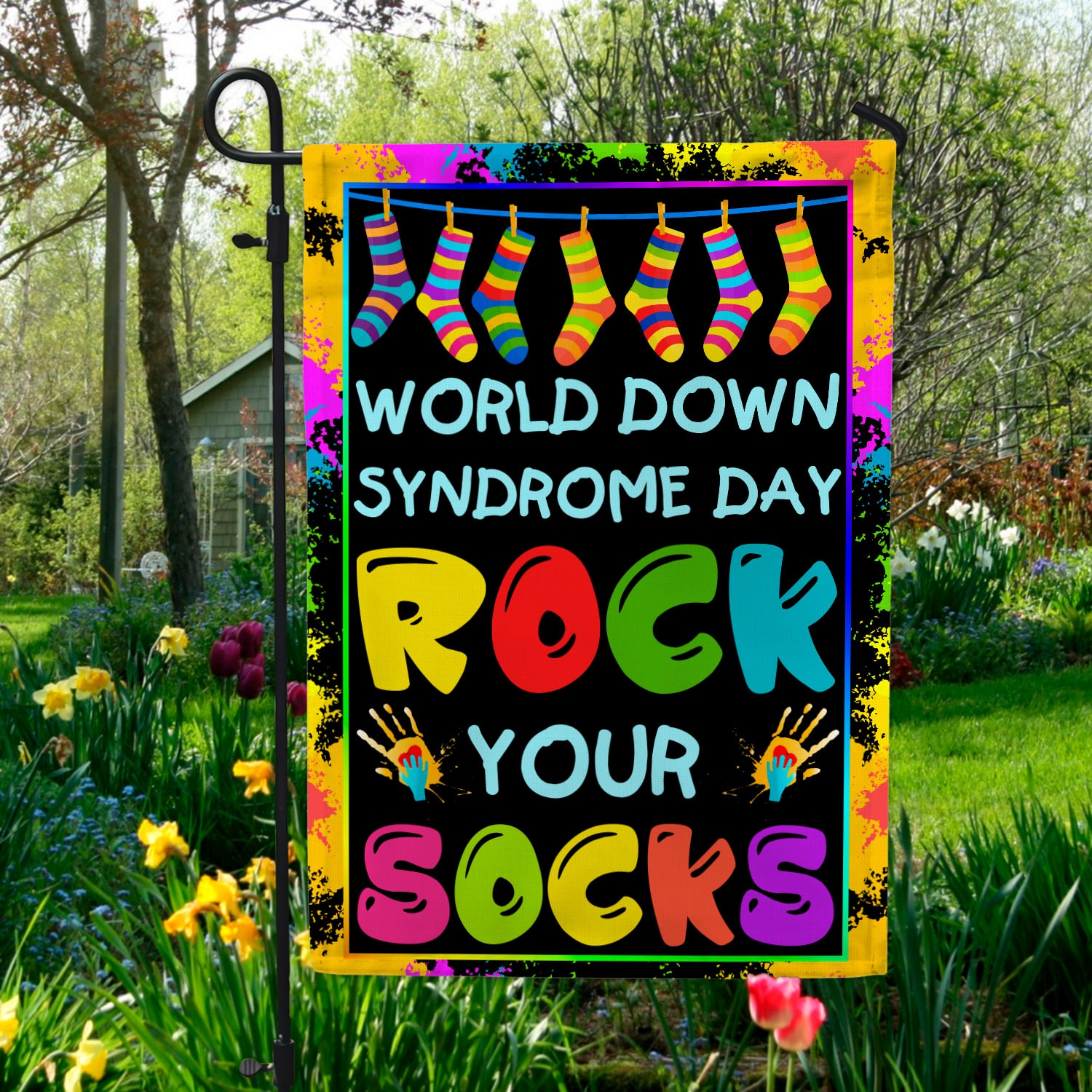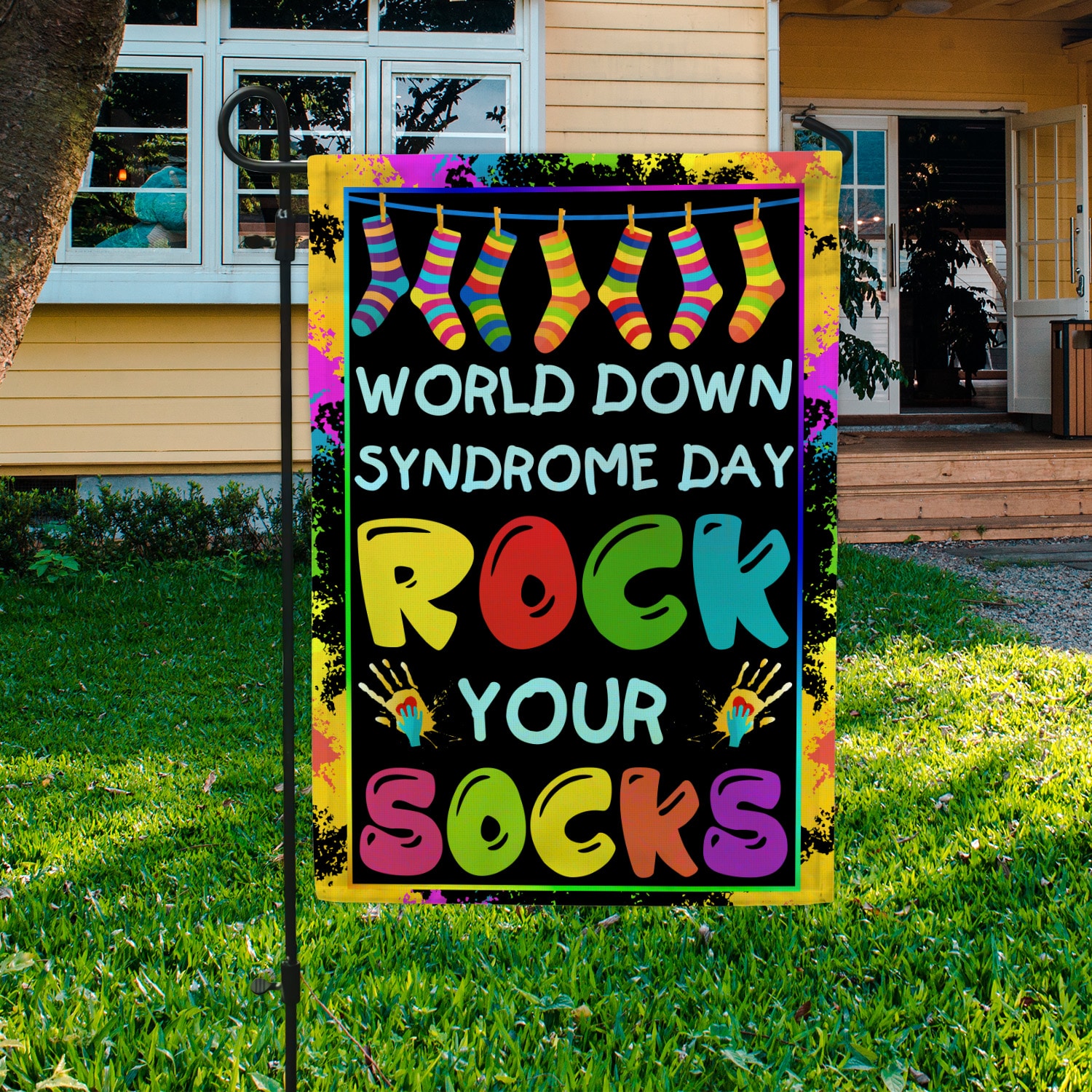 Let’s Shop World Down Syndrome Day Rock Your Socks Decorative Garden Flag – House Flag – Wall Flag!
