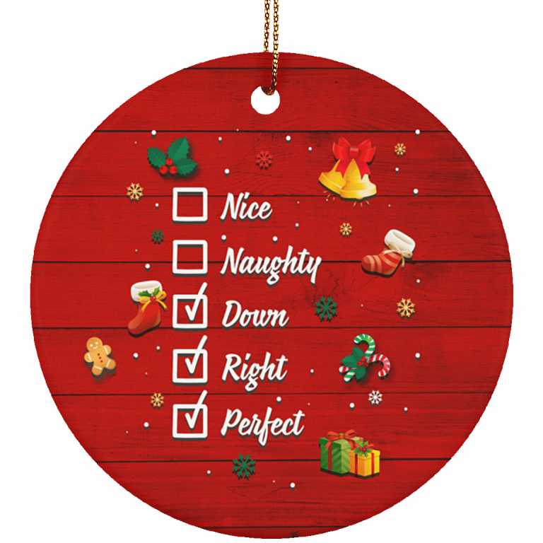 Shop Nice Naughty Down Right Perfect Decorative Christmas Holidays Flat Circle Porcelain Ceramic Ornament Keepsake.