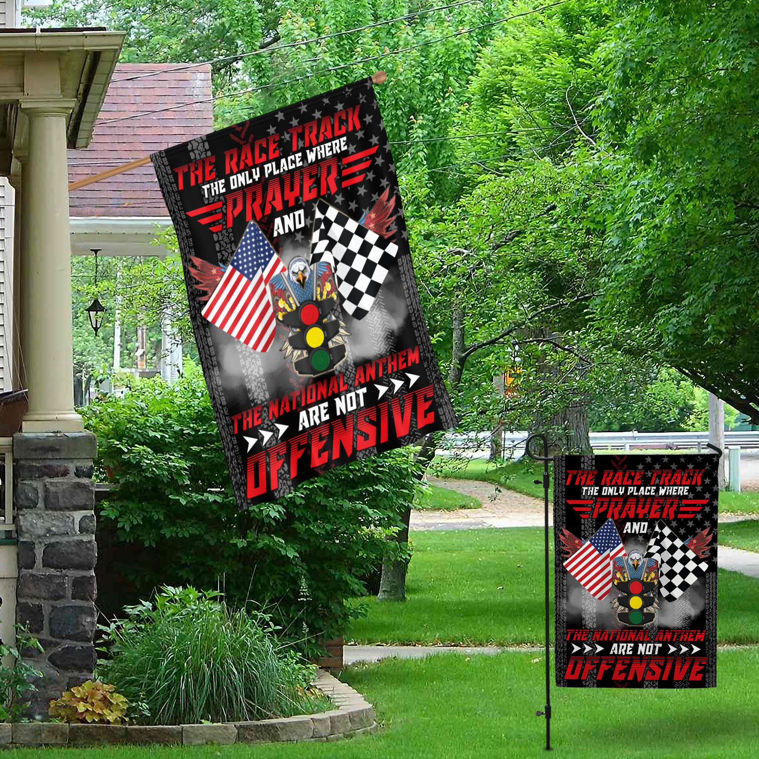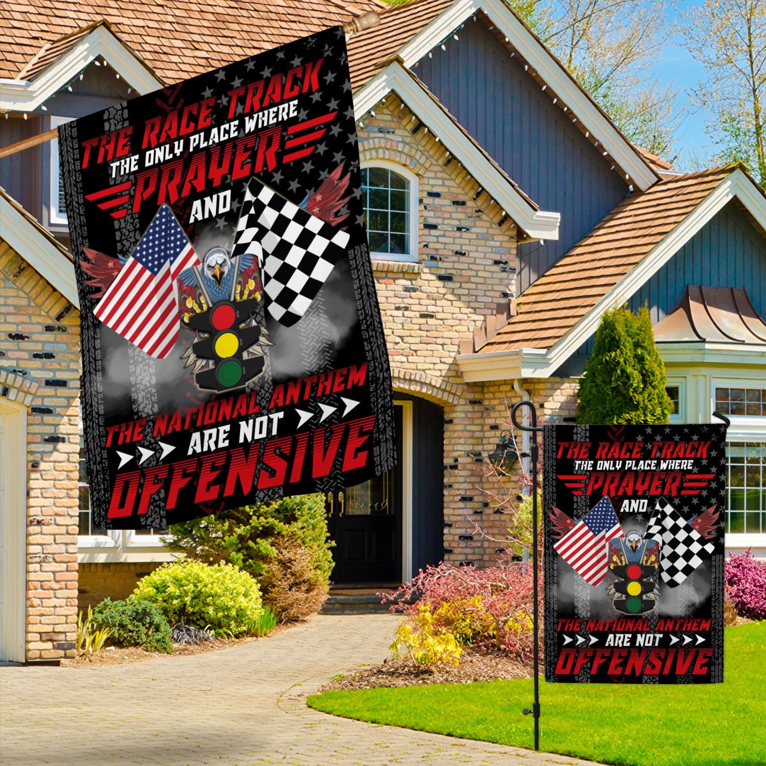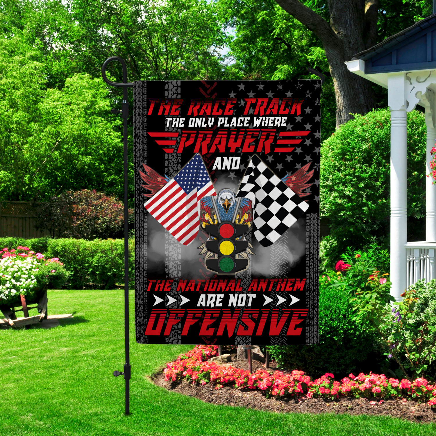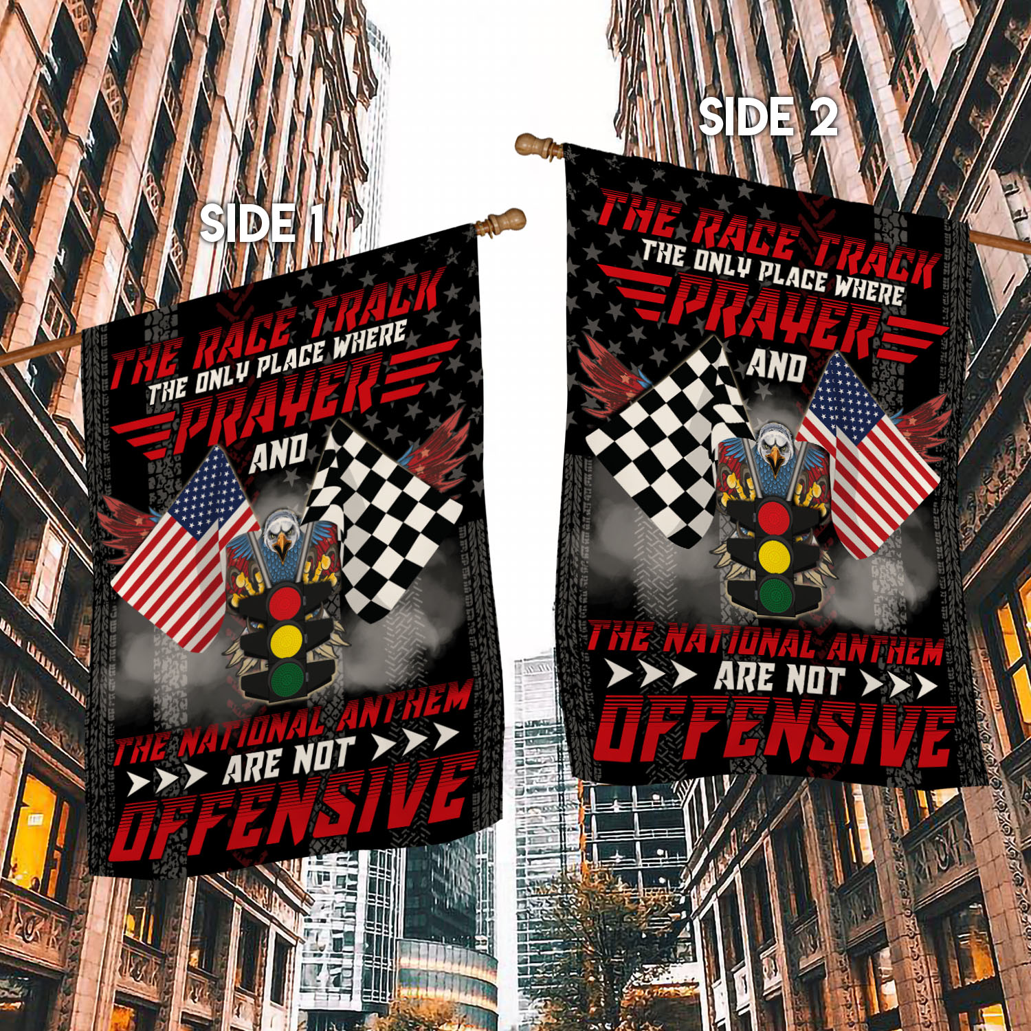 Let’s Shop The Race Track The Only Place Where Prayer And The National Anthem Are Not Offensive Outdoor House Flag – Garden Flag!