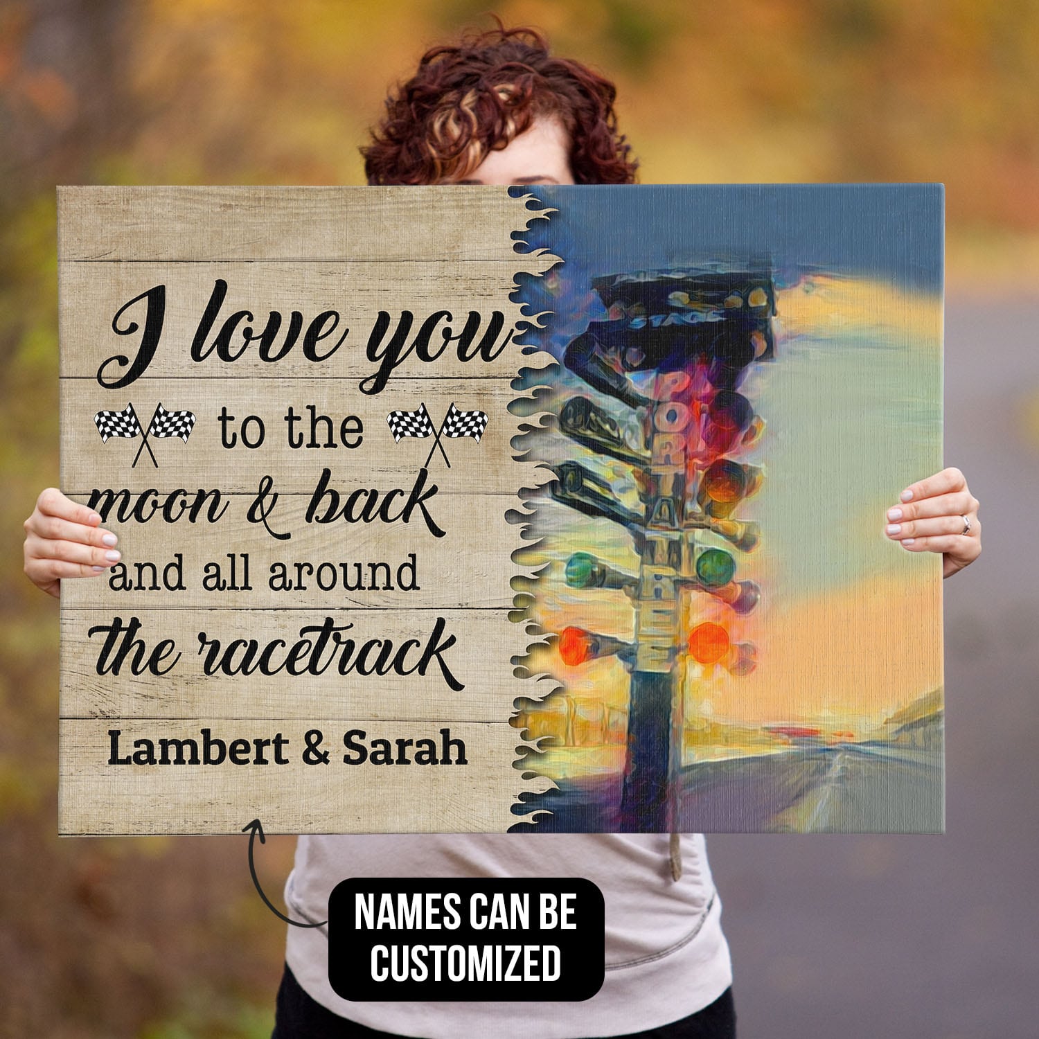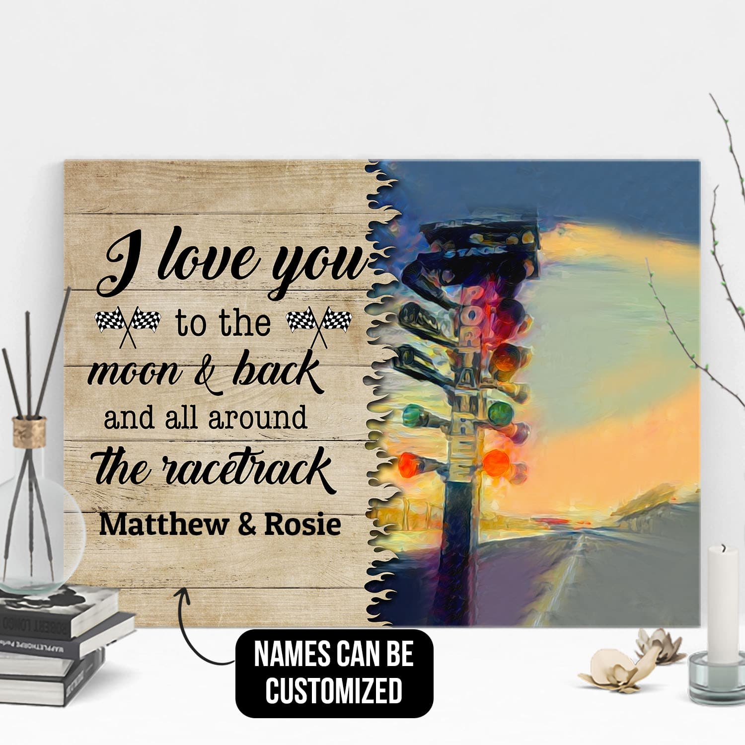 Let’s Shop Personalized Drag Racing I Love You To The Moon And Back And All Around The Racetrack Canvas Prints – Unframed Poster!