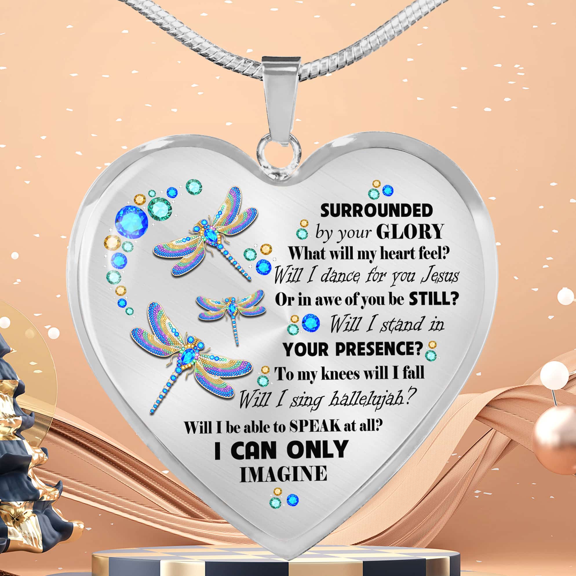 Let’s Shop Dragonfly Surrounded by Your Glory What Will My Heart Feel Will I Dance for You Jesus Luxury Heart Pendant Necklace!