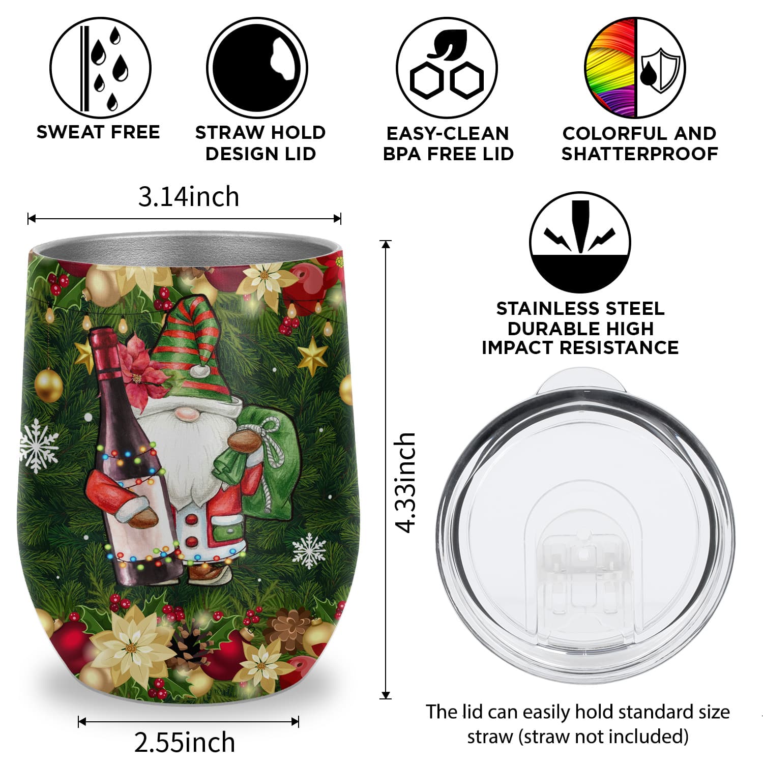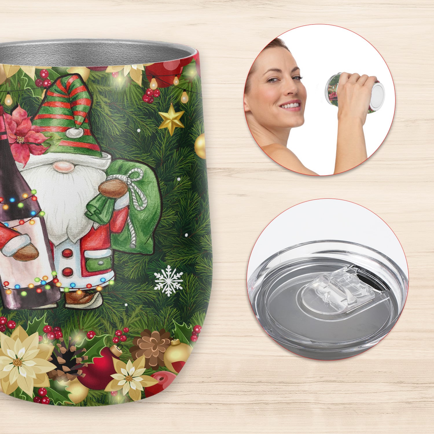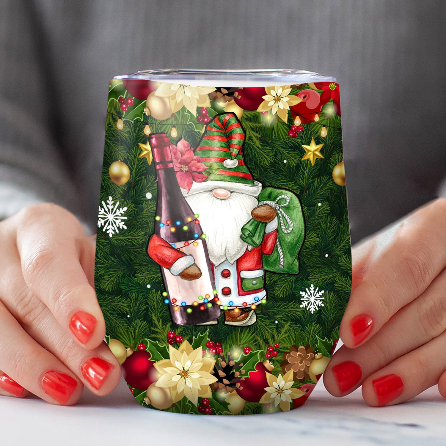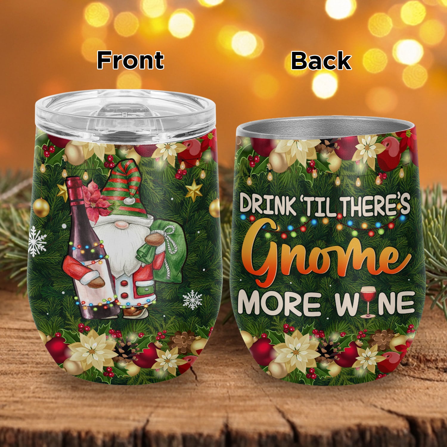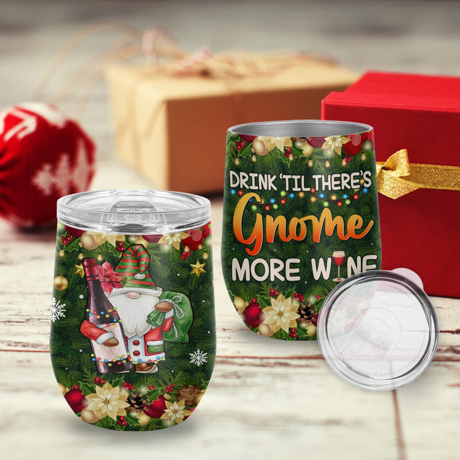 Let’s Shop Drink Til There’s Gnome More Wine Funny Gnome Christmas Vacuum Insulated Cup – Wine Tumbler with Lid!