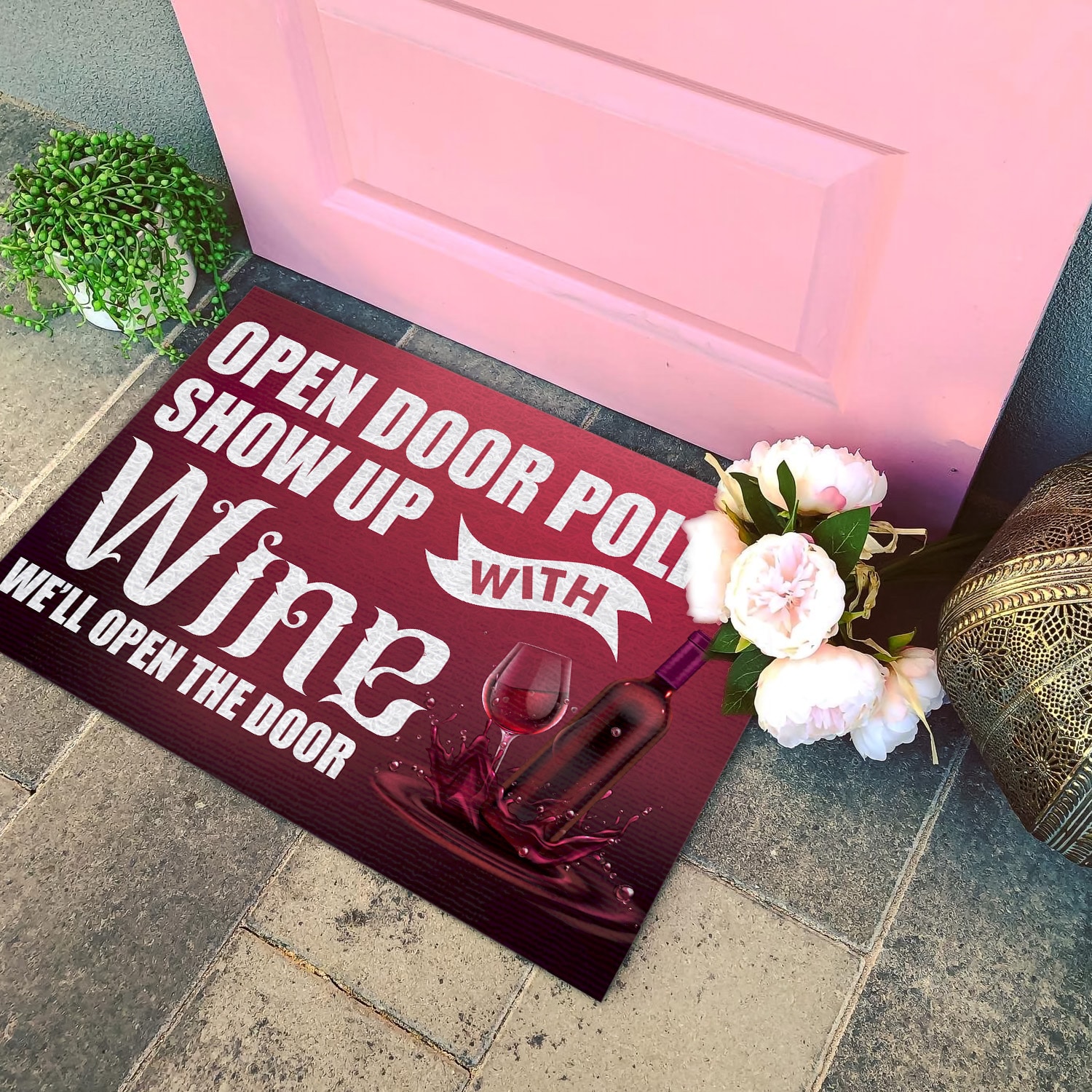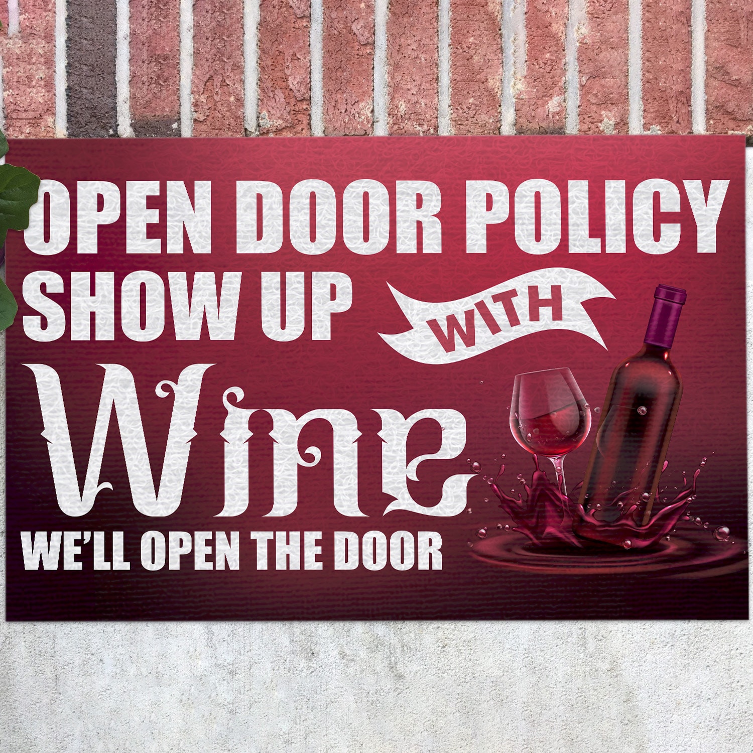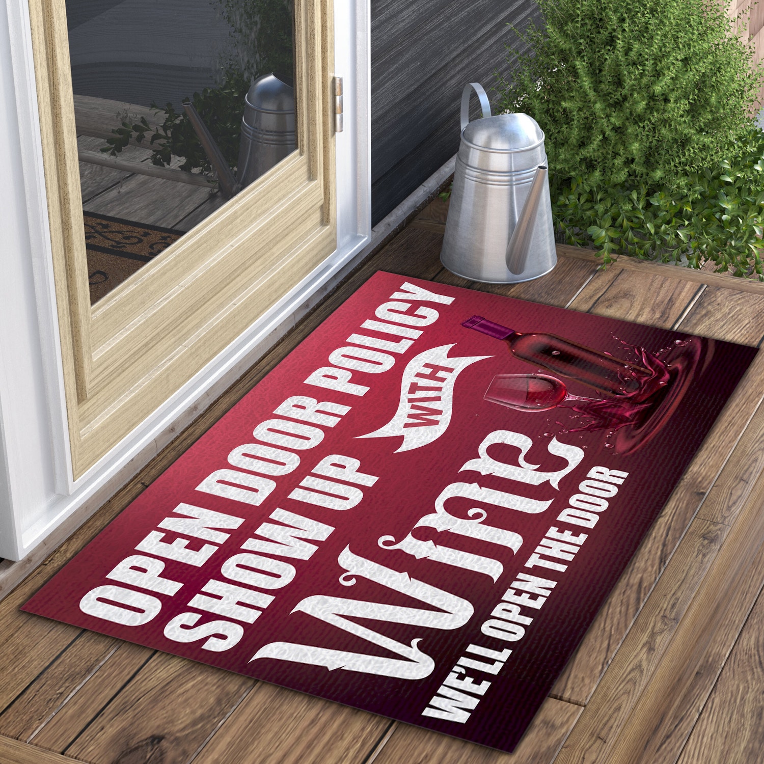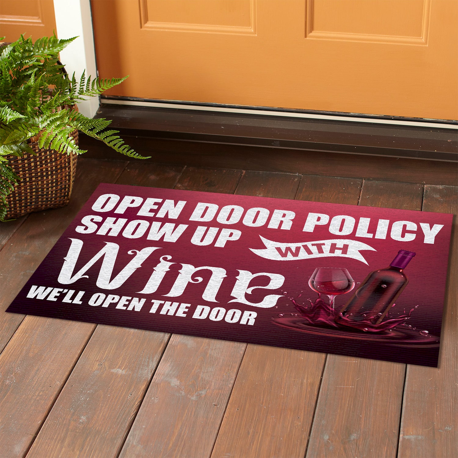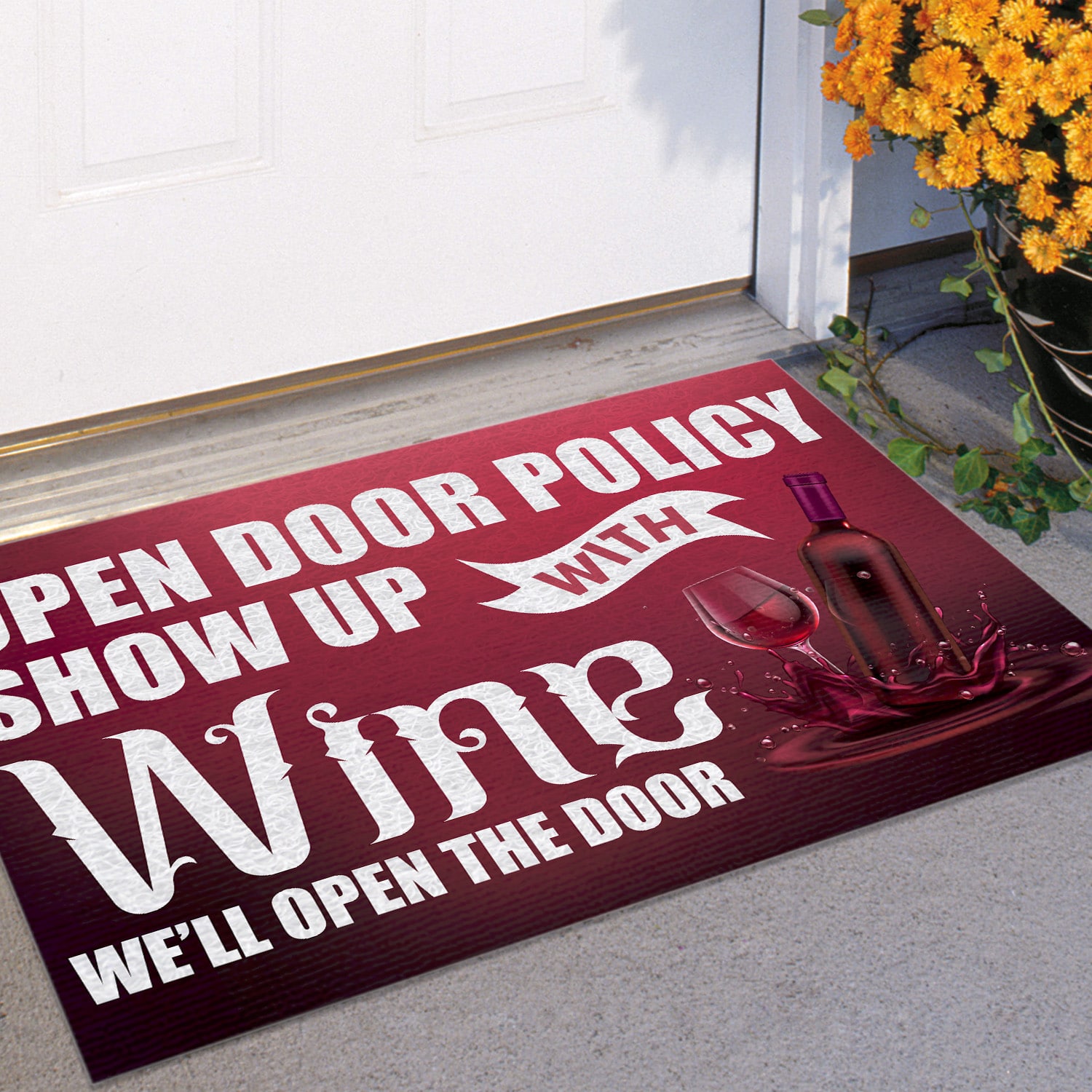 Let’s Shop Open Door Policy Show Up With Wine We’ll Open The Door Entrance Indoor Outdoor Decorative Doormat – Funny Drinking Doormat!