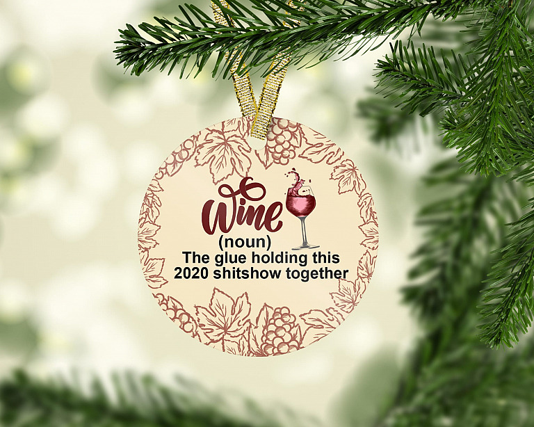 Let’s Shop Wine The Glue Holding This Shitshow Together Decorative Christmas Ornament – Flat Circle Porcelain Ornament!