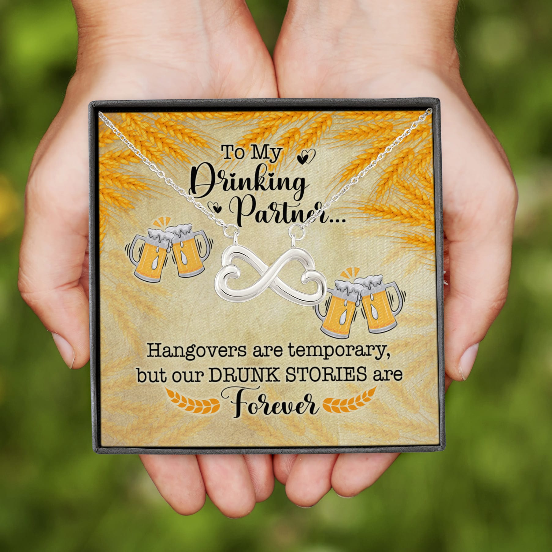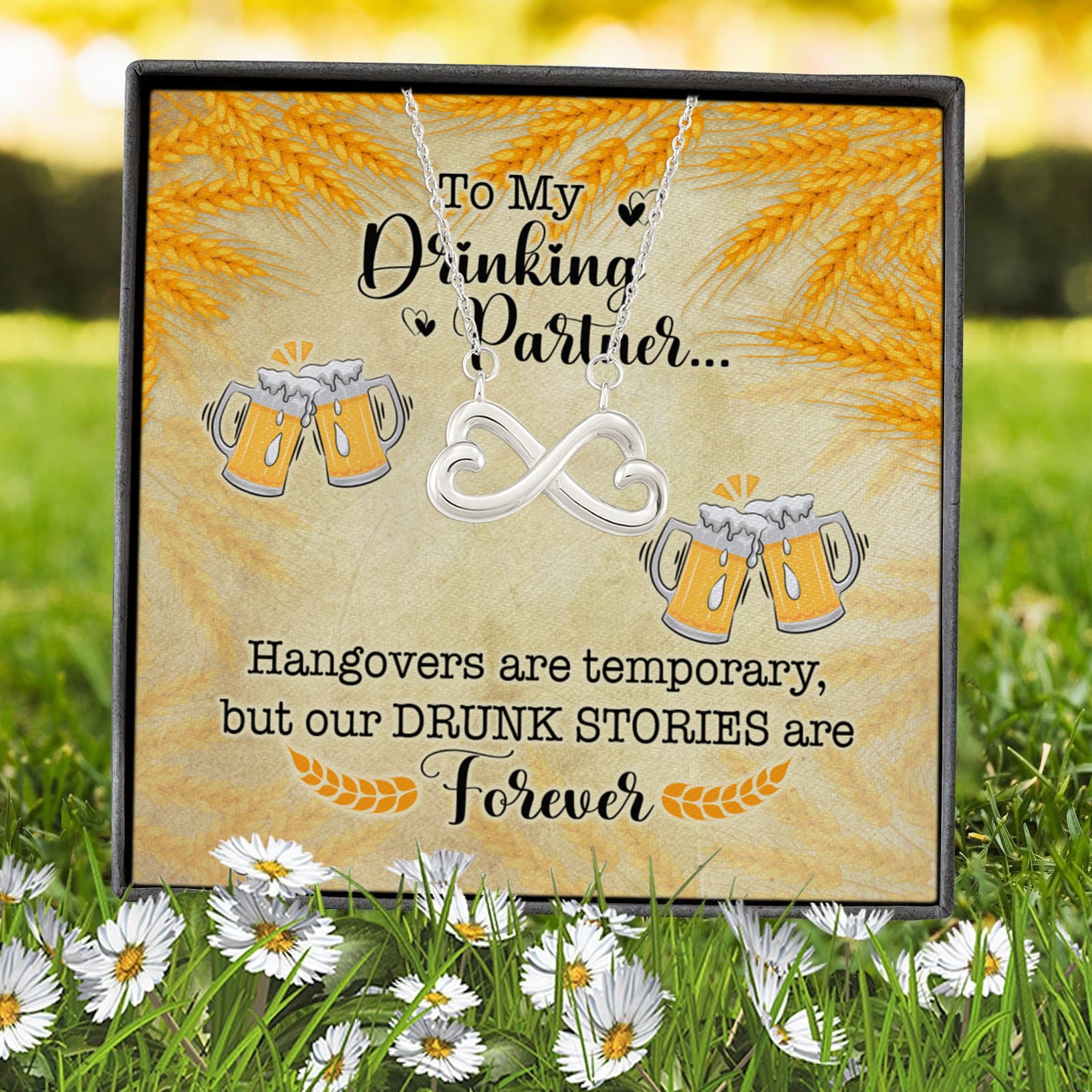 Let’s Shop To My Drinking Partner Hangovers Are Temporary But Our Drunk Stories Are Forever Infinity Heart Pendant Necklace!