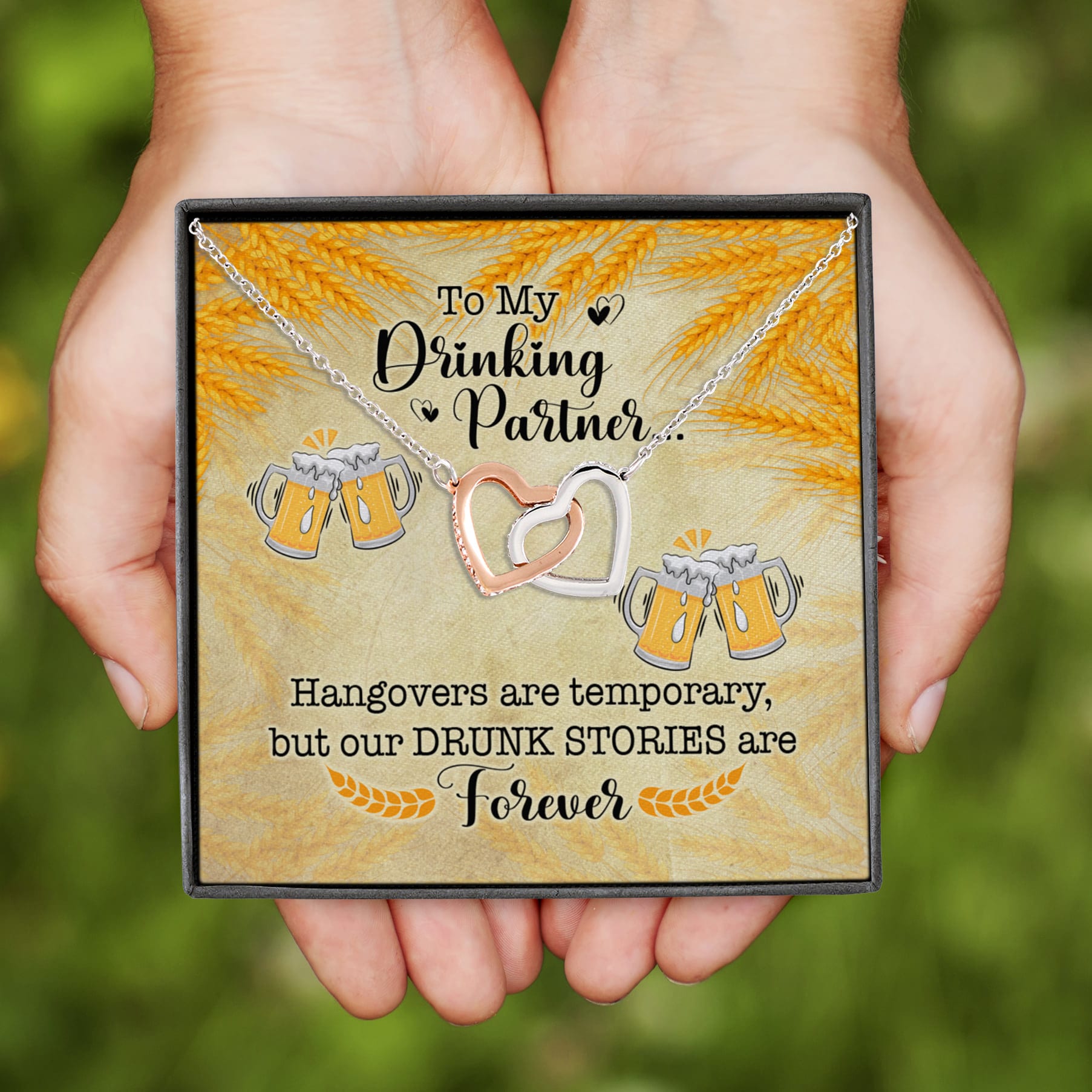 Let’s Shop To My Drinking Partner Hangovers Are Temporary But Our Drunk Stories Are Forever Interlocking Hearts Pendant Necklace!